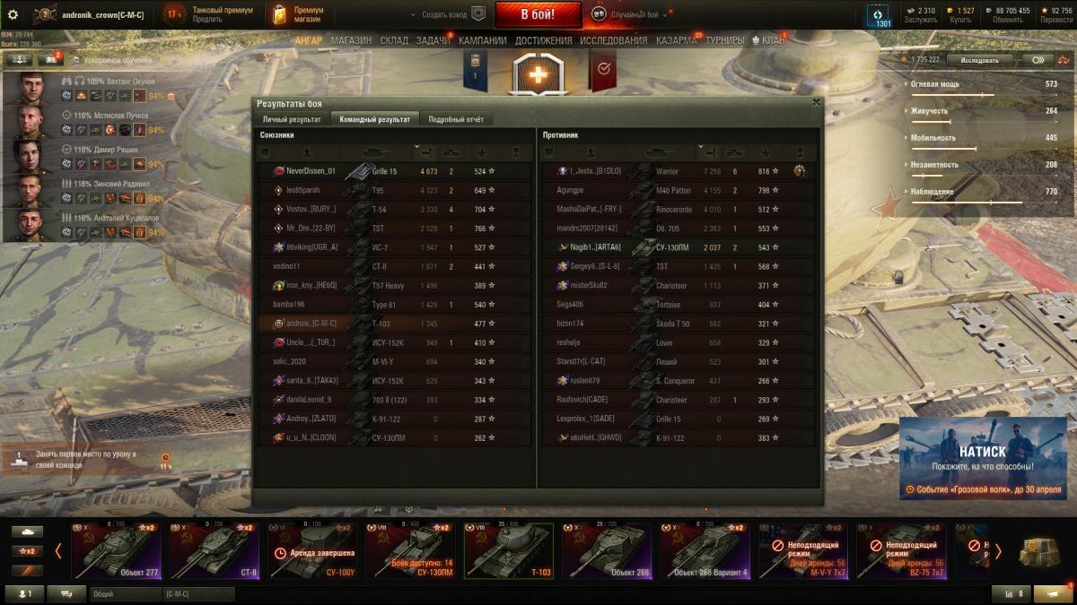 Приветствую. Не знаю, куда написать, пишу здесь. В игре наблюдал читера, который через здания танки расстреливает. Файл боя прилагаю, скриншот после боя прилагаю, для идентификации игрока (более не умею, сорян). Игрок команды противника I_Jeste из клана [B1DL0] (если правильно понял, гляньте по скрину) на танке Warrior шмалял через здания, чудил ( по результату игры видно). На таймере отсчета времени боя (файл боя прилагаю) с 8мин.40 сек до 8 мин.20 сек его Warrior расстрелял ИСУ 152К сквозь здание. Прошу принять меры к нарушителю.