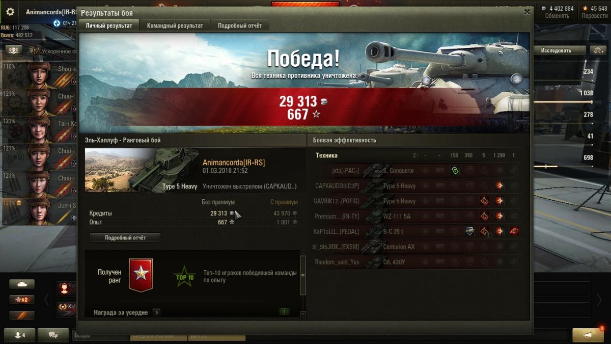 Доброго времени суток Как многие уже догадались из названия, темой данного обсуждения является игровой режим "Ранговые бои" (далее РБ)Да-да! Смайлик с баяном я поставил именно потому, что тема уже заезженная, но актуальная, так как сезон РБ всё еще продолжается Делитесь своими впечатлениями и достижениями в комментариях к данной записи! Рейтинги перового сезона ранговых боёв смотреть тут Понравилось: Защита ранга - новый функционал, который позволяет не потерять свой ранг, в случае если у Вас не осталось шевронов на ранге. Защита начинает действовать с 5-го ранга и имеет прочность в 3 шеврона, на 10 ранге прочность составляет 2 шеврона и на 13 всего 1 шеврон. Прочность ранга полностью восстановится в случае получение шеврона; Распределение шевронов - измененная система распределения шевронов мотивирует играть эффективнее; Ранговые награды - за каждый новый ранг полагается награда, количество бонусов (в виде серебра, бустеров и т.д) в которой возрастает вместе с вашим рангом Сезонная награда - лидеров сезона ожидает награда, и помимо золото, премиум аккаунта и прочего, Вас ожидают уникальные стили и нашивки Не понравилось: Начисление опыта - до конца не ясно, каким образом начисляется опыт по итогам боя, так как не редко бывают ситуации, в которых менее активный\полезный игрок оказывается в топе по опыту. К примеру, ознакомившись с данным материалом мне не ясно, почему на ИС-7 с нулём нанесенного урона и 632 единицами урона нанесенного с его помощью имеет больше опыта, чем союзный Type 5 Heavy, который нанес 1920 урона, 490 заблокировал и 386 единиц нанесли с его помощью (см. скриншоты под спойлером). Хочу отметить, что в этом сезоне АРТ и ПТ-САУ (в основном это касается кустовых ПТ, таких как Strv 103B) получают меньшее количество опыта, чем другие типы техники, из-за чего встречаются они в боях значительно реже другой техники; Преимум снаряды - в ранговых боях подавляющее большинство игроков используют только "голдовые" снаряды, из-за чего использование бронированной техники в данном режиме нерационально; Погоня за "фрагами" - к сожалению, за уничтожение вражеской техники дают значительно больше опыта, чем за нанесенный урон, что оказывает негативное влияние на поведение игроков. Топ один проигравшей команды - проведя немалое количество боёв в данном режиме я увидел "обратную сторону" данного поощрения игрока в топе. Суть - большая часть играющих увидев, что один из флангов проигран и противники имеют перевес по количеству техники тут же меняют свое поведение. Во первых - выталкивают, подставляют и "пакастят" союзникам любыми доступными способами. Зачем? Всё просто. Убери конкурентов, и вероятность того, что ты попадешь в топ и получишь шеврон при поражении повышается. Второй момент - перестают помогать команде - оставляют фланг на котором еще есть союзники, таким образом они остаются в меньшинстве и проигрывают и этот фланг, чтобы занять куст и настрелять, при этом фланг можно было спокойно выиграть и вернуться для защиты базы. Таким образом, многие игроки не пытаются сыграть на команду и победить, они мотивированы попасть в топ один любыми доступными способами (включая те, которые нарушают правила игры). В целом обновленный режим "Ранговые бои" мне очень даже понравился, за что хочу поблагодарить наших разработчиков и еще хочу посоветовать, да что там, поже