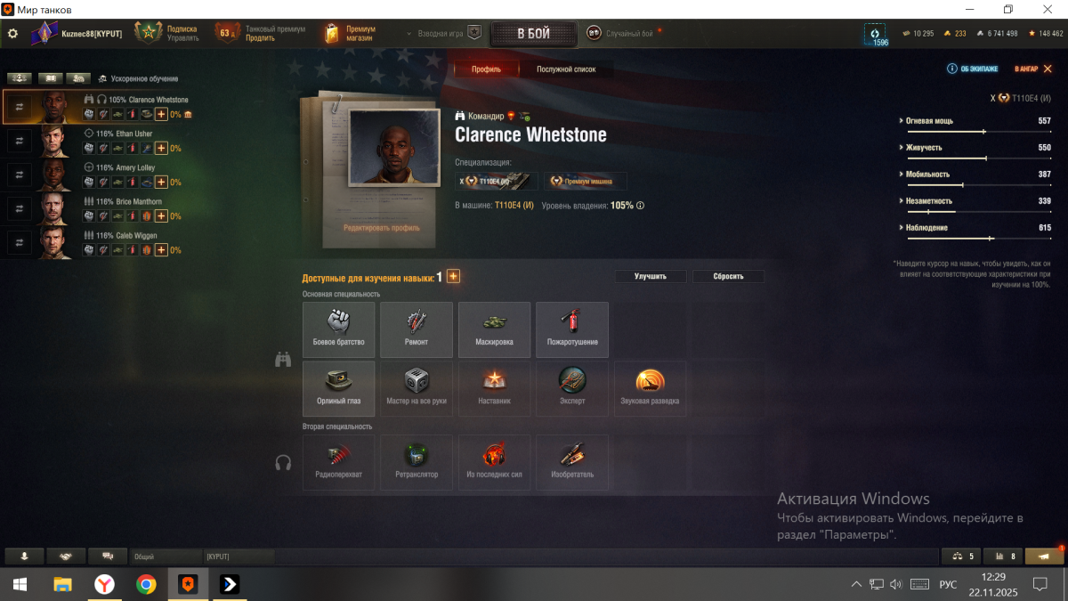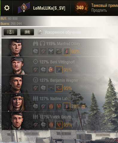 Добрый день. Какой максимальный уровень прокачки основного умения возможно получить? Я всегда считал, что это 112% для командира и, соответственно, 123% для остальных членов экипажа (перк "боевое братство" + улучшенная вентиляция + продувка воздуховодов). Но мне попался видос, где у человека командир прокачан до 115%, а экипаж до 127%. При этом ни вентиляция, ни инструкции не используются. Как такого добиться? upd. по просьбе добавил ссылку - DELETED upd 2. Ответ найден, ссылку удаляю.