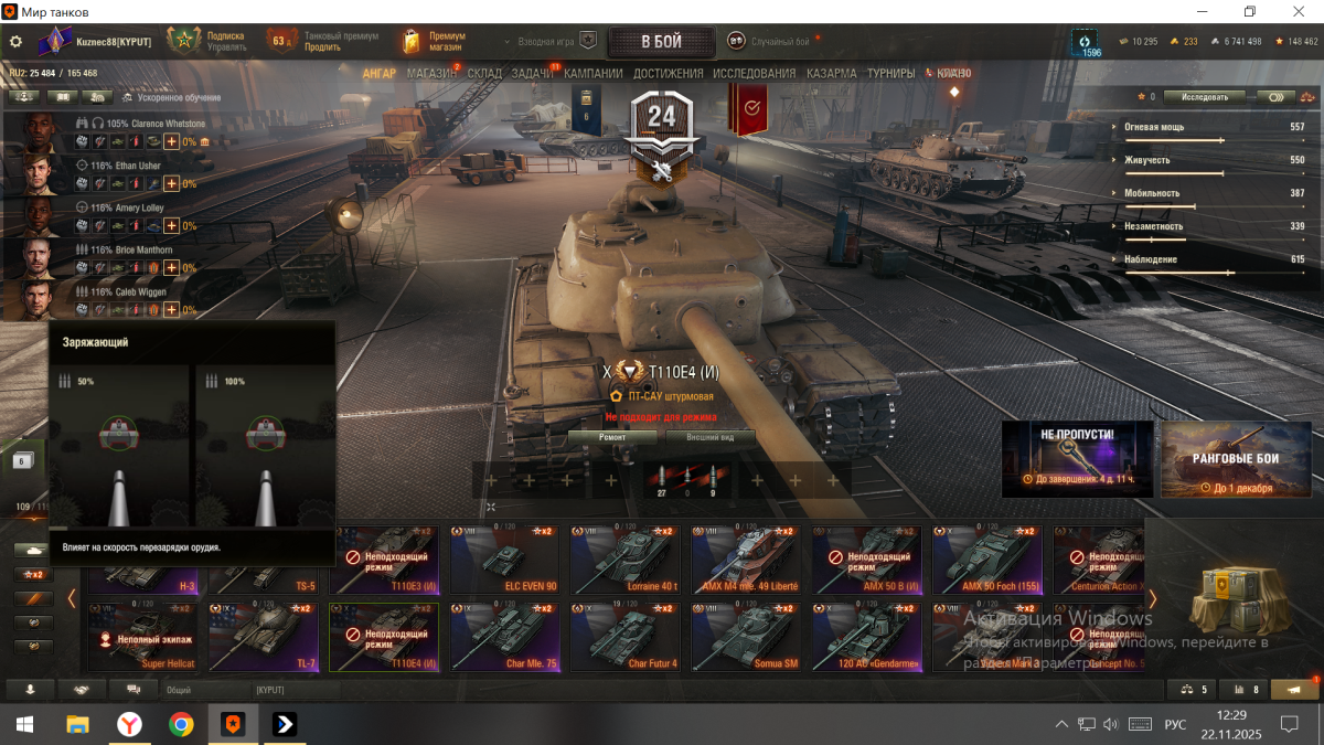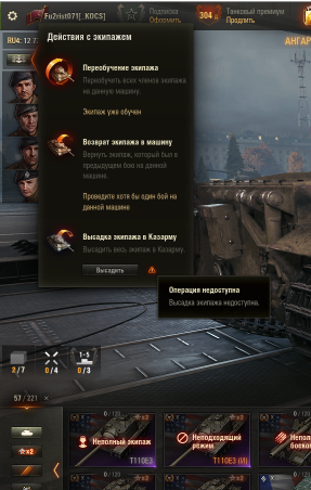 Скидывал ветку Т110Е4 ПТ американскую для Орбиты . Сунулся экипажа нет в казарме а появился Стоковый от ПТ Т110Е4 (И) Режимный. А Мой прокаченный оказался в режимном Танке. И не высадить. Как решить проблему ????