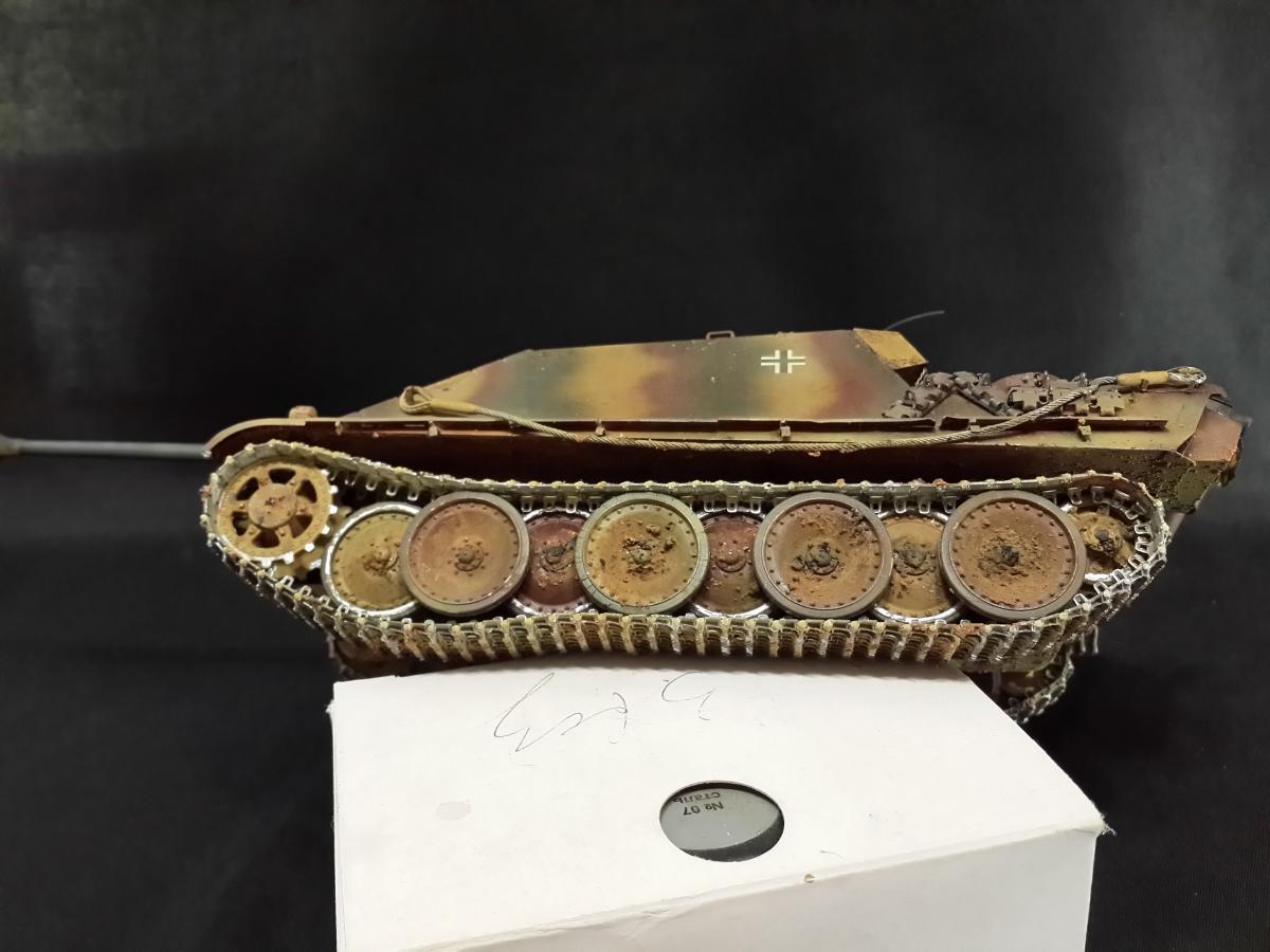Добрый день хочу представить свою модель ягдпантеры. С историей буду краток: весна 1945 г., на матчасть модель не претендует, к прототипу привязки тоже нет. Не всем нравится крыша танков в грунтовке(немецкой красно-коричневой) данную идею подобрал из работы какого-то зарубежного моделизма) вряд ли такое могло быть в реальности Использовалось в работе: 1) Ягдпантера от фирмы Tamiya в масштабе 1/35 2) Набор JUMBO от Voyagermodel ( фототравление, ствол, тросы) 3) Металлические траки от MasterClub 4) Бочки из дерева(якобы с спиртным, не ради пропаганды алкоголя) 5) Первая законченная фигурка(корявая) Фотографии процесса сборки и покраски могу предоставить. А теперь прошу к просмотру к кирпичам готов))) http://cdn-frm-eu.wargaming.net/wot/ru/uploads/monthly_11_2014/post-1041110-0-10524700-1416224503_thumb.jpghttp://cdn-frm-eu.wargaming.net/wot/ru/uploads/monthly_11_2014/post-1041110-0-30988700-1416224539_thumb.jpghttp://cdn-frm-eu.wargaming.net/wot/ru/uploads/monthly_11_2014/post-1041110-0-06641800-1416224533_thumb.jpghttp://cdn-frm-eu.wargaming.net/wot/ru/uploads/monthly_11_2014/post-1041110-0-29189400-1416224546_thumb.jpghttp://cdn-frm-eu.wargaming.net/wot/ru/uploads/monthly_11_2014/post-1041110-0-28017200-1416224552_thumb.jpghttp://cdn-frm-eu.wargaming.net/wot/ru/uploads/monthly_11_2014/post-1041110-0-15422200-1416224558_thumb.jpghttp://cdn-frm-eu.wargaming.net/wot/ru/uploads/monthly_11_2014/post-1041110-0-24322100-1416224563_thumb.jpghttp://cdn-frm-eu.wargaming.net/wot/ru/uploads/monthly_11_2014/post-1041110-0-30299300-1416224526_thumb.jpghttp://cdn-frm-eu.wargaming.net/wot/ru/uploads/monthly_11_2014/post-1041110-0-48853300-1416224568_thumb.jpghttp://cdn-frm-eu.wargaming.net/wot/ru/uploads/monthly_11_2014/post-1041110-0-25892500-1416224574_thumb.jpg