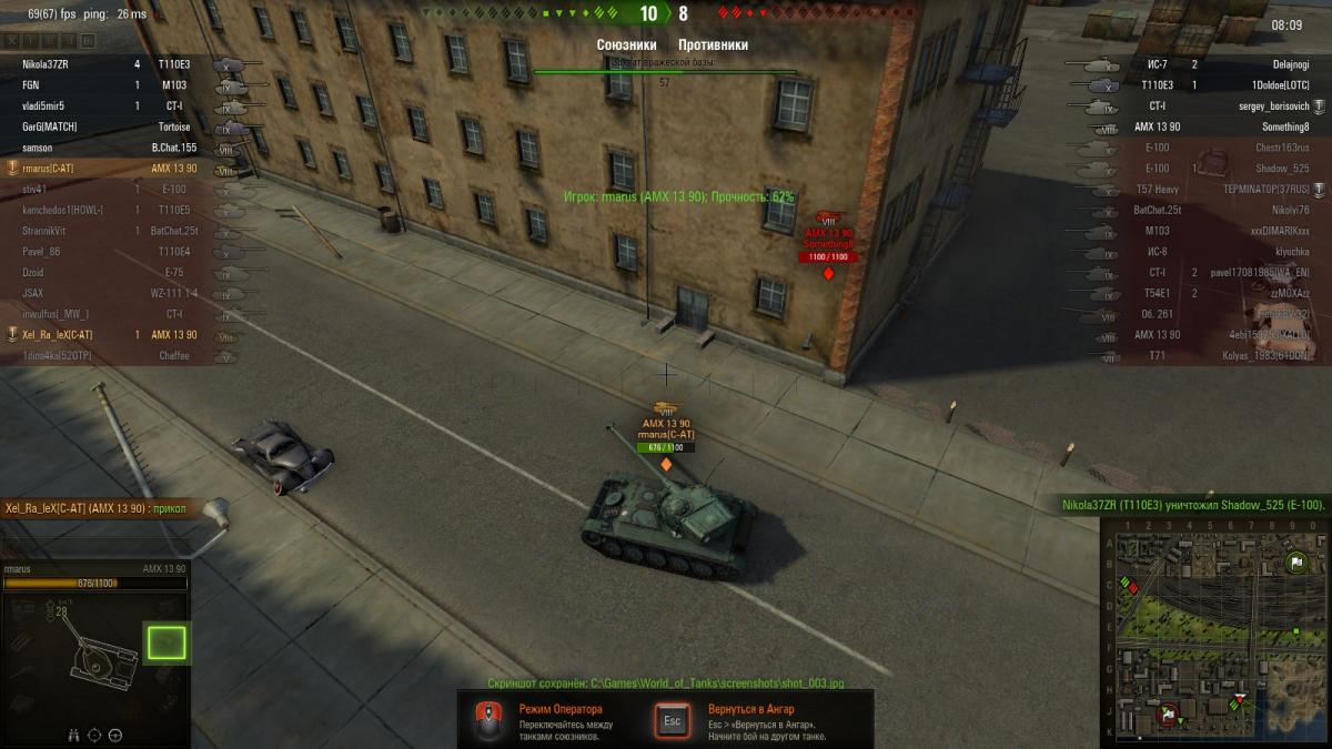 Со взводный катался на АМХ 13 90, любовался городом и решил помощь СТ-1, на 6 минуте боя подъезжая к точке J7. Стоящий дом около которого оказался взводный стал хорошим маскировочным гаражом для вражеского АМХ 13 90, от куда не мог выехать по- скольку оказался внутри дома. http://wotreplays.ru/site/933177