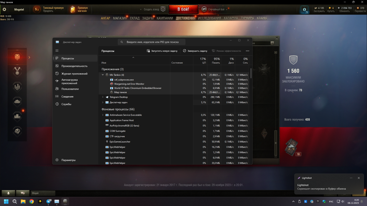 Добрый день! Прошу помочь разобраться с проблемой, с 15.07.2025 перестала запускаться игра, на секунду появляется черный экран и закрывается приложение. Файлы игры восстанавливал, полностью удалял и танки, и леста центр, проверил все драйвера, ничего не помогает. Конфигурация пк: ЦП - AMD ryzen 5 7600 ОЗУ - T-Force vulcan ddr-5 32 gb ГП - RTX-2060 на 12 gb ОС - Windows 11 24Н2