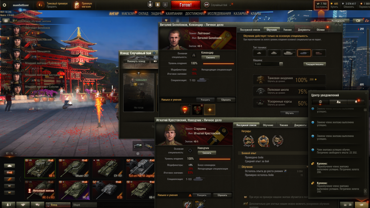 ДОбрй день! Решил пересадить командира с вкаченными перками на Т-103 (ПТ). Выбрал командира нажал Обучение - выбрал класс техники ПТ и Т-103. С меня списали 200 голды при этом командир 75% То же самое с наводчиком. Те же манипуляции обучение до 100% умений за голду но по факту как будто я нажал 50% а не 100%. Cкрины клиента прилагаю Либо верните 400 голды либо обучите блин экипаж!