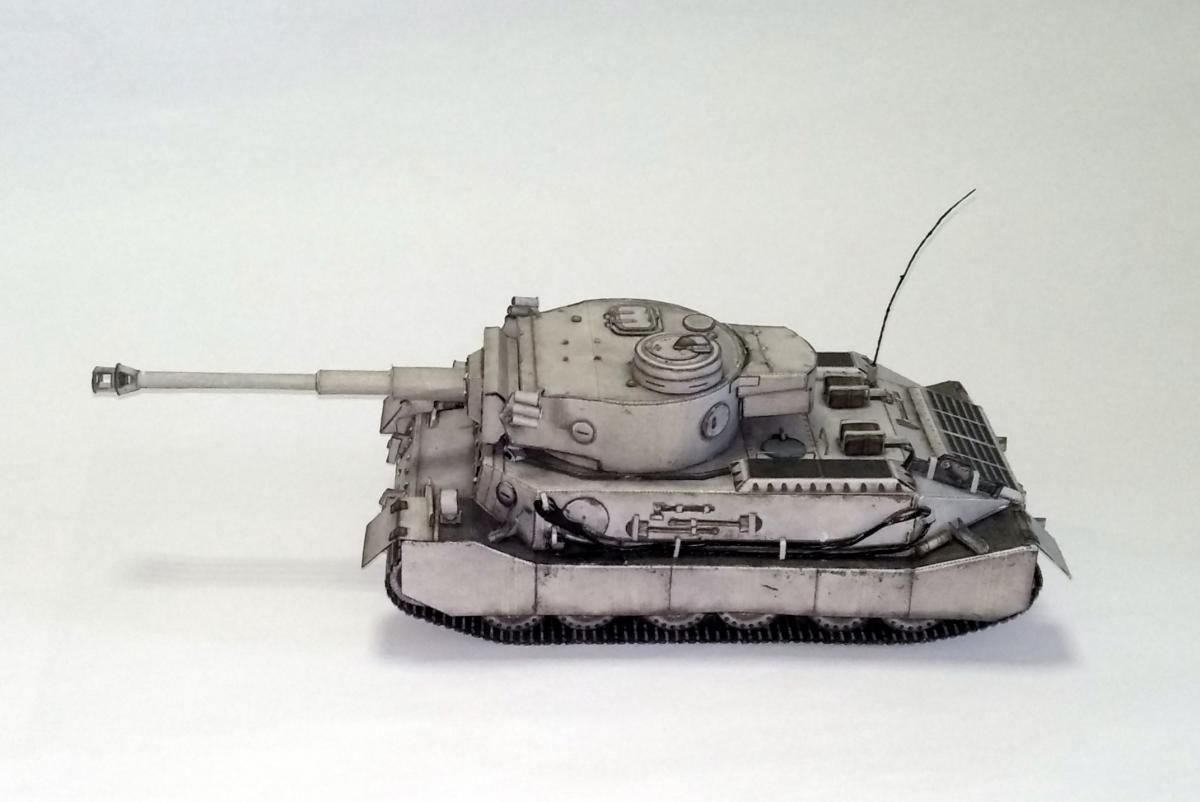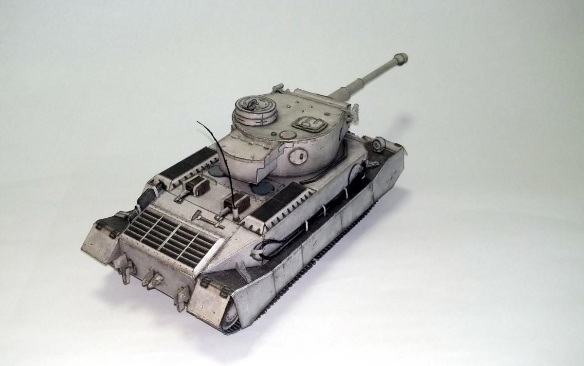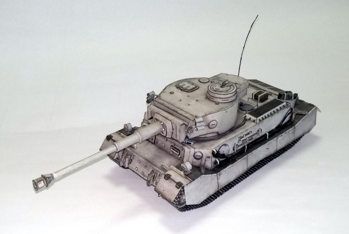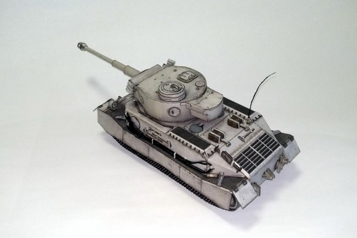 PzKpfw VI Tiger (P) Der weiße tiger. Брошюра WOPT №999 на ежемесячный конкурсМасштаб переведен 1:35. По сравнению с базовой комплектацией к модели применены следующие доработки:Добавлены: Сцепное устройство, проушины, серьги, тросы и крепления к ним, триплексы на корпус, ребра жесткости на надгусеничные полки, антенна радиостанции, ручки на люки и поручни, дымовые мортирки на башню и крепления к ним, петли и завесы на люки и надгусеничные полки, защита погона башни.Слегка доработана пушка. (кольца разных диаметров в торцах) Фонари изготовлены объемными. Добавлены некоторые элементы в домкрат. На гусеницы добавлены гребни зацепления. Повышена общая детализация. Многим элементам в стоке нарисованным, придан объем. В том числе рыму и заклепкам (там где мне это показалось целесообразным.) Обработка фотографий минимальная (автоктон, автоконтраст и.т.д.) По косякам: Разные оттенки корпуса и башни- это следствие использования разной бумаги и отчасти косяки принтера. (другой бумаги и доступа к другому цветному принтеру не было, а творческий зуд был) То же самое про лючки в моторное отделение – экспериментировал с окраской. Решил оставить как есть. (хотя исправить лючки 5 сек) Если все таки начну практиковать окраску моделей, будет на чем практиковаться. Буду благодарен за конструктивную критику и советы по дальнейшей доработке модели..