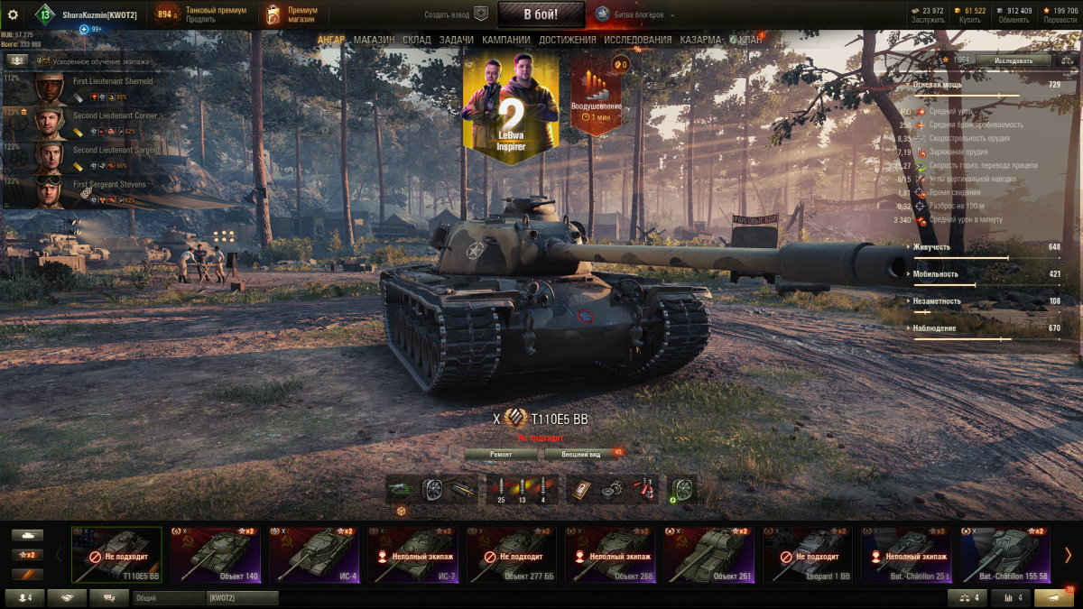 После выхода микро обновления 03/02/2021 T110E5 BB регулярно становится "не подходящим" для битвы блогеров При игре во взводе помогает заново собрать взвод для бб При одиночной игре только перезагрузить клиент зы T110E5 BB естественно