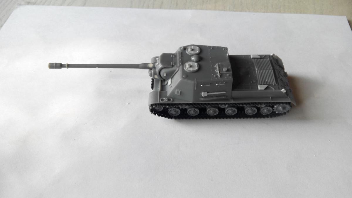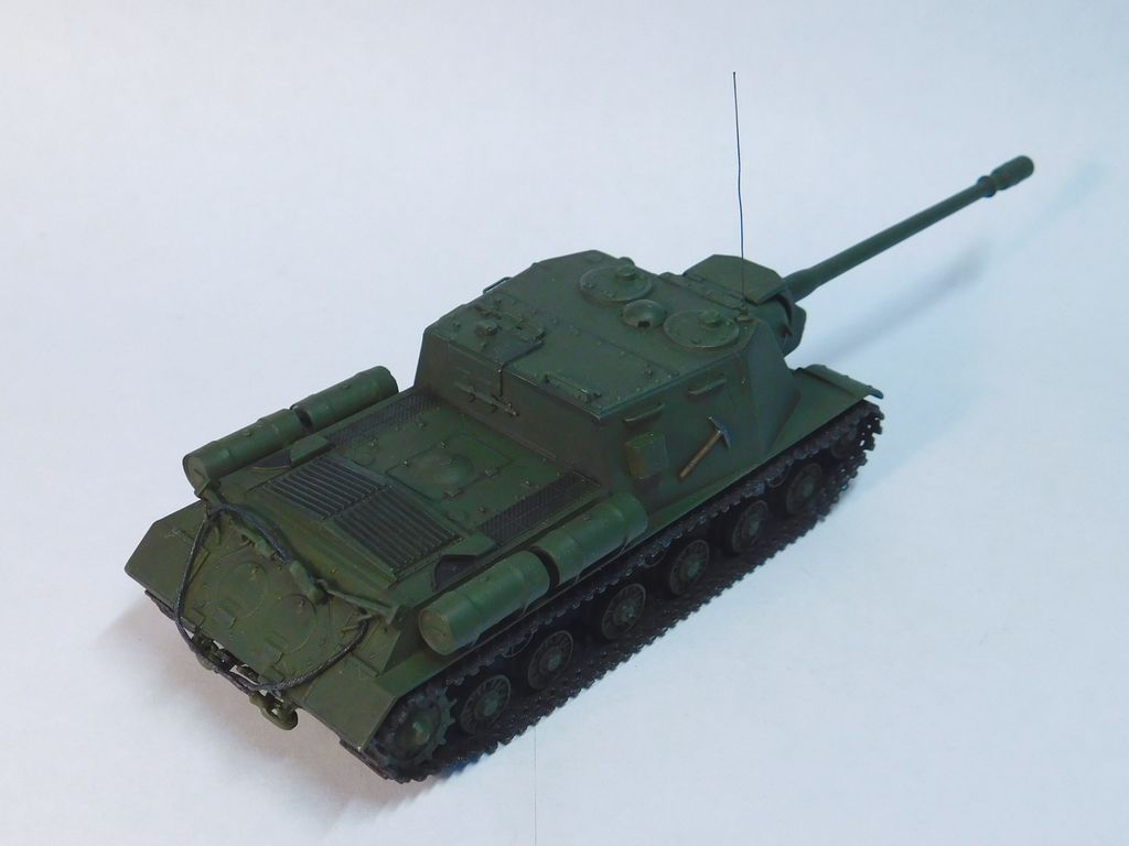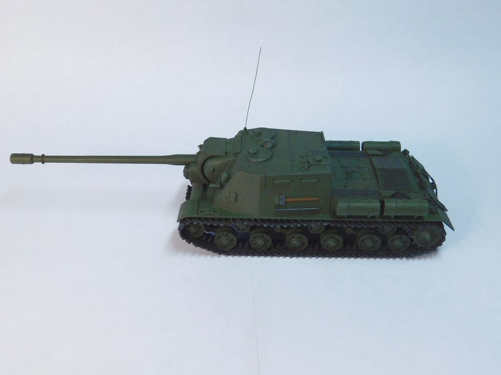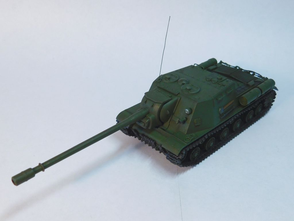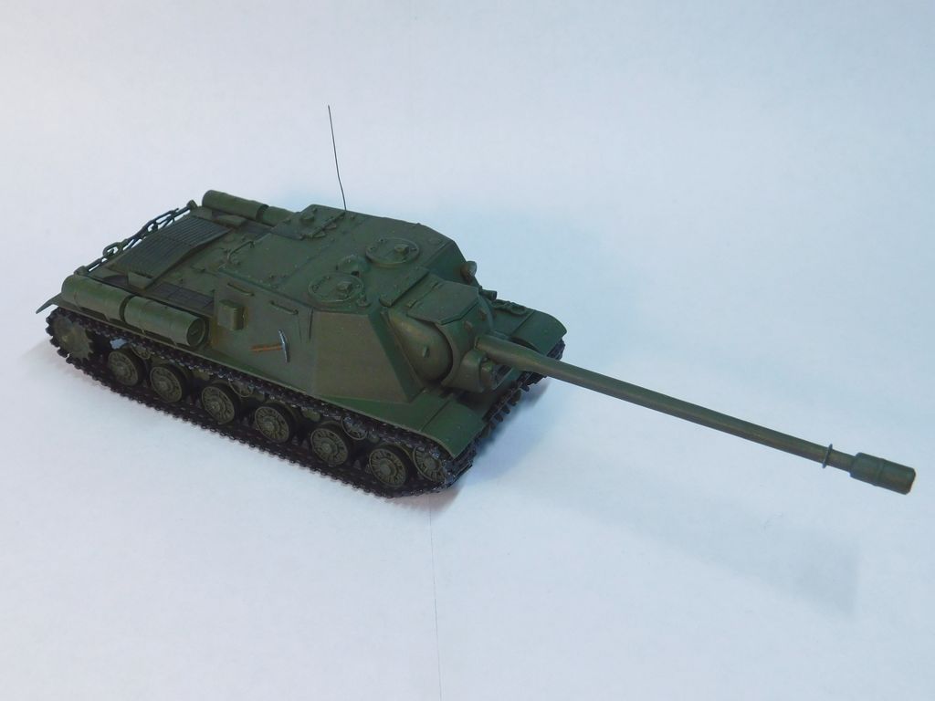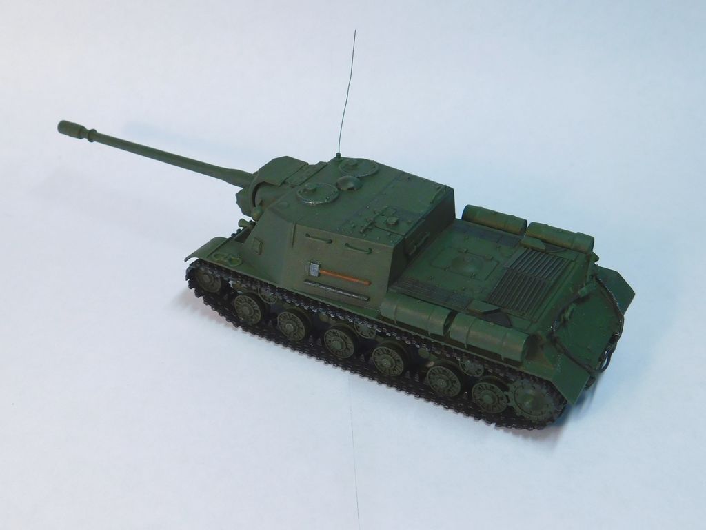 ИСУ-152-1 - опытная советская тяжёлая самоходно-артиллерийская установка (САУ) периода Великой Отечественной войны на базе танка ИС. Хочу представить на суд свою первую модель. Начата она была этой зимой, но потом из-за нехватки времени была отложена в долгий ящик. Недавно она вновь попалась мне на глаза и я решил попытаться её доделать, ну вот что из этого получилось. Окраска кистью, краска акрил-звезда (не мастер-акрил). P/S/ Качество отливок некоторых деталей оставляет желать лучшего, что-то выпилить оттуда не удалось и вовсе. Т.к. ПСТшные наборы достались практически даром, решил с них начать учиться . Хорошего фотика сейчас нет под рукой, как появиться возможность постараюсь сделать фото получше. Готов к любой критике и советам UPD. Переделал фото.