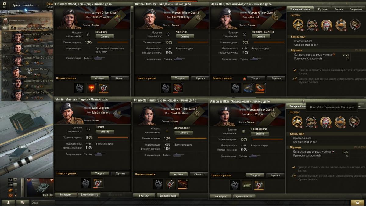 Я получил девушку-танкисту с уровнем обладения боевого братства 100%, и вставил ее в танк Шерман Фаервлай как заряжающий. Потом, остальные танкисты получили 100% друих умений (например снайперское). После того, я изменил их навыки от тех же умений (например от снайперского) на боевое братство. В конечном итоге, получилось, что у всех бойцов комманды было умение "боевое братство" 100%. Разумеется, на тот раз, умение боевое братство должно поступать в силу и повышать навыки и общие уровни всех бойцев комманды. Но не получается. Не знаю почему. Я прикрепляю тут скриншот. http://cdn-frm-eu.wargaming.net/wot/ru/uploads/monthly_01_2017/post-40205065-0-00064900-1484298231_thumb.png Видите, у коммандира - уровень 105%, поскольку у танка есть вентиляции. Но все таки умение боевое братство у него не действует. Должен быть у него уровень выше 110%, а не 105%. И знаки кулаков должны быть яркого цвета, а не столь тенистые.