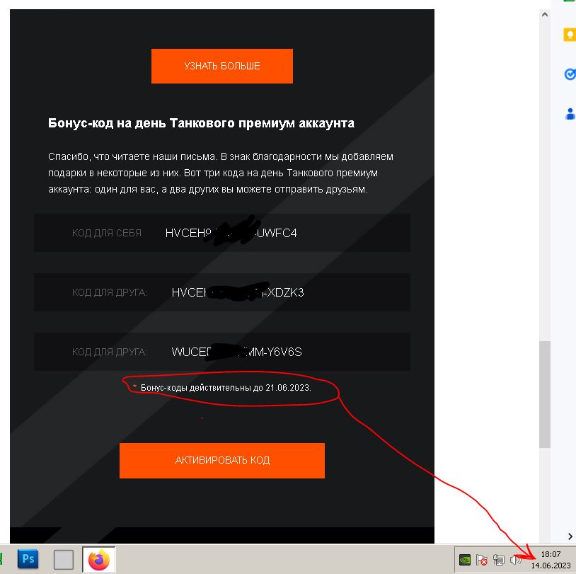 Добрый день. Вчера пришла рассылка от лесты, в ней 3 бонус-кода - один для себя и два для друзей. Указано, что коды действительны до 20 марта. Отправил код другу, при активации пишет, что код недействителен (не использован, а именно "недействительный" ). Для теста я свой "код для друга" попробовал активировать сам и получил тоже самое - код недействителен. В прошлый раз (при прошлой рассылке) я проделывал тоже самое, но результат был иным - в тот раз код признавался валидным, а в ошибке писалось, мол, окстись парень, это же не для тебя код, а для друга. Кто виноват и что делать? п.с. не знаю, в какой раздел поместить данную тему