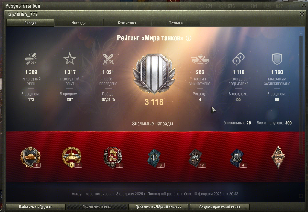 https://forum-mt-prod.lesta.ru/monthly_02_2025/post-8214467-0-44544700-1739210134_thumb.pngНе знаю, в какую тему отправить жалобу, перенесите, если что. Смотрите сами на скриншоте: возможно ли реальному человеку на недельном аккаунте набить 1000 боёв? По 140 боёв в день
