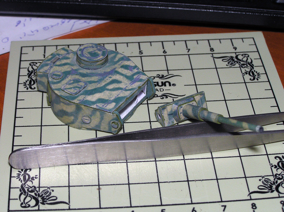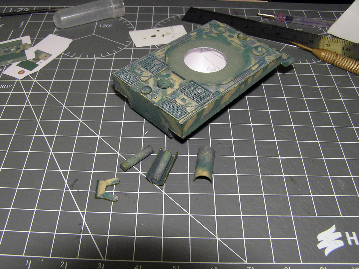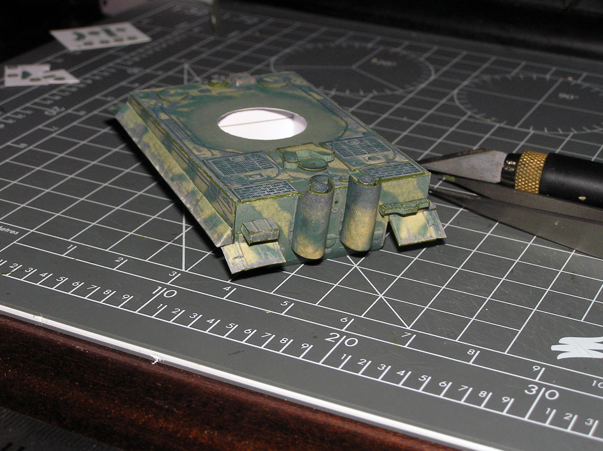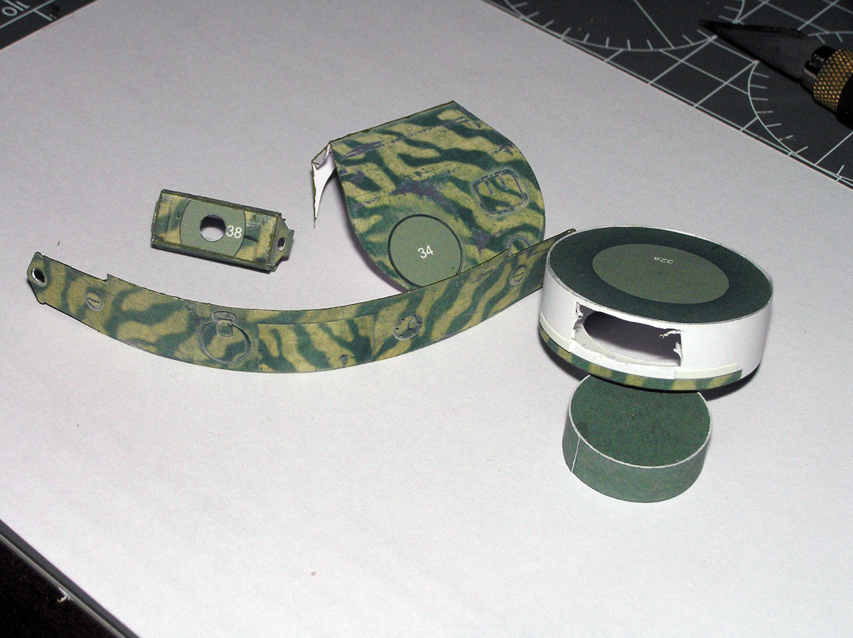 http://cdn-frm-eu.wargaming.net/wot/ru/uploads/monthly_07_2015/post-4861458-0-16391300-1437739120.jpg Всем привет! Очередная статья от наших тестеров. Собираем вместе модель «Бронекоробочка № 9. Pz.Kpfw.VI Tiger Ausf.H1 японский вариант» (автор Targo_Kain, стиль изложения сохранен). Рекомендуем перед началом сборки ознакомиться с статьей о инструментах и материалах для бумажного моделизма. Многие советы и приемы схожи с руководствами по сборке танка Т-54, ИС-2 и ПТ-САУ: Charioteer, но есть и некоторые интересные и полезные новые нюансы: 1 http://cdn-frm-eu.wargaming.net/wot/ru/uploads/monthly_07_2015/post-4861458-0-84325200-1437737225_thumb.jpg Ну что же, как обычно распечатать, вытащить инструменты и настроится получать удовольствие от сборки! Кстати о печати… эту модель печатал у фотопечатника на матовой фотобумаге 180 г/м. лист с тонкими деталями был напечатан на матовой фотобумаге 100 г/м – такую плотность посоветовал фотопечатник – мол если 80 г/м – уходит цвет из-за того что чернила «пробивают» бумагу насквозь. Вобщем-то он прав – берите на вооружение. 2 http://cdn-frm-eu.wargaming.net/wot/ru/uploads/monthly_07_2015/post-4861458-0-78257400-1437737226_thumb.jpg Ванна корпуса. Хотя в этой модели поперечных шпангоутов вполне достаточно, я всё равно вклеил дополнительный в МТО а также под ВЛД и НЛД. Про клей, который я применял в этот раз, распространяться здесь не буду, можно будет прочесть в конце статьи. 3 http://cdn-frm-eu.wargaming.net/wot/ru/uploads/monthly_07_2015/post-4861458-0-54379500-1437737227_thumb.jpg В этот раз сборку верхней части корпуса и соединение его с нижней я решил делать с кормы, а не с носа (как в Чэрриотир или ХэллКэт). Показан кормовой лист склееный с бортами. 4 http://cdn-frm-eu.wargaming.net/wot/ru/uploads/monthly_07_2015/post-4861458-0-13779800-1437737228_thumb.jpg Кормовой лист приклеен, примерка, как садятся лобовые листы. 5 http://cdn-frm-eu.wargaming.net/wot/ru/uploads/monthly_07_2015/post-4861458-0-07992900-1437737229_thumb.jpg Лобовые листы уже приклеены к ванне корпуса. 6 http://cdn-frm-eu.wargaming.net/wot/ru/uploads/monthly_07_2015/post-4861458-0-15660000-1437737230_thumb.jpg Детализация корпуса: выхлопные патрубки и их кожухи, воздушный канал – деталька похожая на рога. Уже наклеены люки мехвода и радиста, а также люки на МТО. 7 http://cdn-frm-eu.wargaming.net/wot/ru/uploads/monthly_07_2015/post-4861458-0-14259300-1437737232_thumb.jpg Детализация корпуса: снова выхлопные с кожухами, домкрат (детали серии 52), коробочка (19), оклейка воздушного канала текстурной полосой. 8 http://cdn-frm-eu.wargaming.net/wot/ru/uploads/monthly_07_2015/post-4861458-0-90565000-1437737232_thumb.jpg Мелкие детали: детализация корпуса: дополнительно к предыдущему – коробочка (8) и детали воздушных фильтров (49 - 51). 9 http://cdn-frm-eu.wargaming.net/wot/ru/uploads/monthly_07_2015/post-4861458-0-95249000-1437737233_thumb.jpg Детализация корпуса: Воздушные фильтры собраны. Также видно домкрат. В итоге эти воздушные фильтры я пока к своему Тигру не приклеил – ибо не нашлось под рукой проволочного припоя нужной толщины, что бы сделать воздуховоды от фильтров до "рогатой" детали 12. Так что пока вариант средней сложности. 10 http://cdn-frm-eu.wargaming.net/wot/ru/uploads/monthly_07_2015/post-4861458-0-29603800-1437737235_thumb.jpg Детализация корпуса: патрубки и кожухи приклеены, деталь 12 приклеена, домкрат и коробочка 19 тоже на месте. 11 http://cdn-frm-eu.wargaming.net/wot/ru/uploads/monthly_07_2015/post-4861458-0-71964900-1437737967_thumb.jpg Начали башню. Детали грибка башни 30 и 32, крыша башни и маска орудия. Обратите внимание: в деталь 30 я вклеил дополнительный кружок (можно сделать с помощью циркуля или приложить 30а к картону и обрезать ножницами) – таким образом сама 30 будет жёстче и устойчивей, к ней будет проще приклеить и крышу и борта башни. Также на 30 над текстурной полоской можно рассмотреть две белые полоски тонкого картона – о