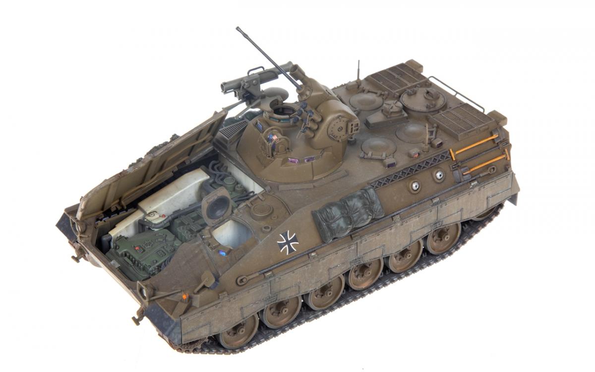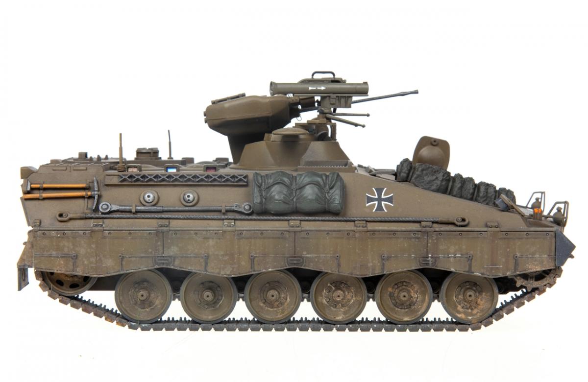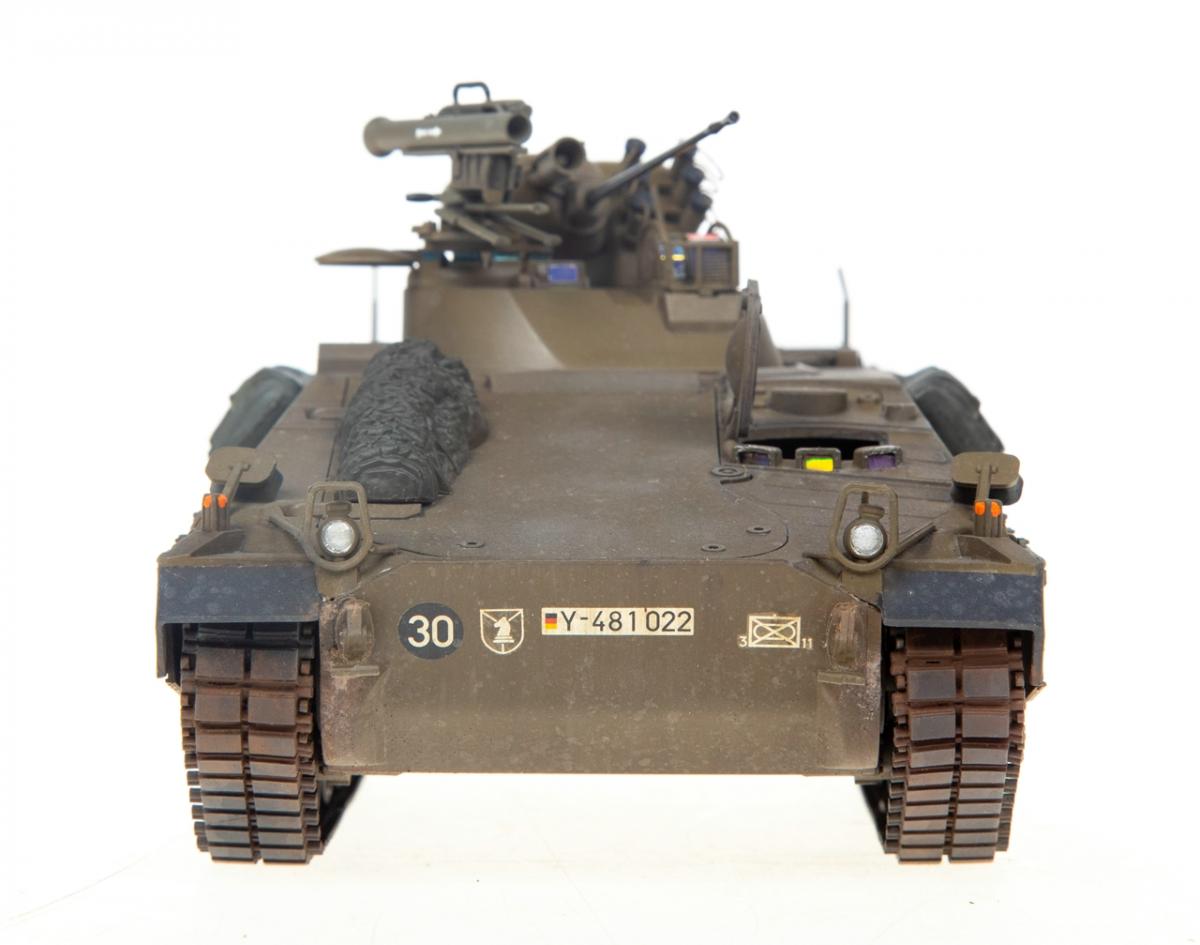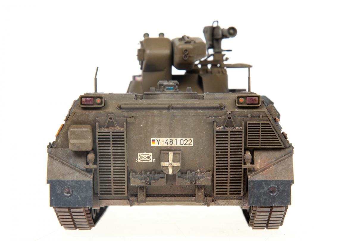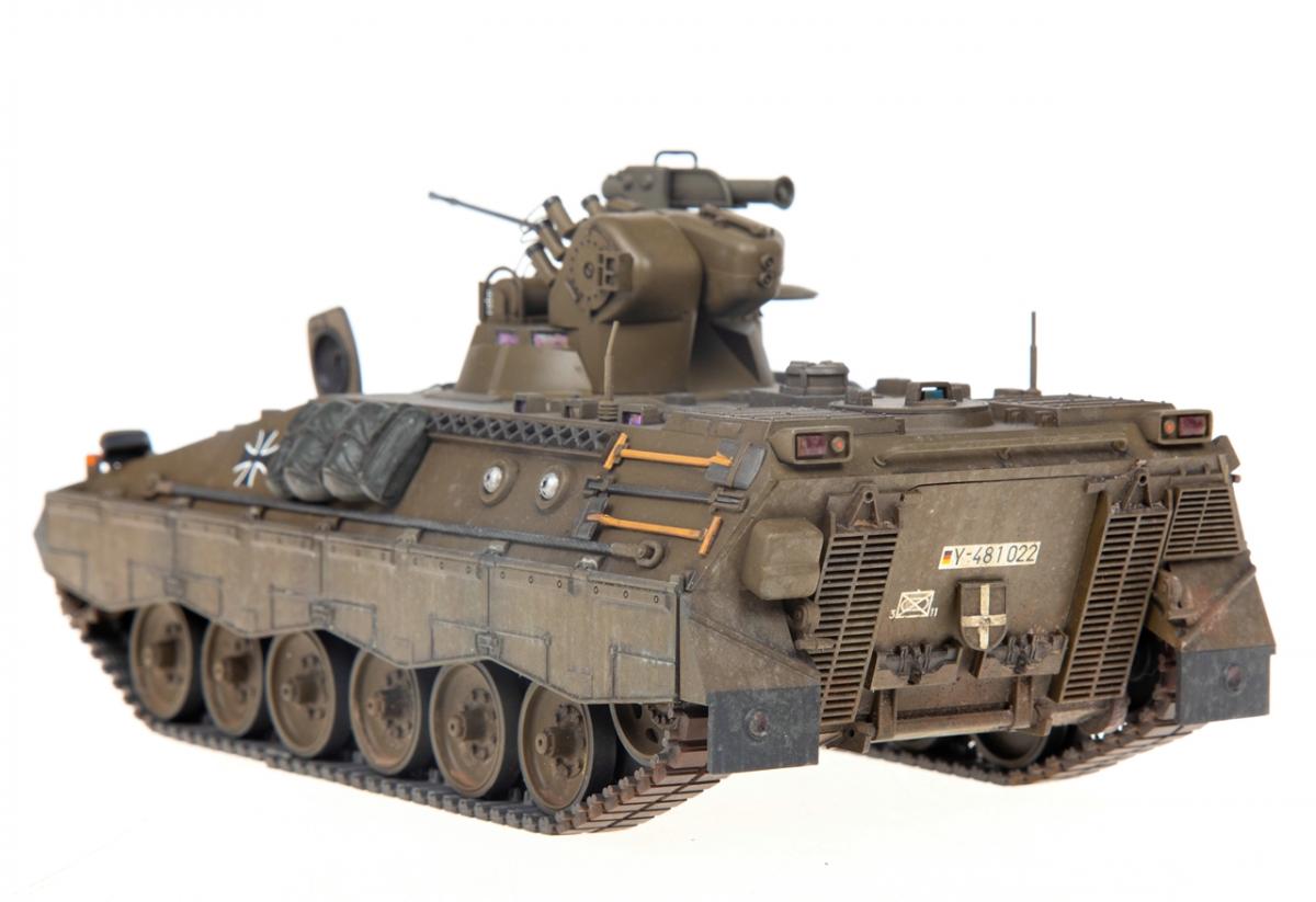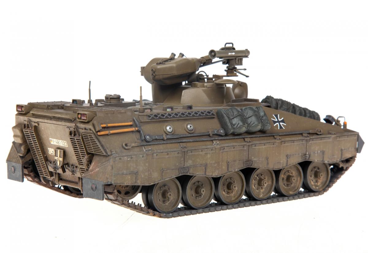 Представляю вашему вниманию свою очередную "карантинную" сборку. На сегодняшний день данная модель является безальтернативной в 35 масштабе. Сама модель 2008 года, но Revell уже анонсировал перевыпуск данной модели - возможно будут какие-то изменения. На сегодняшний день к модели есть ряд замечаний:1) жесткий и одновременно ломкий пластик2) толстые декали3) при сборке варианта А3 (с башней прицела) установить пулемет по инструкции не представляется возможным4) туба ракетной установке тоньше чем декаль - лучше заменить ее на трубку подходящего диаметра5) нет тросаСама сборка не вызывает вопросов и достаточно проста, хотя отлитые бортовые экраны совместно с боковинами корпуса вызывают удивление. Основная сборка из коробки, от себя добавил только дымовые гранаты от "Magic Models" и из остатков от других моделей подобрал коуши для троса. Производитель дает варианты декалей для нескольких типов подобных машин. Я выбрал вариант А3 армии Бундесвера на период 1995 года.Окраска стандартная - акрилы от МрКолор и Тамии. Везеренг жидкостями от АК и МиГ.Конструктивная критика и комментарии приветствуются.http://cdn-frm-eu.wargaming.net/wot/ru/uploads/monthly_05_2020/post-1579793-0-55443800-1588591680_thumb.jpghttp://cdn-frm-eu.wargaming.net/wot/ru/uploads/monthly_05_2020/post-1579793-0-49343600-1588591715_thumb.jpghttp://cdn-frm-eu.wargaming.net/wot/ru/uploads/monthly_05_2020/post-1579793-0-42384100-1588591732_thumb.jpghttp://cdn-frm-eu.wargaming.net/wot/ru/uploads/monthly_05_2020/post-1579793-0-07794300-1588591692_thumb.jpghttp://cdn-frm-eu.wargaming.net/wot/ru/uploads/monthly_05_2020/post-1579793-0-77284200-1588591703_thumb.jpghttp://cdn-frm-eu.wargaming.net/wot/ru/uploads/monthly_05_2020/post-1579793-0-78730000-1588591746_thumb.jpghttp://cdn-frm-eu.wargaming.net/wot/ru/uploads/monthly_05_2020/post-1579793-0-51461300-1588591772_thumb.jpghttp://cdn-frm-eu.wargaming.net/wot/ru/uploads/monthly_05_2020/post-1579793-0-82252400-1588591761_thumb.jpghttp://cdn-frm-eu.wargaming.net/wot/ru/uploads/monthly_05_2020/post-1579793-0-56678700-1588591790_thumb.jpg