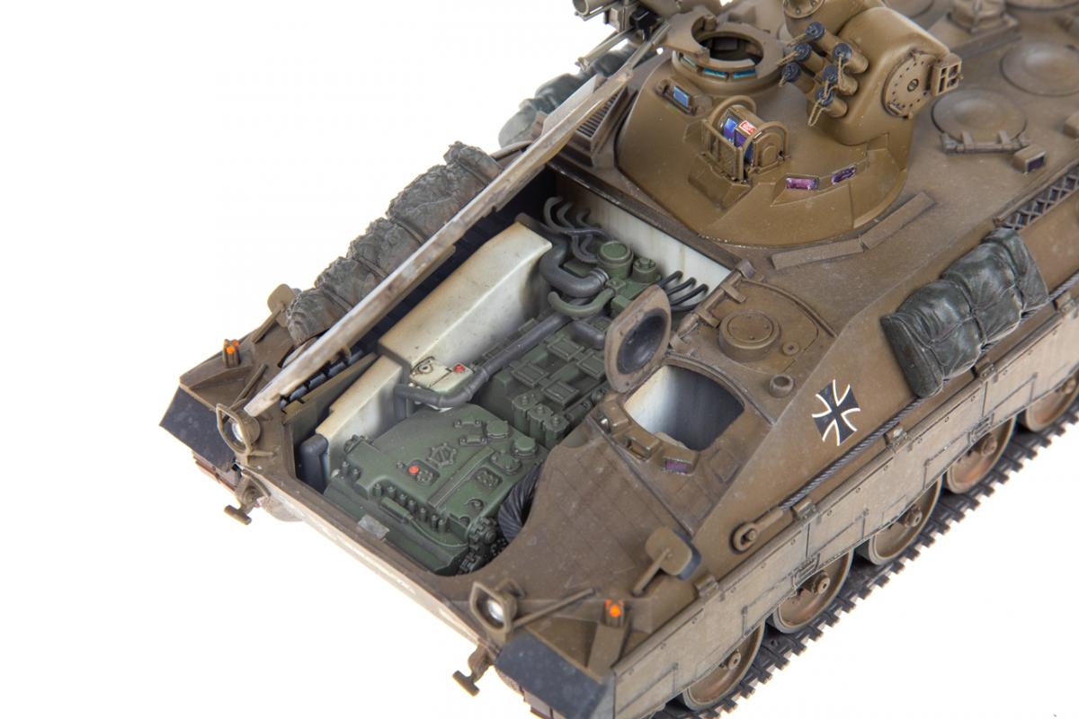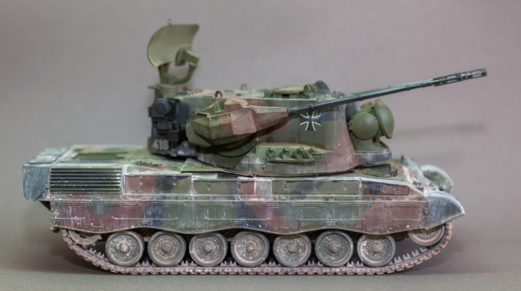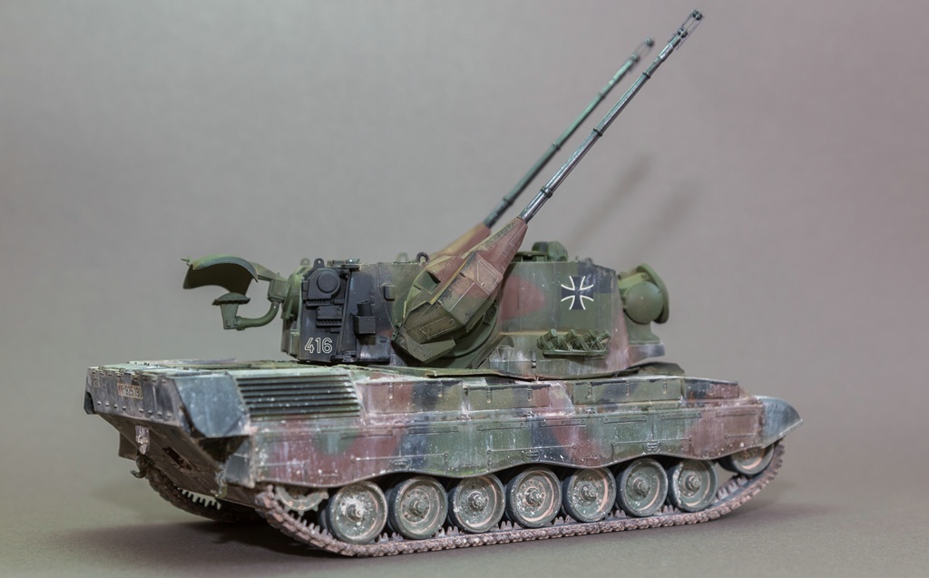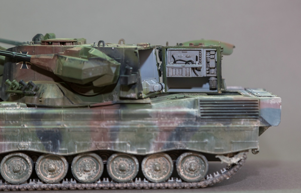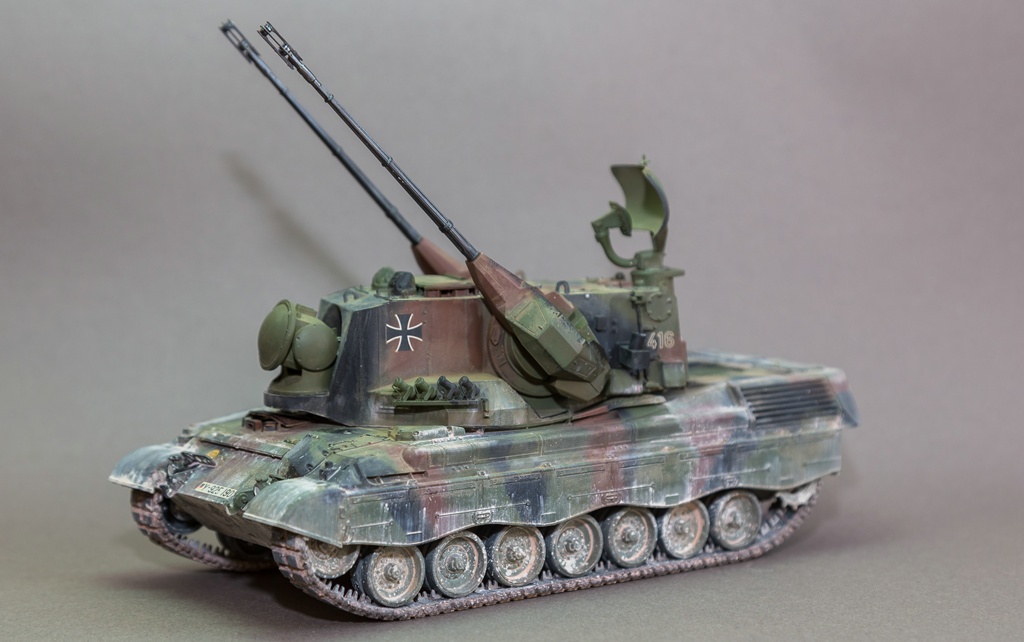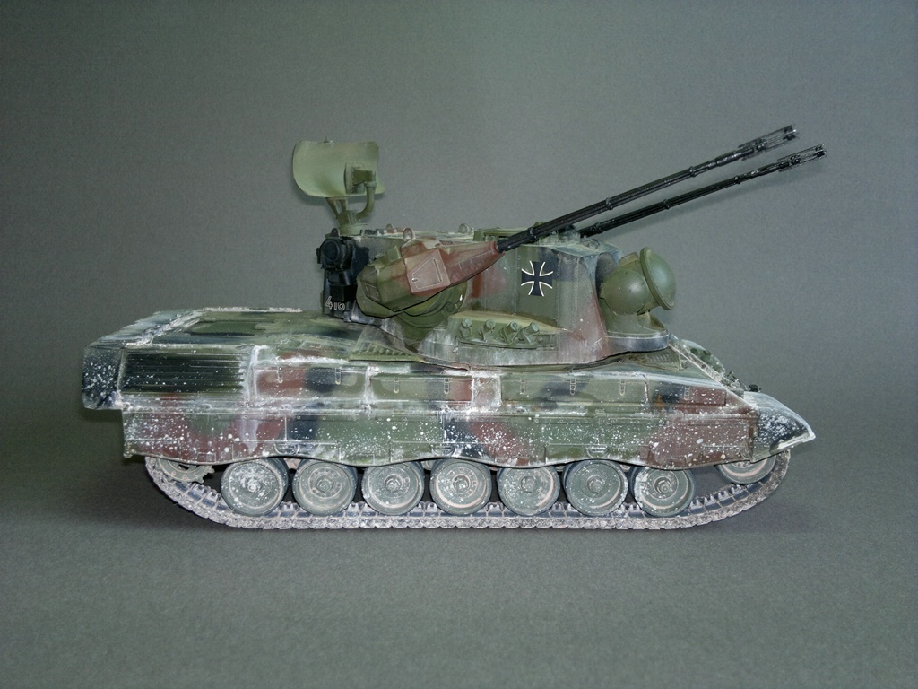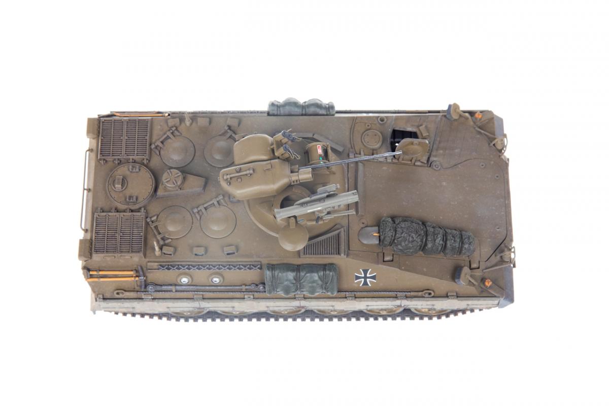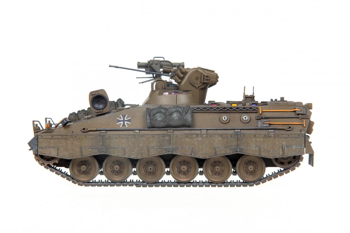Представляю вашему вниманию свою очередную "карантинную" сборку. На сегодняшний день данная модель является безальтернативной в 35 масштабе. Сама модель 2008 года, но Revell уже анонсировал перевыпуск данной модели - возможно будут какие-то изменения. На сегодняшний день к модели есть ряд замечаний:1) жесткий и одновременно ломкий пластик2) толстые декали3) при сборке варианта А3 (с башней прицела) установить пулемет по инструкции не представляется возможным4) туба ракетной установке тоньше чем декаль - лучше заменить ее на трубку подходящего диаметра5) нет тросаСама сборка не вызывает вопросов и достаточно проста, хотя отлитые бортовые экраны совместно с боковинами корпуса вызывают удивление. Основная сборка из коробки, от себя добавил только дымовые гранаты от "Magic Models" и из остатков от других моделей подобрал коуши для троса. Производитель дает варианты декалей для нескольких типов подобных машин. Я выбрал вариант А3 армии Бундесвера на период 1995 года.Окраска стандартная - акрилы от МрКолор и Тамии. Везеренг жидкостями от АК и МиГ.Конструктивная критика и комментарии приветствуются.http://cdn-frm-eu.wargaming.net/wot/ru/uploads/monthly_05_2020/post-1579793-0-55443800-1588591680_thumb.jpghttp://cdn-frm-eu.wargaming.net/wot/ru/uploads/monthly_05_2020/post-1579793-0-49343600-1588591715_thumb.jpghttp://cdn-frm-eu.wargaming.net/wot/ru/uploads/monthly_05_2020/post-1579793-0-42384100-1588591732_thumb.jpghttp://cdn-frm-eu.wargaming.net/wot/ru/uploads/monthly_05_2020/post-1579793-0-07794300-1588591692_thumb.jpghttp://cdn-frm-eu.wargaming.net/wot/ru/uploads/monthly_05_2020/post-1579793-0-77284200-1588591703_thumb.jpghttp://cdn-frm-eu.wargaming.net/wot/ru/uploads/monthly_05_2020/post-1579793-0-78730000-1588591746_thumb.jpghttp://cdn-frm-eu.wargaming.net/wot/ru/uploads/monthly_05_2020/post-1579793-0-51461300-1588591772_thumb.jpghttp://cdn-frm-eu.wargaming.net/wot/ru/uploads/monthly_05_2020/post-1579793-0-82252400-1588591761_thumb.jpghttp://cdn-frm-eu.wargaming.net/wot/ru/uploads/monthly_05_2020/post-1579793-0-56678700-1588591790_thumb.jpg
