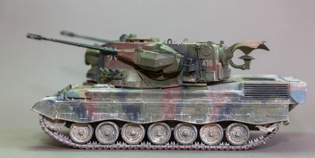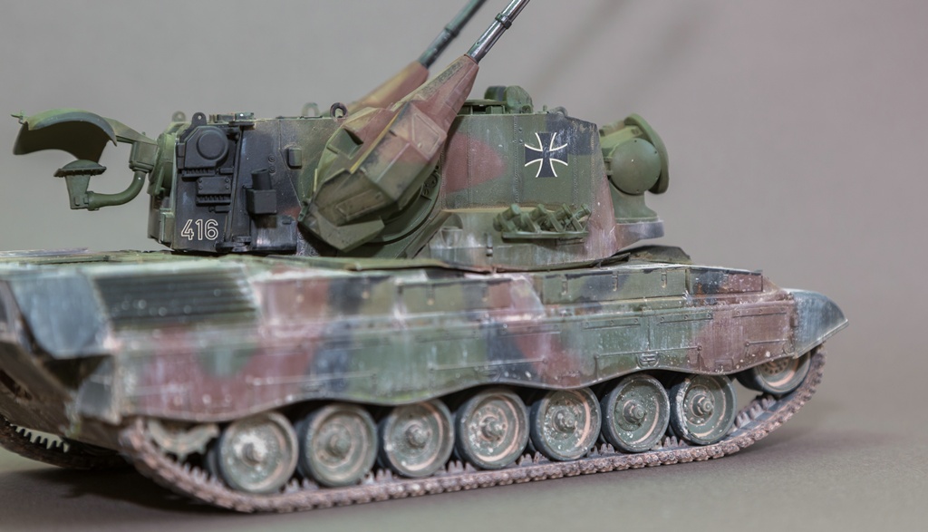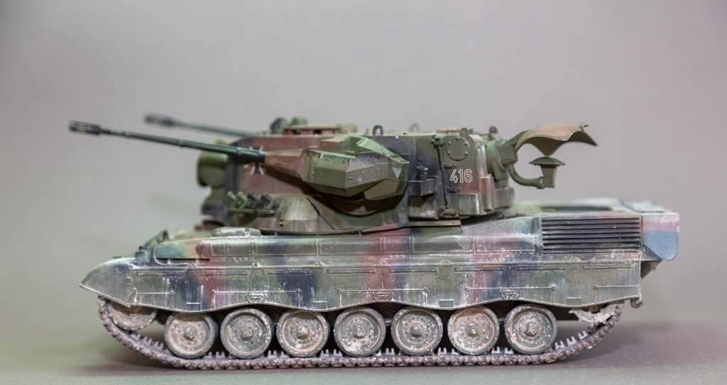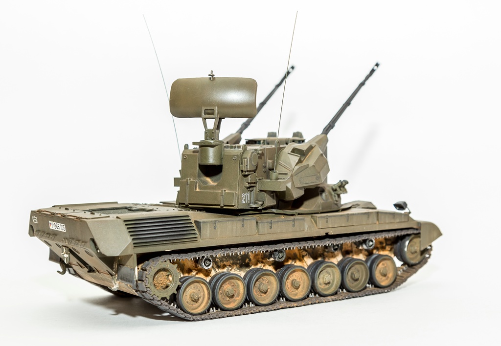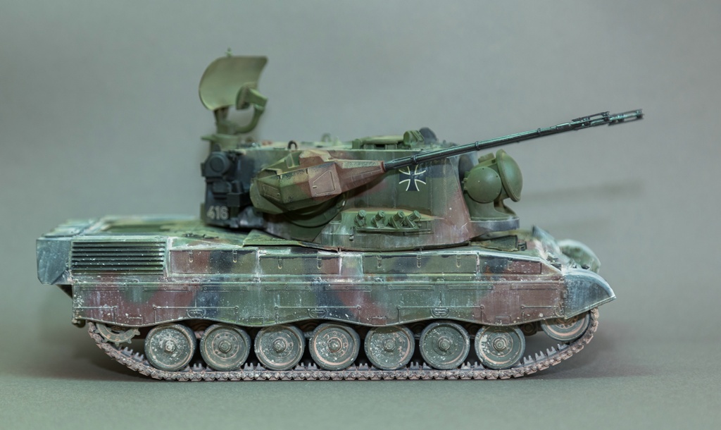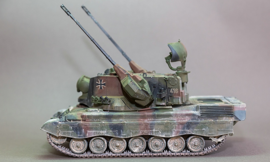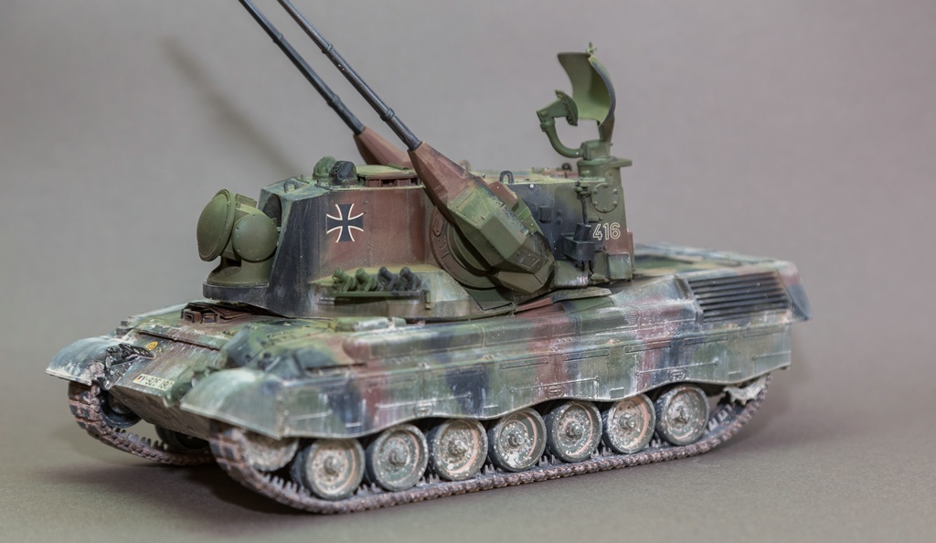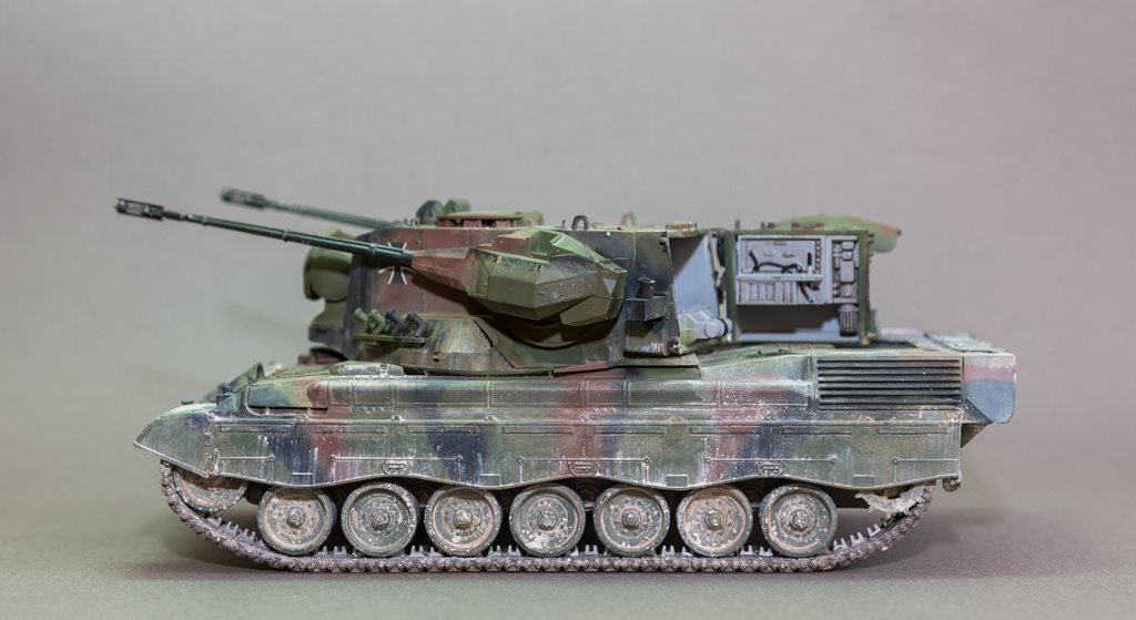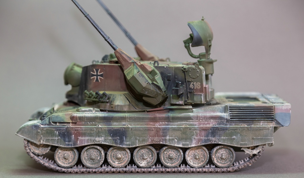 Представляю вашему вниманию свою очередную "карантинную" сборку. На сегодняшний день данная модель является безальтернативной в 35 масштабе. Сама модель 2008 года, но Revell уже анонсировал перевыпуск данной модели - возможно будут какие-то изменения. На сегодняшний день к модели есть ряд замечаний:1) жесткий и одновременно ломкий пластик2) толстые декали3) при сборке варианта А3 (с башней прицела) установить пулемет по инструкции не представляется возможным4) туба ракетной установке тоньше чем декаль - лучше заменить ее на трубку подходящего диаметра5) нет тросаСама сборка не вызывает вопросов и достаточно проста, хотя отлитые бортовые экраны совместно с боковинами корпуса вызывают удивление. Основная сборка из коробки, от себя добавил только дымовые гранаты от "Magic Models" и из остатков от других моделей подобрал коуши для троса. Производитель дает варианты декалей для нескольких типов подобных машин. Я выбрал вариант А3 армии Бундесвера на период 1995 года.Окраска стандартная - акрилы от МрКолор и Тамии. Везеренг жидкостями от АК и МиГ.Конструктивная критика и комментарии приветствуются.http://cdn-frm-eu.wargaming.net/wot/ru/uploads/monthly_05_2020/post-1579793-0-55443800-1588591680_thumb.jpghttp://cdn-frm-eu.wargaming.net/wot/ru/uploads/monthly_05_2020/post-1579793-0-49343600-1588591715_thumb.jpghttp://cdn-frm-eu.wargaming.net/wot/ru/uploads/monthly_05_2020/post-1579793-0-42384100-1588591732_thumb.jpghttp://cdn-frm-eu.wargaming.net/wot/ru/uploads/monthly_05_2020/post-1579793-0-07794300-1588591692_thumb.jpghttp://cdn-frm-eu.wargaming.net/wot/ru/uploads/monthly_05_2020/post-1579793-0-77284200-1588591703_thumb.jpghttp://cdn-frm-eu.wargaming.net/wot/ru/uploads/monthly_05_2020/post-1579793-0-78730000-1588591746_thumb.jpghttp://cdn-frm-eu.wargaming.net/wot/ru/uploads/monthly_05_2020/post-1579793-0-51461300-1588591772_thumb.jpghttp://cdn-frm-eu.wargaming.net/wot/ru/uploads/monthly_05_2020/post-1579793-0-82252400-1588591761_thumb.jpghttp://cdn-frm-eu.wargaming.net/wot/ru/uploads/monthly_05_2020/post-1579793-0-56678700-1588591790_thumb.jpg