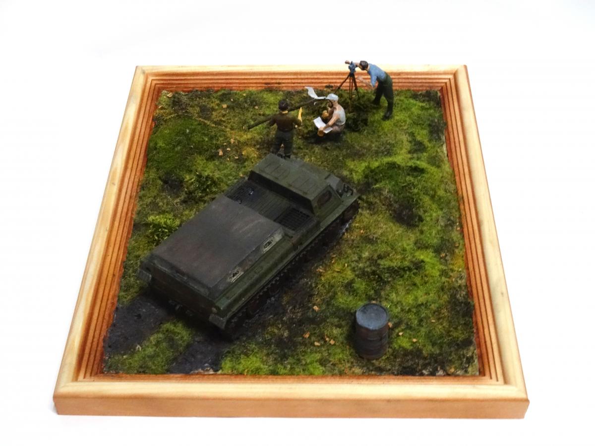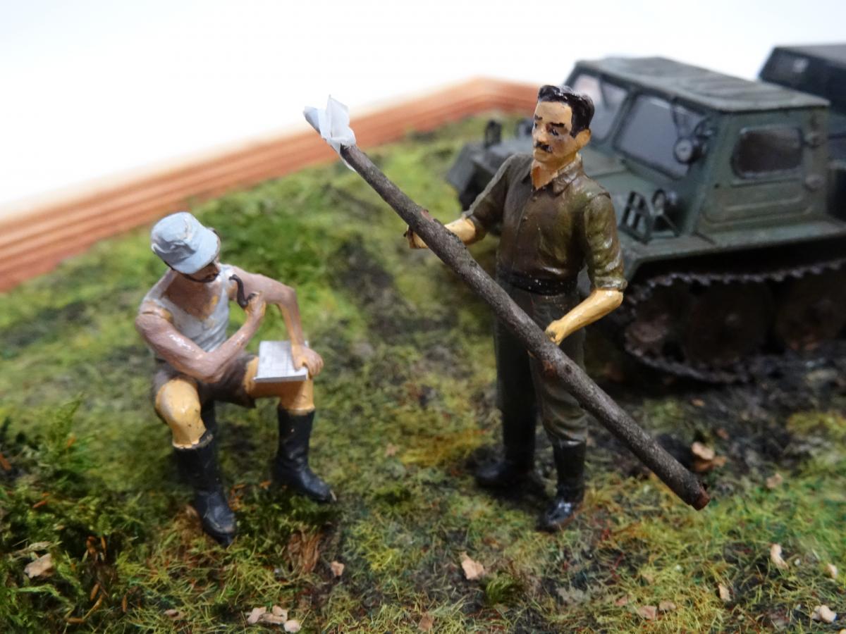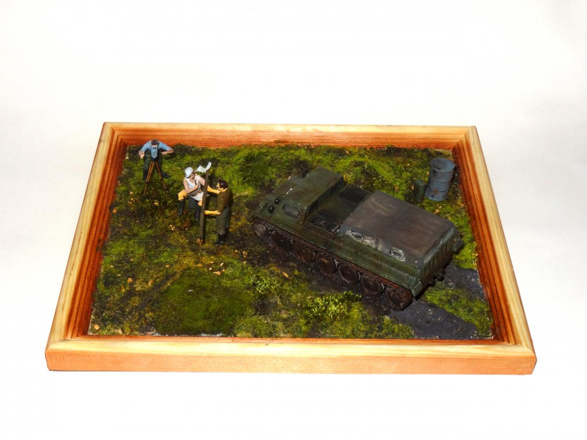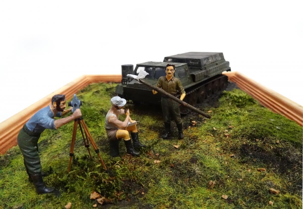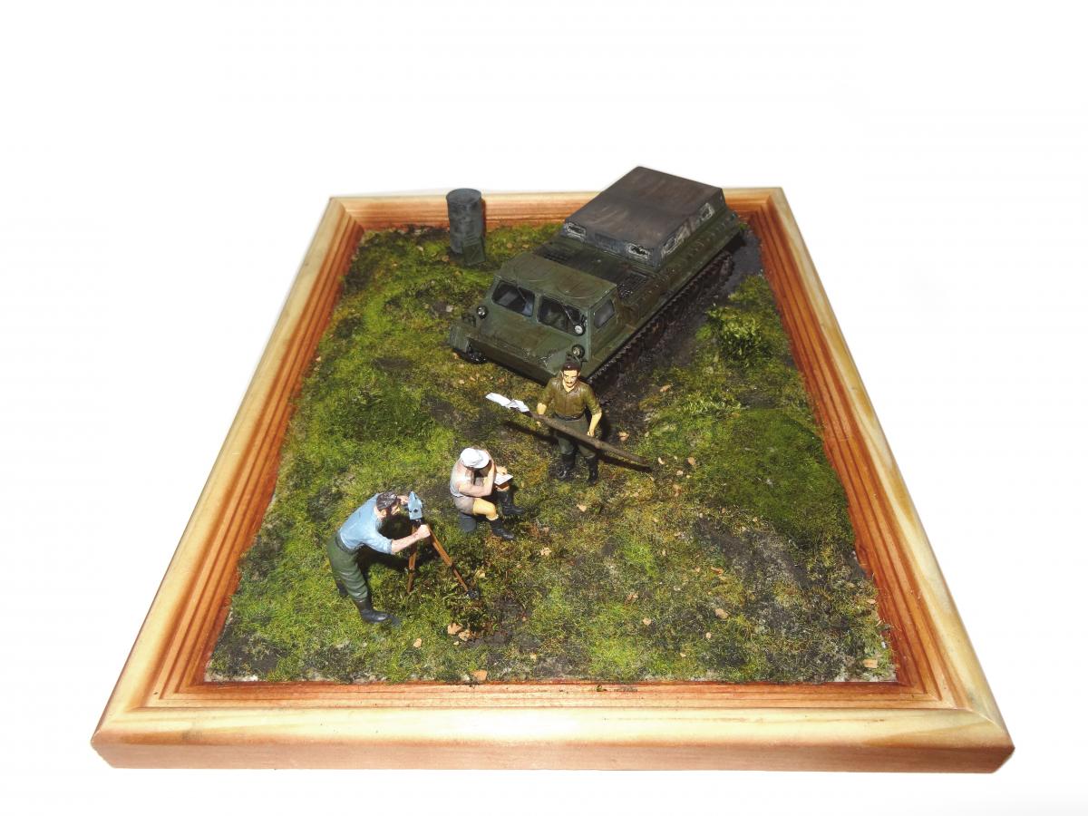 Работа делалась в подарок отцу на Новый Год на основе его фотографии, когда он работал в экспедиции на Севере. Виньетка была сделана в "летнем варианте" и немного осовременена, т.к. найти вездеход газ-47 нужного масштаба не получилось. Теодолит изображенный на ч/б фото также был превращен в что-то среднее между теодолитом и тахеометром (печатался на 3D принтере). Работа делалась для себя, но приму любую адекватную критику. Кому интересно : СССР. 1972 г. Новосибирские острова. 123 эскпедиция. 7-го Московского Аэрогеодезического Предприятия. Масштаб 1/35.