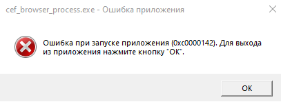 После запуска игры, после каждого боя вылет такая такая ошибка cef_browser_process.exe 0xc0000142, как вылечить такую проблему, пробовал на целостность проверять ,полная переустановки игры, все так же остается