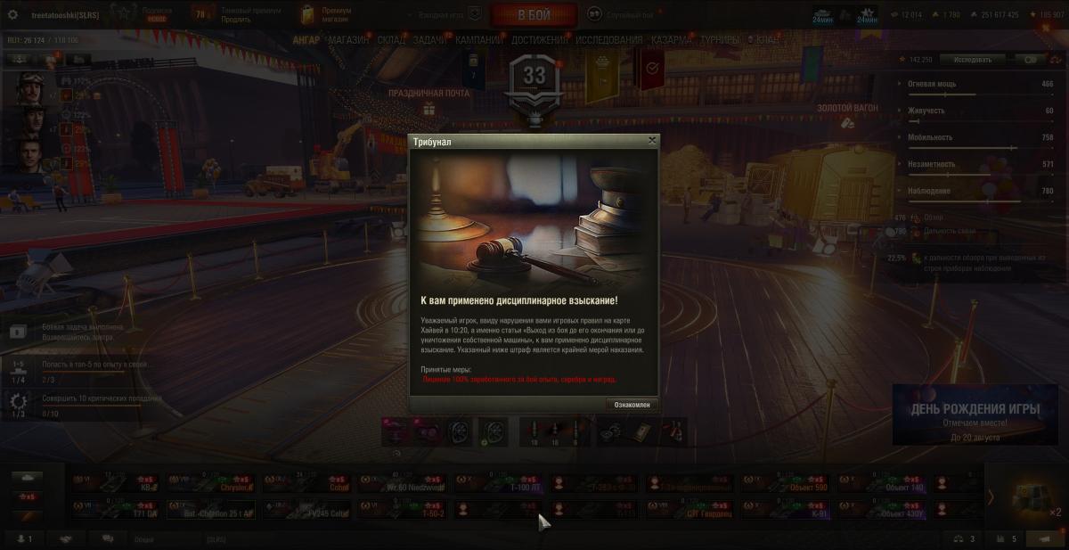 Сегодня играя в натиск словил вылет игры, причем был конец победного боя. Долго не мог зайти, потому что "Lesta Game Ctnter" проверял целостность игры, причем почему то два раза подряд, причем ошибок никаких не выдало. После того как зашел в игру, увидел, что бой был выигран, а меня оштрафовали на 50 очков за дезертирство. Есть ли возможность отменить этот штраф или я так и буду без вины виноватый дезертир?