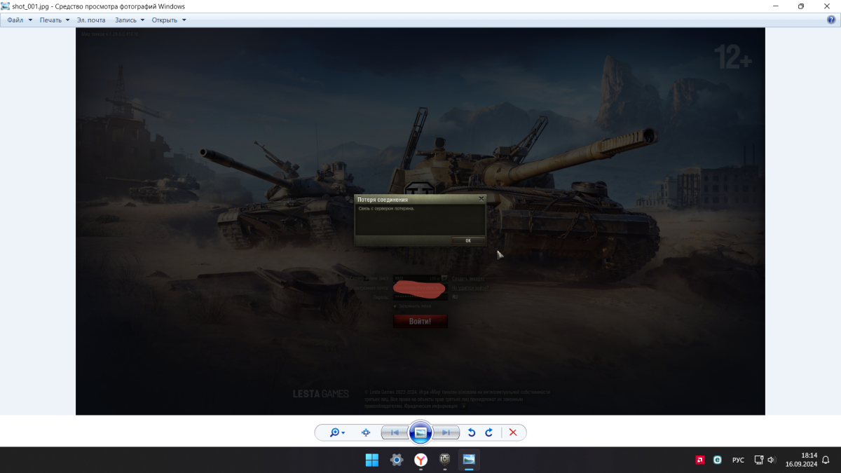 Вылетает (отключает) с сервера: Иногда в начале боя, иногда в конце боя. Не всегда. Иногда по 10 боев норм, а потом вылет. Или подряд несколько раз. Проверял целостность файлов клиента, переустанавливал клиент игры, делал отчет Геймчек с Расширенной сетевой диагностикой пары серверов, проверял диск, проверял антивирусом. Танцевал с бубном!!! Ссылка на старую тему мою: http://forum.tanki.su/index.php?/topic/2200215-%d0%b2%d1%8b%d0%bb%d0%b5%d1%82%d1%8b-%d1%81-%d1%81%d0%b5%d1%80%d0%b2%d0%b0%d0%ba%d0%be%d0%b2/page__p__57405517#entry57405517 В общем все началось заново! Кто подскажет что еще сделать? Как быть?