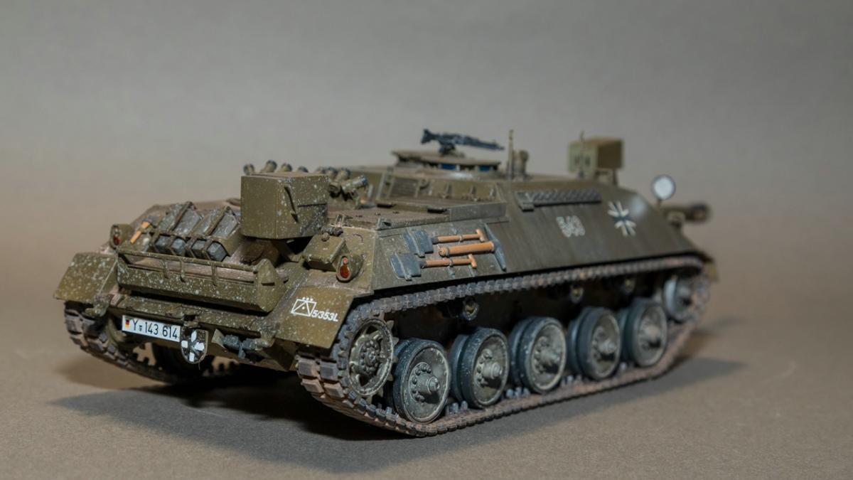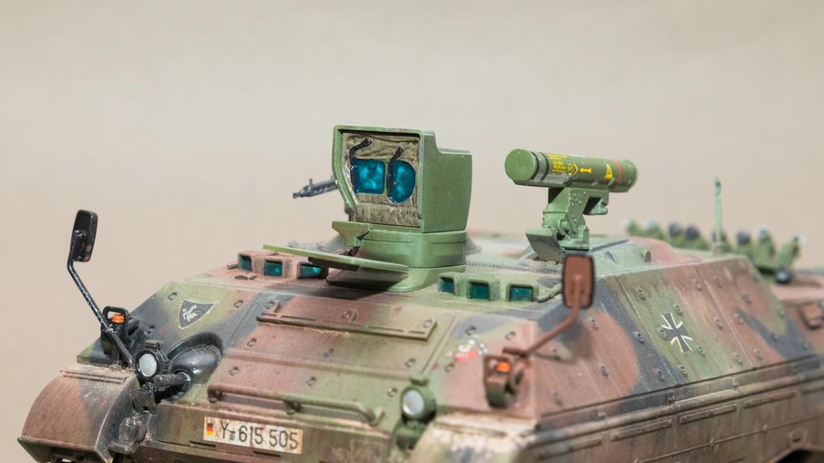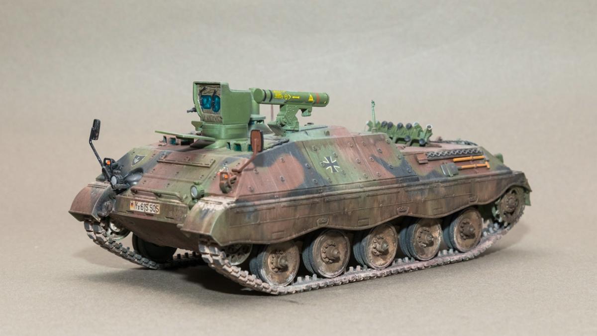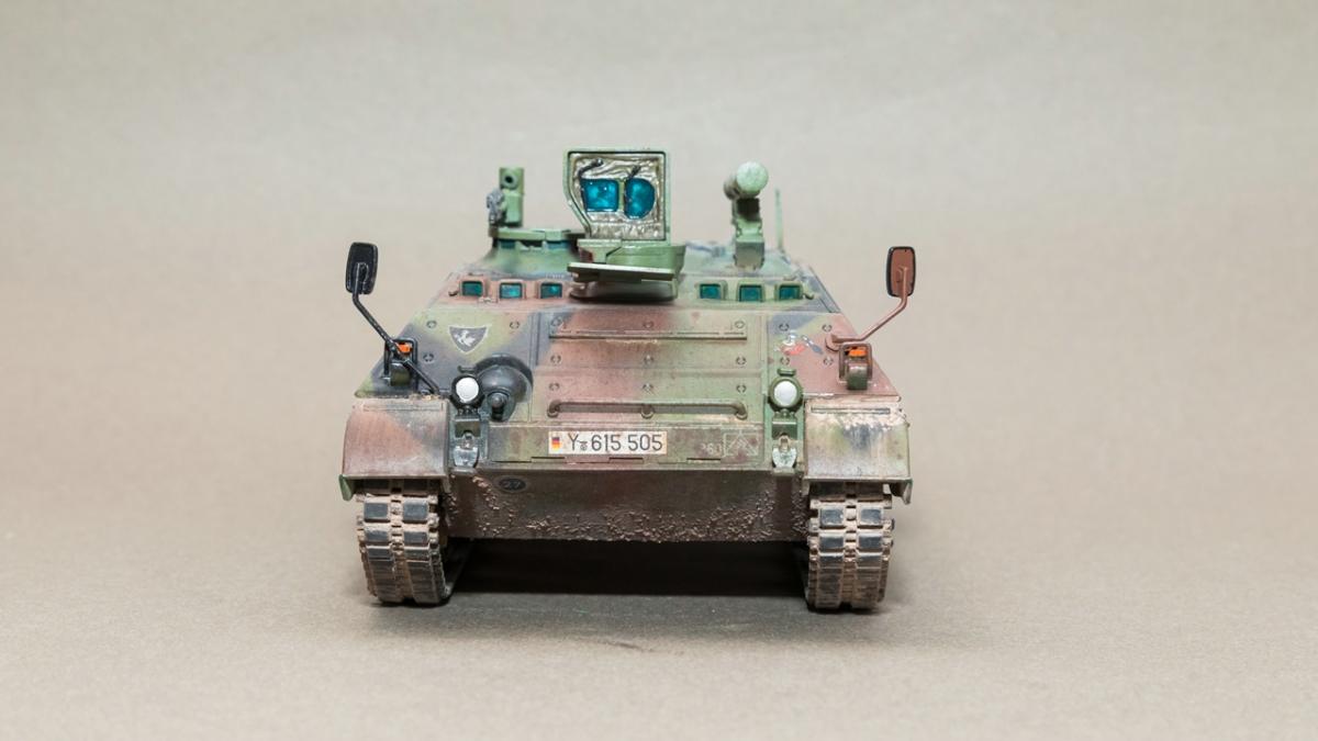 Представляю вашему вниманию свою очередную "карантинную" сборку. На сегодняшний день данная модель является безальтернативной в 35 масштабе. Сама модель 2008 года, но Revell уже анонсировал перевыпуск данной модели - возможно будут какие-то изменения. На сегодняшний день к модели есть ряд замечаний:1) жесткий и одновременно ломкий пластик2) толстые декали3) при сборке варианта А3 (с башней прицела) установить пулемет по инструкции не представляется возможным4) туба ракетной установке тоньше чем декаль - лучше заменить ее на трубку подходящего диаметра5) нет тросаСама сборка не вызывает вопросов и достаточно проста, хотя отлитые бортовые экраны совместно с боковинами корпуса вызывают удивление. Основная сборка из коробки, от себя добавил только дымовые гранаты от "Magic Models" и из остатков от других моделей подобрал коуши для троса. Производитель дает варианты декалей для нескольких типов подобных машин. Я выбрал вариант А3 армии Бундесвера на период 1995 года.Окраска стандартная - акрилы от МрКолор и Тамии. Везеренг жидкостями от АК и МиГ.Конструктивная критика и комментарии приветствуются.http://cdn-frm-eu.wargaming.net/wot/ru/uploads/monthly_05_2020/post-1579793-0-55443800-1588591680_thumb.jpghttp://cdn-frm-eu.wargaming.net/wot/ru/uploads/monthly_05_2020/post-1579793-0-49343600-1588591715_thumb.jpghttp://cdn-frm-eu.wargaming.net/wot/ru/uploads/monthly_05_2020/post-1579793-0-42384100-1588591732_thumb.jpghttp://cdn-frm-eu.wargaming.net/wot/ru/uploads/monthly_05_2020/post-1579793-0-07794300-1588591692_thumb.jpghttp://cdn-frm-eu.wargaming.net/wot/ru/uploads/monthly_05_2020/post-1579793-0-77284200-1588591703_thumb.jpghttp://cdn-frm-eu.wargaming.net/wot/ru/uploads/monthly_05_2020/post-1579793-0-78730000-1588591746_thumb.jpghttp://cdn-frm-eu.wargaming.net/wot/ru/uploads/monthly_05_2020/post-1579793-0-51461300-1588591772_thumb.jpghttp://cdn-frm-eu.wargaming.net/wot/ru/uploads/monthly_05_2020/post-1579793-0-82252400-1588591761_thumb.jpghttp://cdn-frm-eu.wargaming.net/wot/ru/uploads/monthly_05_2020/post-1579793-0-56678700-1588591790_thumb.jpg
