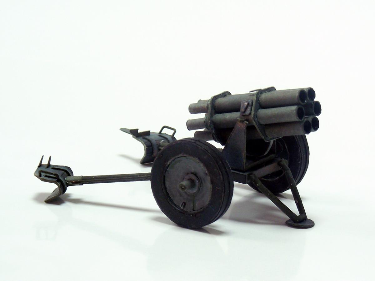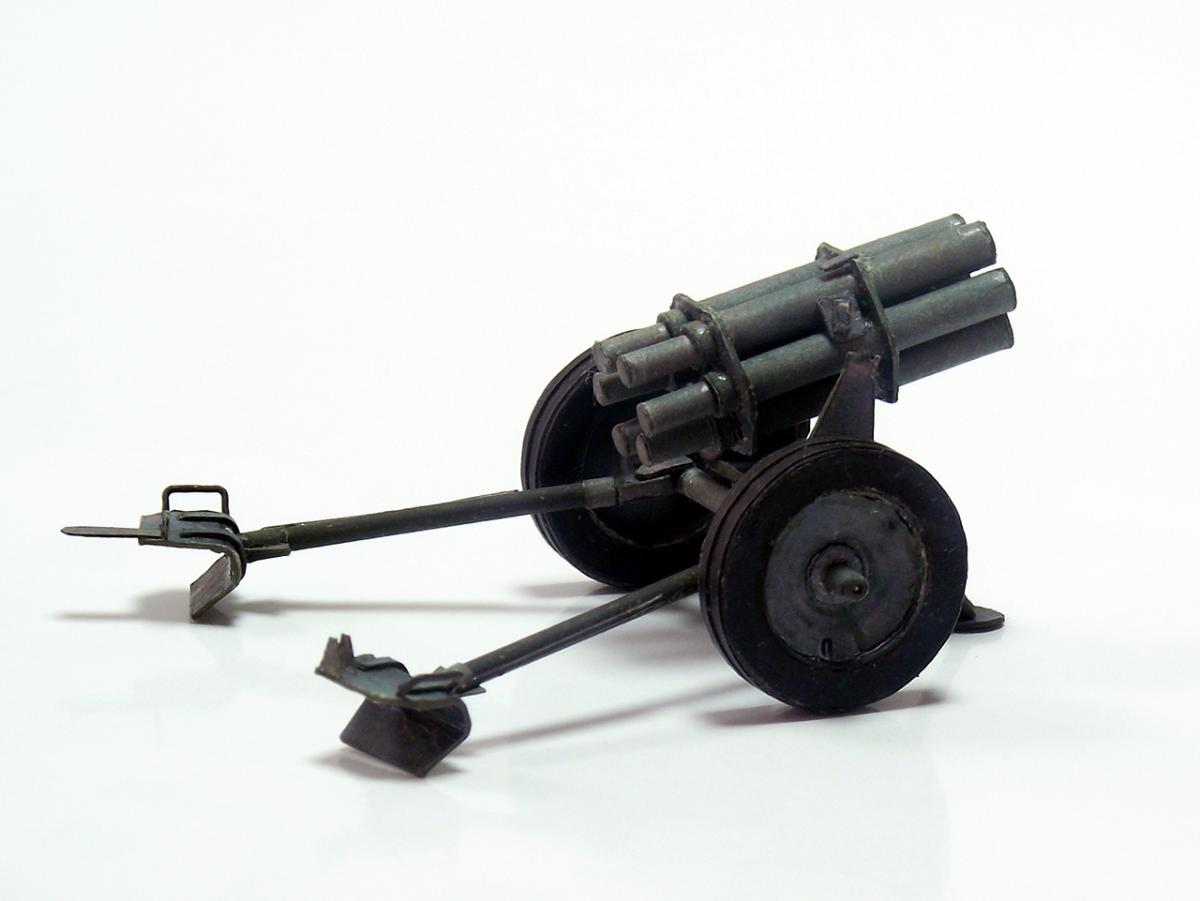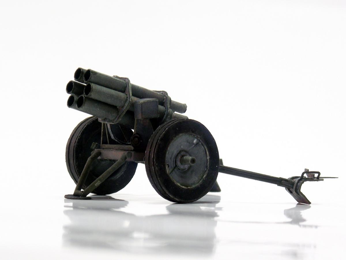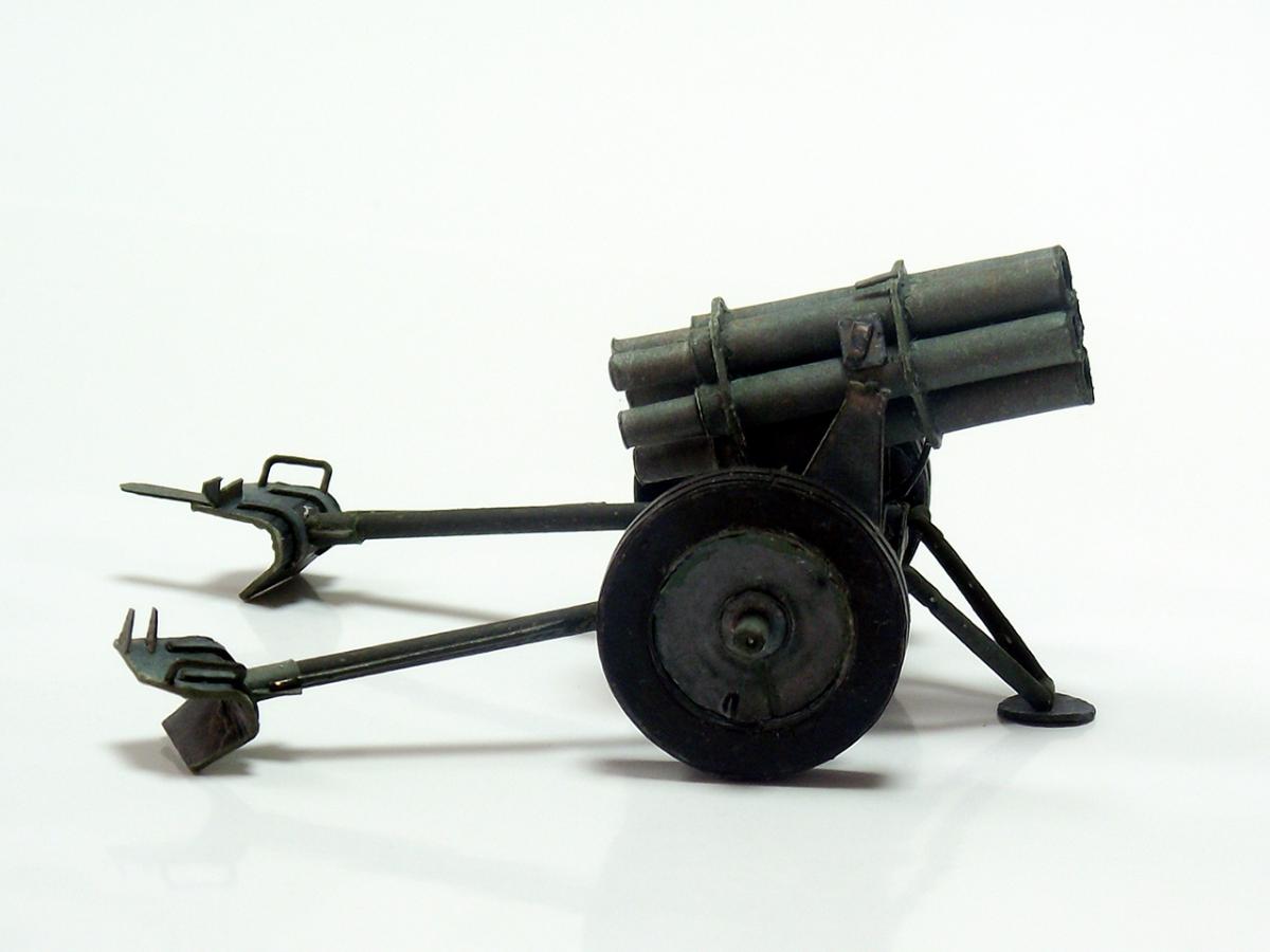 Немецкий реактивный миномет "Nebelwerfer 41" из диорамы "Железнодорожный переезд" http://cdn-frm-eu.wargaming.net/wot/ru/uploads/monthly_10_2016/post-8385505-0-79527800-1477598900.jpg http://cdn-frm-eu.wargaming.net/wot/ru/uploads/monthly_10_2016/post-8385505-0-29030300-1477598902_thumb.jpghttp://cdn-frm-eu.wargaming.net/wot/ru/uploads/monthly_10_2016/post-8385505-0-17231500-1477598904_thumb.jpghttp://cdn-frm-eu.wargaming.net/wot/ru/uploads/monthly_10_2016/post-8385505-0-86748500-1477598905_thumb.jpghttp://cdn-frm-eu.wargaming.net/wot/ru/uploads/monthly_10_2016/post-8385505-0-27334300-1477598907_thumb.jpghttp://cdn-frm-eu.wargaming.net/wot/ru/uploads/monthly_10_2016/post-8385505-0-75368600-1477598908_thumb.jpghttp://cdn-frm-eu.wargaming.net/wot/ru/uploads/monthly_10_2016/post-8385505-0-19133100-1477598910_thumb.jpghttp://cdn-frm-eu.wargaming.net/wot/ru/uploads/monthly_10_2016/post-8385505-0-39388100-1477598911_thumb.jpghttp://cdn-frm-eu.wargaming.net/wot/ru/uploads/monthly_10_2016/post-8385505-0-16586700-1477598913_thumb.jpg Nebelwerfer (с нем. — "туманомет" ) — германский буксируемый реактивный миномет времен Второй мировой войны. Вместе с советскими "Катюшами" Nebelwerfer был первым массово использовавшимся ракетным минометом залпового огня.У советских солдат имел прозвище "Ванюша" или "Ишак", у солдат союзных войск ходило прозвище "Стонущая Мими", немцы называли его "Stuka zu Fuß" (сухопутная "Штука" ) или "Heulende Kuh" (воющая корова). Еще немного информации:"Nebelwerfer" появился в начале 1930-х годов и был изначально ориентирован на применение только химического оружия: метание дымовых шашек и химических снарядов (как первоначально планировалось применять и советские "Катюши" ). Однако фактически использовался для стрельбы осколочно-фугасными минами.Реактивный миномет "Nebelwerfer 41" был создан с использованием лафета противотанковой пушки Pak 35/36, он имел шесть 158,5-мм стволов и стрелял 35-килограммовыми снарядами на расстояние до 6,9 км; с частотой 0,6 выстрелов в секунду; три залпа в 5 минут. Из-за веса (в незаряженном состоянии, при транспортировке) в 590 кг для обслуживания Nebelwerfer 41 требовалось четыре человека. Источники информации: Wiki, ironrats, militaryarms. Еще фотографии: http://cdn-frm-eu.wargaming.net/wot/ru/uploads/monthly_10_2016/post-8385505-0-11533600-1477598915_thumb.jpghttp://cdn-frm-eu.wargaming.net/wot/ru/uploads/monthly_10_2016/post-8385505-0-55514500-1477598916_thumb.jpghttp://cdn-frm-eu.wargaming.net/wot/ru/uploads/monthly_10_2016/post-8385505-0-60687900-1477598918_thumb.jpghttp://cdn-frm-eu.wargaming.net/wot/ru/uploads/monthly_10_2016/post-8385505-0-80789200-1477598920_thumb.jpghttp://cdn-frm-eu.wargaming.net/wot/ru/uploads/monthly_10_2016/post-8385505-0-86642600-1477598922_thumb.jpghttp://cdn-frm-eu.wargaming.net/wot/ru/uploads/monthly_10_2016/post-8385505-0-49252300-1477598924_thumb.jpghttp://cdn-frm-eu.wargaming.net/wot/ru/uploads/monthly_10_2016/post-8385505-0-93739400-1477598925_thumb.jpghttp://cdn-frm-eu.wargaming.net/wot/ru/uploads/monthly_10_2016/post-8385505-0-94553500-1477598927_thumb.jpghttp://cdn-frm-eu.wargaming.net/wot/ru/uploads/monthly_10_2016/post-8385505-0-44261900-1477598929_thumb.jpghttp://cdn-frm-eu.wargaming.net/wot/ru/uploads/monthly_10_2016/post-8385505-0-98783200-1477598930_thumb.jpghttp://cdn-frm-eu.wargaming.net/wot/ru/uploads/monthly_10_2016/post-8385505-0-35815700-1477598932_thumb.jpg Недостатки (как обычно):колеса не совсем качественно сделаны - форма не полностью выдержана и клей виден во многих местах, передняя часть стволов местами неровная - результат первой неудачной попытки установки шестиугольных держателей, стволы выровнены неидеально как по высоте, так и по оси, стволы имеют видимую деформацию по длине из-за клапанов склейки, не все казенные части стволов выровнены по оси со стволами, толщина цилиндрических частей станин неверная - слишком толстые, не совсем точно подобрана краска - заметно на тех же станинах, при фотографировании не самый лучший вариант освещения, в "напарники" использована техника другого временного периода (СУ-18).