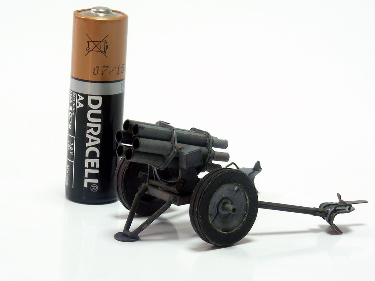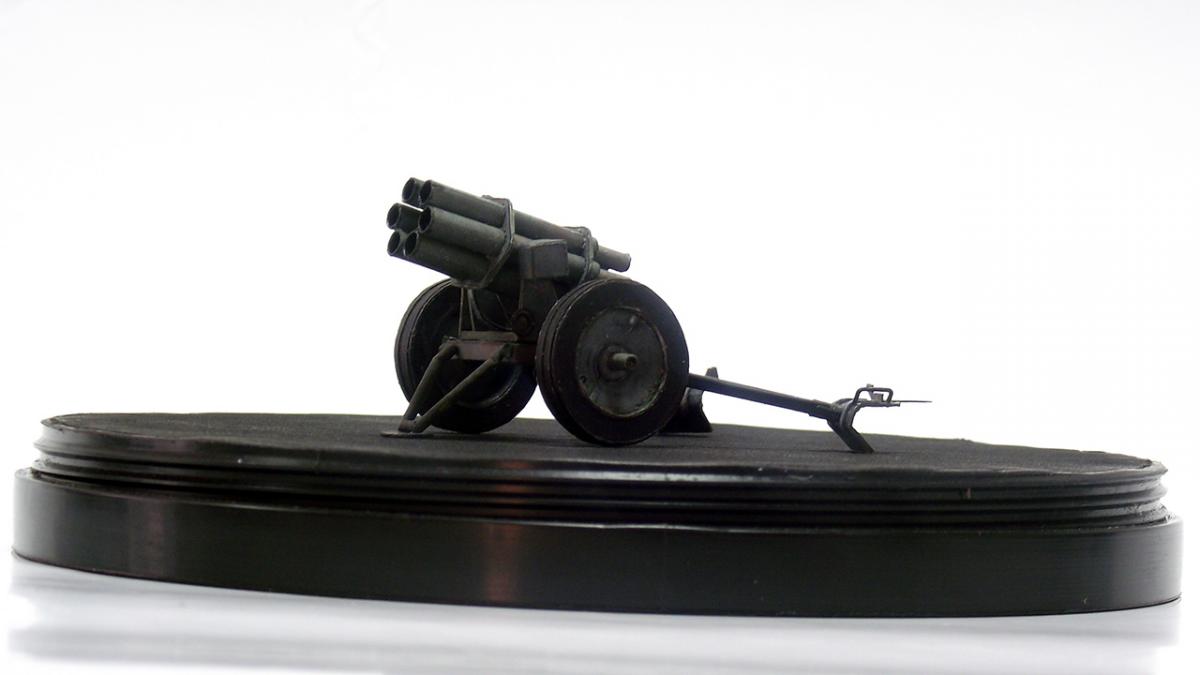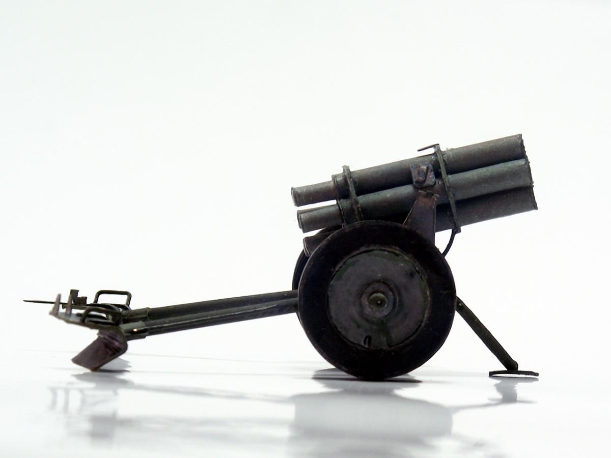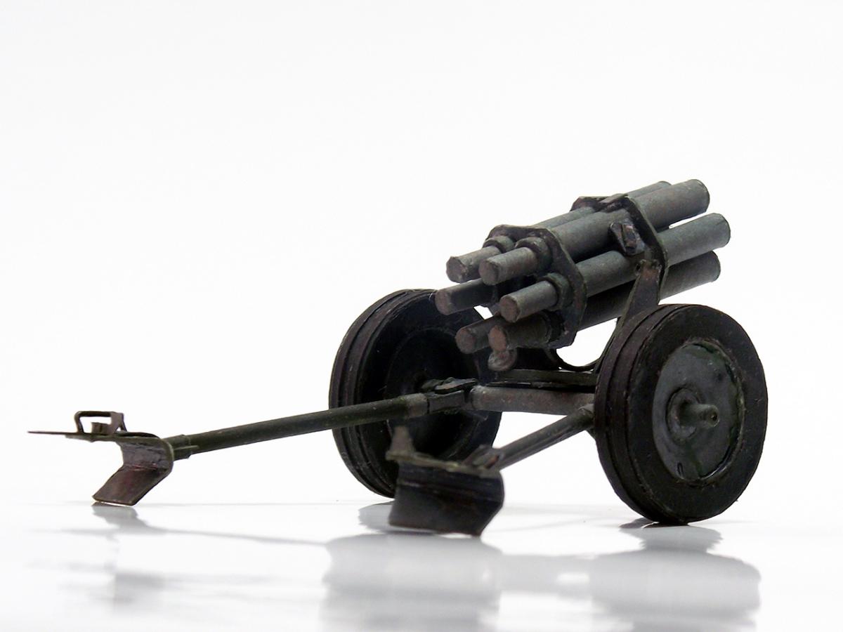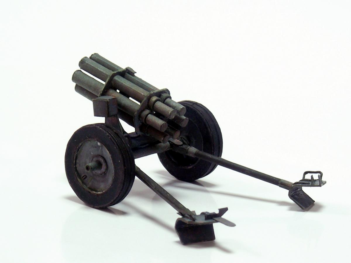 Немецкий реактивный миномет "Nebelwerfer 41" из диорамы "Железнодорожный переезд" http://cdn-frm-eu.wargaming.net/wot/ru/uploads/monthly_10_2016/post-8385505-0-79527800-1477598900.jpg http://cdn-frm-eu.wargaming.net/wot/ru/uploads/monthly_10_2016/post-8385505-0-29030300-1477598902_thumb.jpghttp://cdn-frm-eu.wargaming.net/wot/ru/uploads/monthly_10_2016/post-8385505-0-17231500-1477598904_thumb.jpghttp://cdn-frm-eu.wargaming.net/wot/ru/uploads/monthly_10_2016/post-8385505-0-86748500-1477598905_thumb.jpghttp://cdn-frm-eu.wargaming.net/wot/ru/uploads/monthly_10_2016/post-8385505-0-27334300-1477598907_thumb.jpghttp://cdn-frm-eu.wargaming.net/wot/ru/uploads/monthly_10_2016/post-8385505-0-75368600-1477598908_thumb.jpghttp://cdn-frm-eu.wargaming.net/wot/ru/uploads/monthly_10_2016/post-8385505-0-19133100-1477598910_thumb.jpghttp://cdn-frm-eu.wargaming.net/wot/ru/uploads/monthly_10_2016/post-8385505-0-39388100-1477598911_thumb.jpghttp://cdn-frm-eu.wargaming.net/wot/ru/uploads/monthly_10_2016/post-8385505-0-16586700-1477598913_thumb.jpg Nebelwerfer (с нем. — "туманомет" ) — германский буксируемый реактивный миномет времен Второй мировой войны. Вместе с советскими "Катюшами" Nebelwerfer был первым массово использовавшимся ракетным минометом залпового огня.У советских солдат имел прозвище "Ванюша" или "Ишак", у солдат союзных войск ходило прозвище "Стонущая Мими", немцы называли его "Stuka zu Fuß" (сухопутная "Штука" ) или "Heulende Kuh" (воющая корова). Еще немного информации:"Nebelwerfer" появился в начале 1930-х годов и был изначально ориентирован на применение только химического оружия: метание дымовых шашек и химических снарядов (как первоначально планировалось применять и советские "Катюши" ). Однако фактически использовался для стрельбы осколочно-фугасными минами.Реактивный миномет "Nebelwerfer 41" был создан с использованием лафета противотанковой пушки Pak 35/36, он имел шесть 158,5-мм стволов и стрелял 35-килограммовыми снарядами на расстояние до 6,9 км; с частотой 0,6 выстрелов в секунду; три залпа в 5 минут. Из-за веса (в незаряженном состоянии, при транспортировке) в 590 кг для обслуживания Nebelwerfer 41 требовалось четыре человека. Источники информации: Wiki, ironrats, militaryarms. Еще фотографии: http://cdn-frm-eu.wargaming.net/wot/ru/uploads/monthly_10_2016/post-8385505-0-11533600-1477598915_thumb.jpghttp://cdn-frm-eu.wargaming.net/wot/ru/uploads/monthly_10_2016/post-8385505-0-55514500-1477598916_thumb.jpghttp://cdn-frm-eu.wargaming.net/wot/ru/uploads/monthly_10_2016/post-8385505-0-60687900-1477598918_thumb.jpghttp://cdn-frm-eu.wargaming.net/wot/ru/uploads/monthly_10_2016/post-8385505-0-80789200-1477598920_thumb.jpghttp://cdn-frm-eu.wargaming.net/wot/ru/uploads/monthly_10_2016/post-8385505-0-86642600-1477598922_thumb.jpghttp://cdn-frm-eu.wargaming.net/wot/ru/uploads/monthly_10_2016/post-8385505-0-49252300-1477598924_thumb.jpghttp://cdn-frm-eu.wargaming.net/wot/ru/uploads/monthly_10_2016/post-8385505-0-93739400-1477598925_thumb.jpghttp://cdn-frm-eu.wargaming.net/wot/ru/uploads/monthly_10_2016/post-8385505-0-94553500-1477598927_thumb.jpghttp://cdn-frm-eu.wargaming.net/wot/ru/uploads/monthly_10_2016/post-8385505-0-44261900-1477598929_thumb.jpghttp://cdn-frm-eu.wargaming.net/wot/ru/uploads/monthly_10_2016/post-8385505-0-98783200-1477598930_thumb.jpghttp://cdn-frm-eu.wargaming.net/wot/ru/uploads/monthly_10_2016/post-8385505-0-35815700-1477598932_thumb.jpg Недостатки (как обычно):колеса не совсем качественно сделаны - форма не полностью выдержана и клей виден во многих местах, передняя часть стволов местами неровная - результат первой неудачной попытки установки шестиугольных держателей, стволы выровнены неидеально как по высоте, так и по оси, стволы имеют видимую деформацию по длине из-за клапанов склейки, не все казенные части стволов выровнены по оси со стволами, толщина цилиндрических частей станин неверная - слишком толстые, не совсем точно подобрана краска - заметно на тех же станинах, при фотографировании не самый лучший вариант освещения, в "напарники" использована техника другого временного периода (СУ-18).