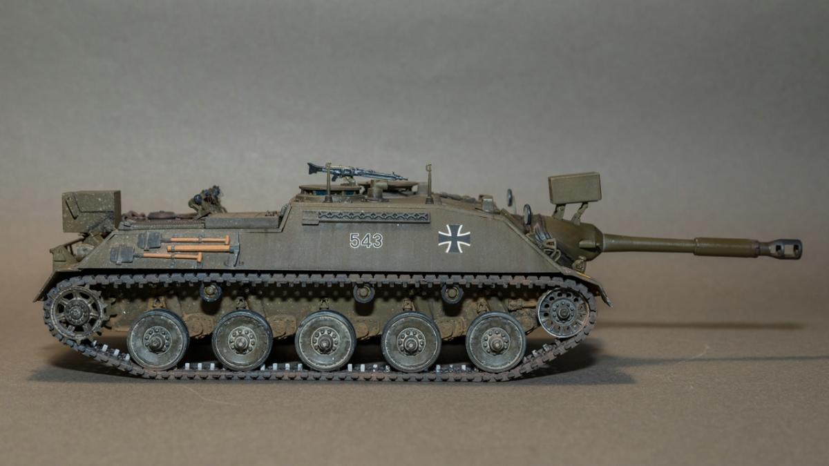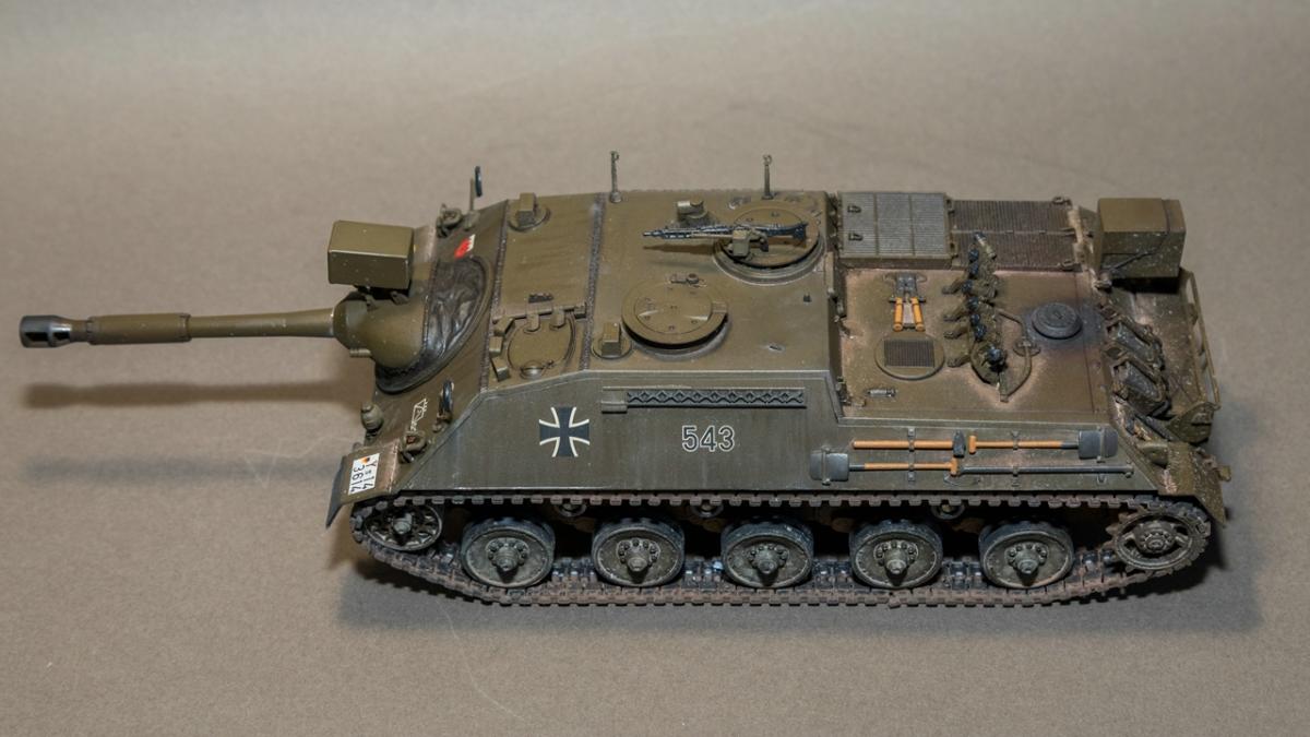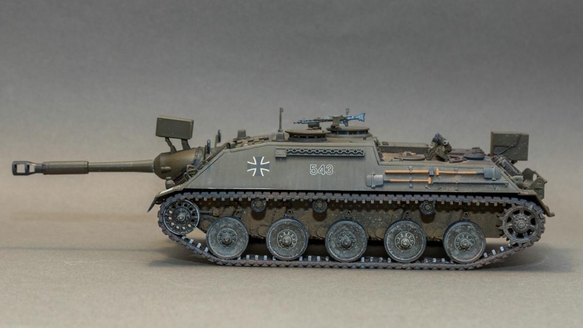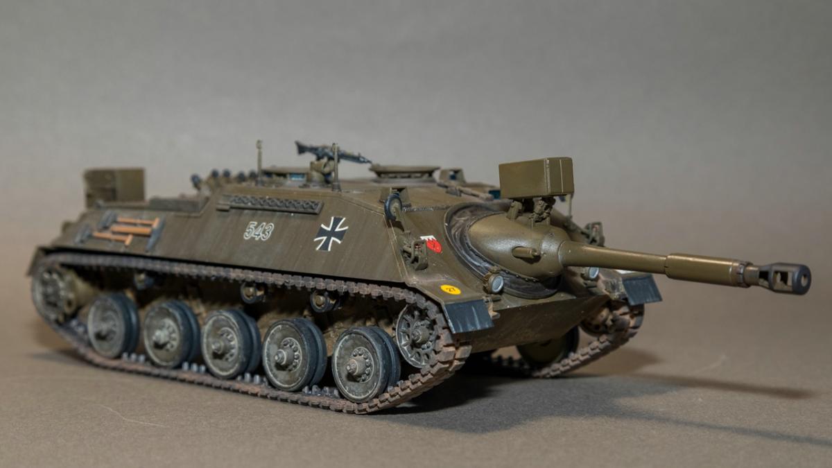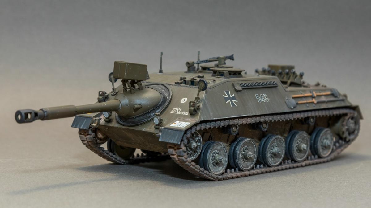 Представляю вашему вниманию свою очередную изкаропку - пока безальтернативную модель от компании "Revell" в 35 масштабе - САУ армии Бундесвера Kanonenjagdpanzer (KaJaPa).Модель достаточно старая и соответственно имеет множество "ошибок" в плане технологии производства. Само литье достаточно качественно, облоя, смещения прессформ и других дефектов - нет. Из дополнений к модели были использованы дымовые гранаты от Magic Model и точеный ствол от RB Model. Главным недостатком модели можно назвать виниловые гусеницы без характерного гребня - в оригинале гребень полый.Окраска - AK real color. Данную краску использовал в первые. Краска понравилась, но требует привыкания, кроме того у разбавителя для нее - резкий запах.Тонировка - химия AMMO, AK interactiv, Tamiya, МХПДекали соответствуют тактическому обозначению - 5 Panzergrenadierlehrbataillon 353. Hammelburg 1984 год.Как обычно буду признателен за конструктивную критику. P.S. В игре реализована версия с несуществующим орудием в 105мм. соответственно данная модель не попадает в категорию "Модели из WOT"