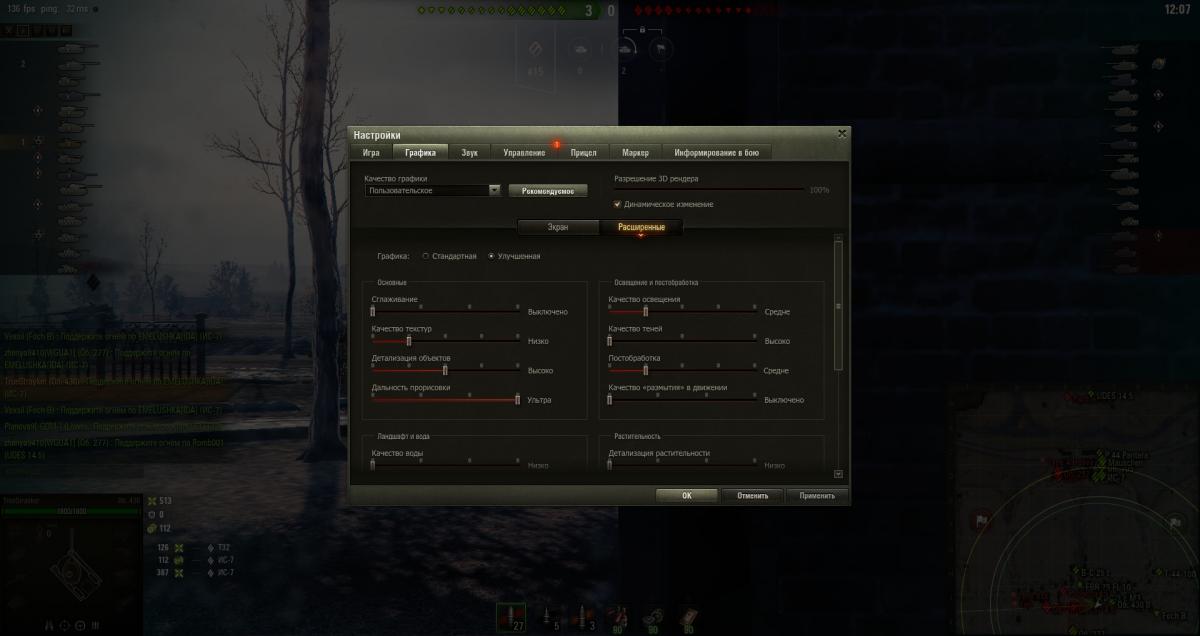 Вот такая у меня проблема - я ставлю графику на максимальную но ставится Пользовательская низкая графика... Видео карта - AMD Radeon HD 7800 Series Комп-Windows 7X64-bit Раньше всё работало отлично но после патча 1.3.0.2 вижу стоит низкая пытаюсь ставить Макс и вот опять пользовательская... что делать? обратится в поддержку не могу потому-что там нужно WGCheck а скачать его не смог причина: Вечная загрузка WarGaming.. Помоги Помоги Помоги Помоги Помоги Помоги Помоги Помоги Помоги Помоги Помоги