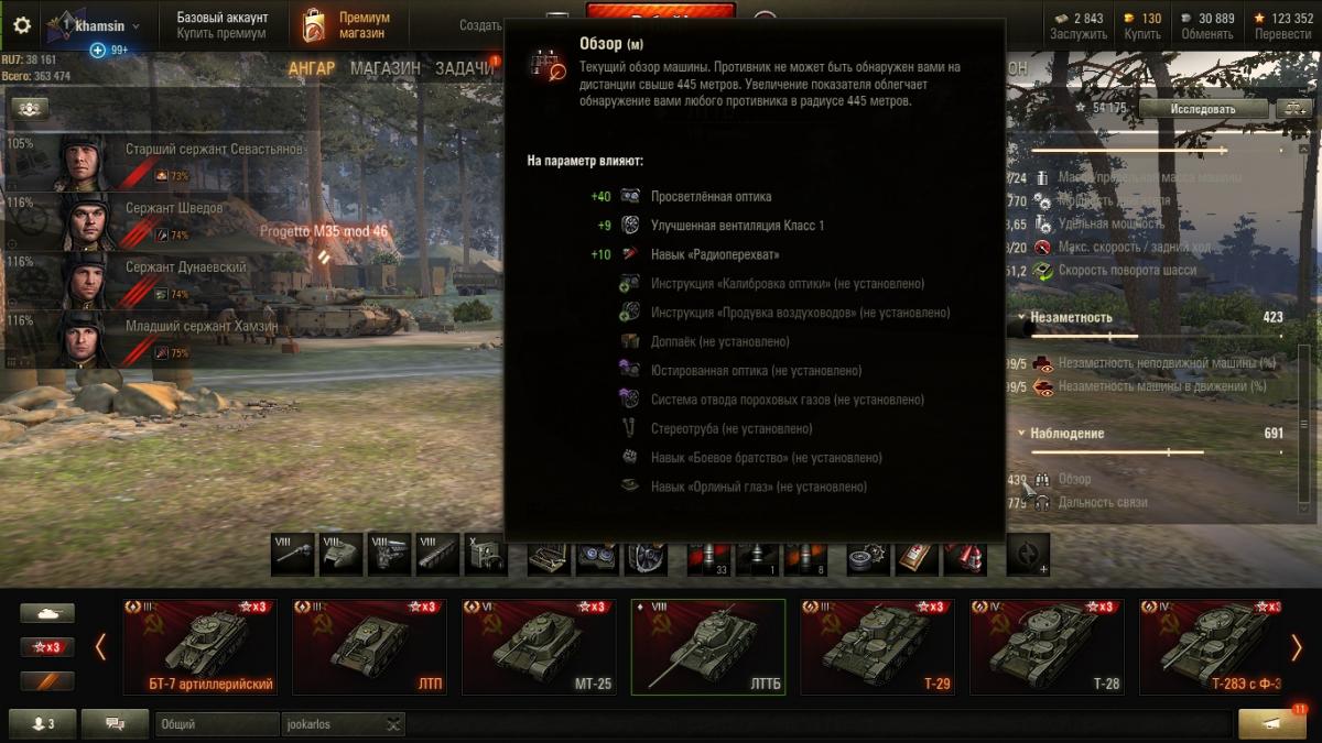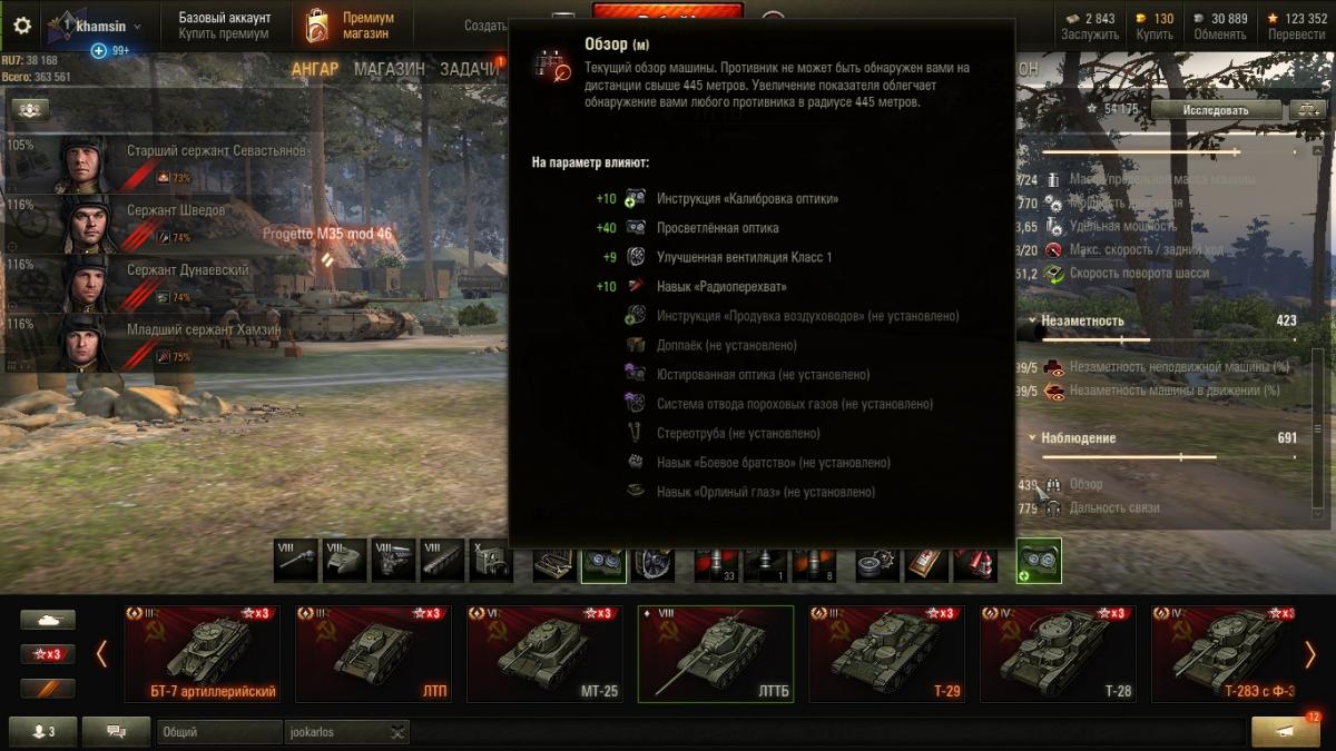 Всем доброго времени суток. Почитал по форумам, посмотрел пресловутое видео про маскировку, но остались вопросы: Максимальная дальность понятно что 445 метров, интересует другое - какие циферки у танков или их модулей сравнивать чтобы выбрать подходящего светляка. 1. Какой именно модуль вдияет на дальность обзора танка(засвета врага)? Рация, башня, орудие? Или модель самого танка? 2. В параметрах башен дальность указана. Если дальность определяется башней, то как быть с ПТ-САУ у которых башен нет. 3. Влияет ли уровень экипажа на дальность? Если да, то кого из экипажа именно? 4. Демаскируется ли танк при вращении башни? 5. Какие танки наиболее подходят для засвета и на основании опять же каких составляющих танка? Башни, орудия, рации или чего-то другого. Хотелось бы получить советы по модели танка для засвета (желательно с разьяснением почему именно данный так больше подходит). Заранее спасибо.