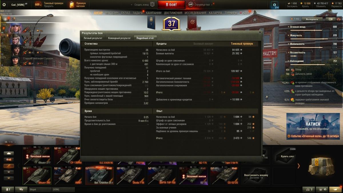 Обратил внимание, что за два боя в результатах боя в строке "Автопополнение снаряжения: -20000", хотя на складе имеется доппаёк.