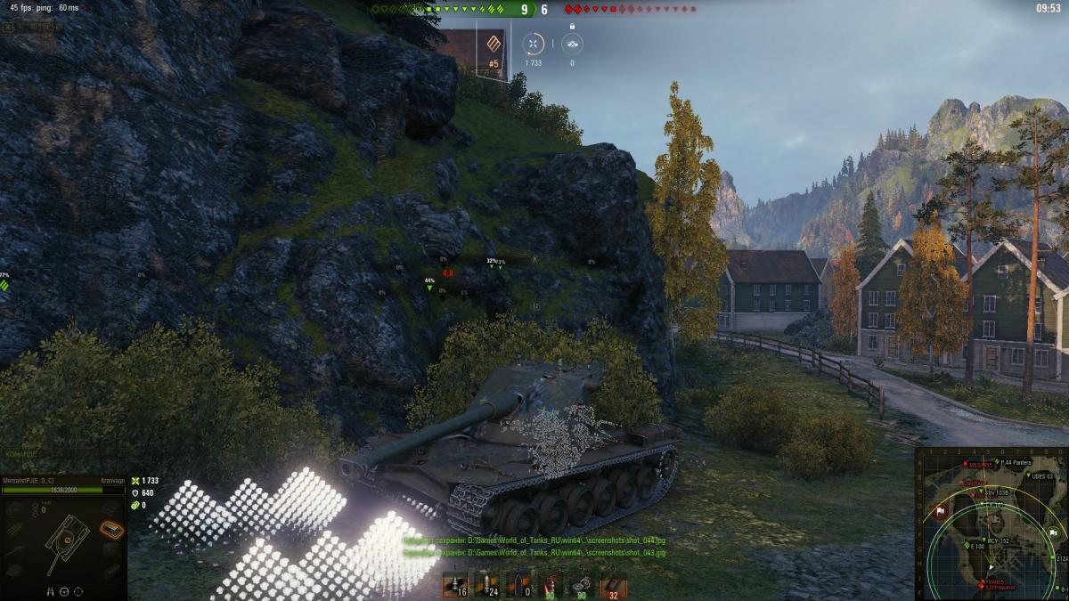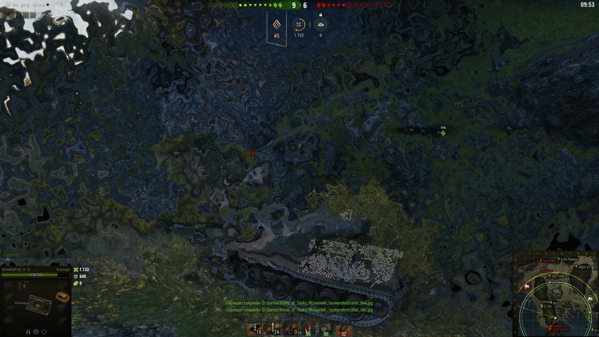 Добрый день! Возникли проблемы с FPS. В принципе, проблемы были и до 0.9.15. Во время боя проседает FPS, происходят микрофризы. Аддонов не установлено ни одного. http://s014.radikal.ru/i329/1606/b9/0d5da7fd0673.jpg Ставил минимальный настройки - фризы все равно остаются. От засвета врагов не зависит. Драйвер установлен последний. Железо хорошее. Комп чистил. Прошу помощи, проблема наблюдается относительно недавно. Может с 9.13 или 9.14. Но терпел. Проблема только в WoT. Документы прикреплены. DxDiag.txt python.log WoTLauncher.log WoTLauncher cfg.rar