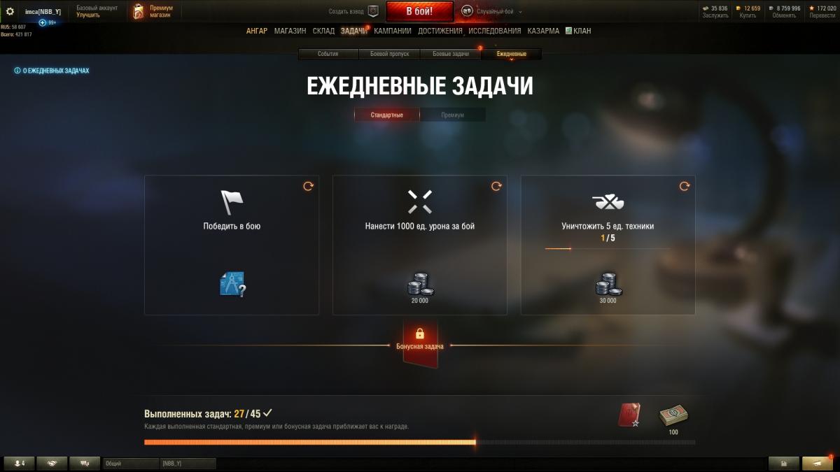 Добрый день! Почему ежедневные задания не меняются каждый день? Например, если не выполнил ежедневку, то она переходит на следующий день. И также в стальном охотнике. Как-то скучно каждый раз одни и те же 4 ежедневных задания делать: 12 тысяч урона, 3 фрага, 1 раз в топ 4 в соло, 3 раза в топ 8 соло. Вот например на скрине, сегодня не играл, отображается задача со вчера, которую не сделал. (Знать бы как ещё скрин прикрепить).