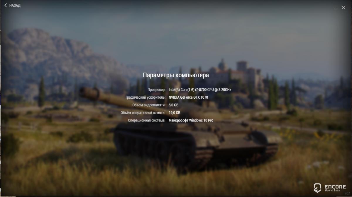 Здравствуйте! Столкнулся с проблемой долгой загрузки и зависания клиента игры (давно, с выходом 1.0, но пишу только сейчас). Устал уже не обращать на это внимания. Итак, вот суть проблемы: используя рекомендуемые настройки графики самой игрой или программой World of Tanks enCore после тестирования - игра долго грузится в бой, вход и вход в бой тоже долгий, как и вход в игру, мало того игра бывает тупо зависает и ничего не сделать, кроме перезапуска компьютера с кнопки "рестарт". Пробовал оптимизацию игры через GeForce Experience, но проблема та же. Железо практически топовое и с другими играми такого нет. К играм от ВГ претензий вроде нет, но только в к ВоТ их просто уйма, вагонные составы и маленькая тележка. Если кто-то скажет, что мол моды удали и будет тебе счастье, то отвечу - моды никогда не использую ибо они не нужны. WoT_report.wgc