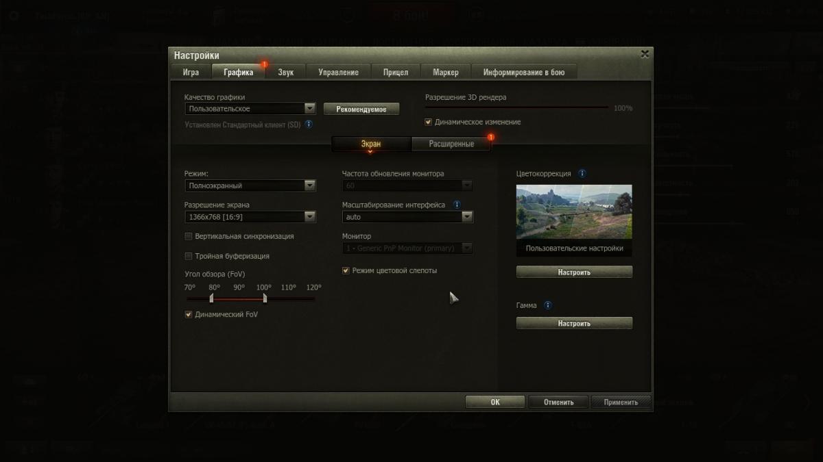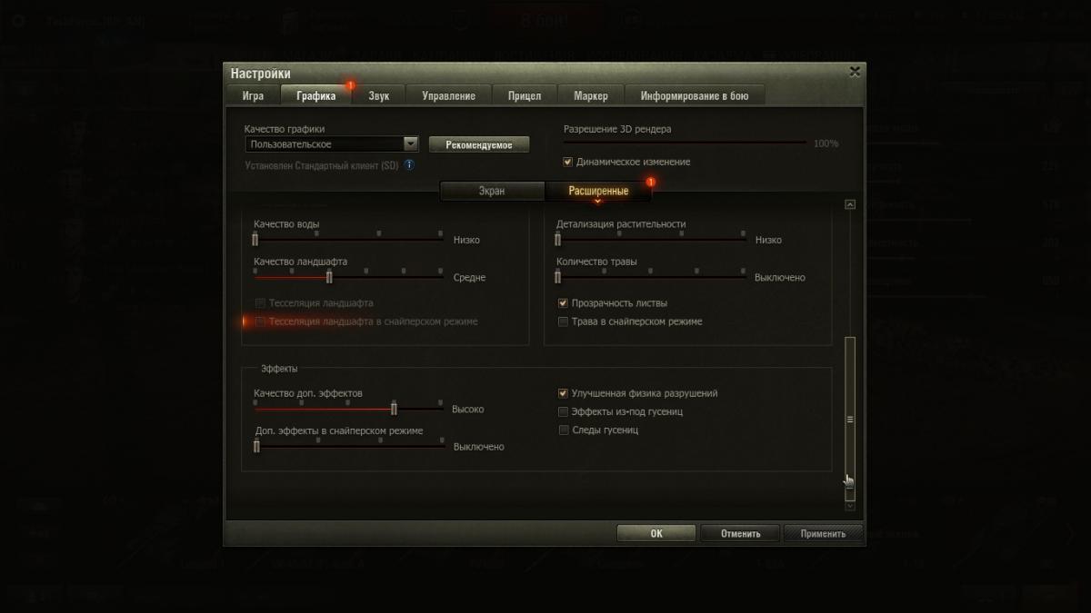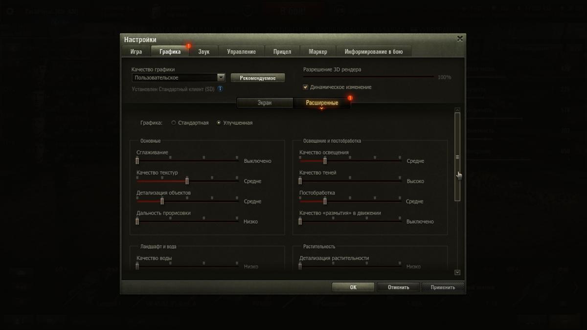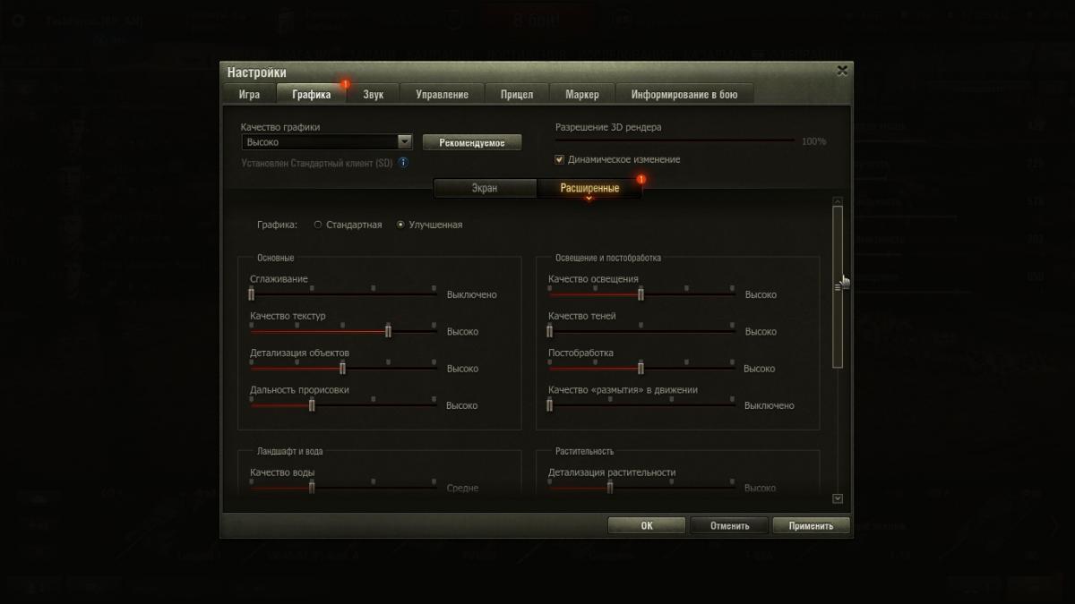 http://cdn-frm-eu.wargaming.net/wot/ru/uploads/monthly_03_2018/post-7100303-0-86106200-1521782628_thumb.jpghttp://cdn-frm-eu.wargaming.net/wot/ru/uploads/monthly_03_2018/post-7100303-0-20606400-1521782630_thumb.jpghttp://cdn-frm-eu.wargaming.net/wot/ru/uploads/monthly_03_2018/post-7100303-0-33244400-1521782631_thumb.jpghttp://cdn-frm-eu.wargaming.net/wot/ru/uploads/monthly_03_2018/post-7100303-0-29985000-1521782632_thumb.jpghttp://cdn-frm-eu.wargaming.net/wot/ru/uploads/monthly_03_2018/post-7100303-0-31163900-1521782633_thumb.jpghttp://cdn-frm-eu.wargaming.net/wot/ru/uploads/monthly_03_2018/post-7100303-0-45870400-1521782634_thumb.jpghttp://cdn-frm-eu.wargaming.net/wot/ru/uploads/monthly_03_2018/post-7100303-0-60578100-1521782635_thumb.jpghttp://cdn-frm-eu.wargaming.net/wot/ru/uploads/monthly_03_2018/post-7100303-0-80254100-1521782636_thumb.jpghttp://cdn-frm-eu.wargaming.net/wot/ru/uploads/monthly_03_2018/post-7100303-0-05138600-1521783817_thumb.jpghttp://cdn-frm-eu.wargaming.net/wot/ru/uploads/monthly_03_2018/post-7100303-0-68050800-1521783817_thumb.jpg Доброго утра, администрации форума! Вчера впервые зашел в игру после обновления. Мое почтение! Все великолепно, графика, освещение, эффекты снарядов, частицы... Да, я почти доволен, только проблемка вылезла, думаю решим м? По Вашим советам, обновил вчера до последний версии видеодрайвер (конечно все официально), почистил комп всевозможными утилитами, диски, мусор и т.п. При выходе в бой воникли трудности. Лучше один раз увидеть, я буду прилагать скриншоты, так проще, действия распишу по пунктам. 1. Зашел, дольше обычного жду "Обновление ангара" около 4-6 секунд. После каждого боя тоже. 2. В бой! И тут проблемы. (скрин 2) Ожидание не менее 20 сек. 3. Зашел, ну почти зашел. (скрин 3) Такая шутка около 3 сек. 4. Бывает и такое на 1-2 сек. Но редко. Как итог я захожу в бой примерно 10-30 секунде, как он уже начался. 5. Посмотрим на графику. Скрины 5,6,7. Это примерные настройки с которыми я играл. При таких настройках параметры fps до 1.0 = 65-75, после 1.0 = 50-80, в зависимости от карты. Я считаю, такой fps в пределах нормы более чем. , Хочу обратить внимание на редкие "фризы" в бою, машины может 2-4 раза за бой "зависнуть" на 1-3 сек. Ping = 4-18. 6. Ок, я решил пойти "Вашим" путем и в графике установил "рекомендуемые". И что я вижу - все выше моих установленных! Скрины 8,9. Ну тут вопрос очевиден, жду объяснений. 7. Все драйвера в норме, система чистая, сторонних программ в момент игры не активно. В данный момент переустанавливаю клиент. Модов не использую. Клиент SD. Никогда раньше проблем такого рода с игрой не было. Интернет быстрый, стабильный. 8. Возможно пригодяться параметры моей системы. Снимок(1). Вопрос на засыпку: Разрешение 3D рендера, насколько влияющий параметр на графику и на систему? Какие параметры для системы самые "тяжелые". Какие параметры отвечают в большей степени за эффекты взрывов, искры, попадания, дым. Спасибо за внимание. До связи.