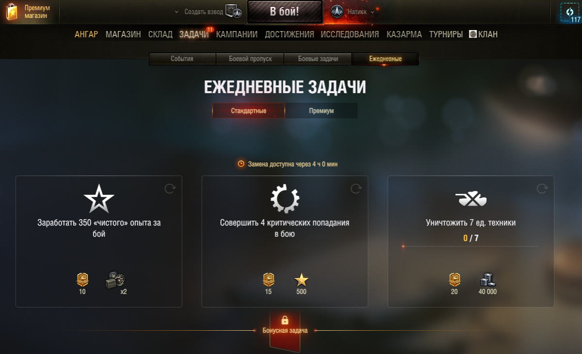Предлагаю переработать премиумные задачи: •1. Обнаружить 2 танка противника за бой.•2. За любое количество боёв нанести 5000 ед. урона. •3. Заработать 3500 ед. «чистого» опыта за любое количество боёв. Иногда нет возможности забрать победу по несколько и даже больше боёв. По итогу даже не можешь начать задачи и просто выходишь из игры. Предлагаю убрать рандомность и оставить только личный вклад игрока. Сильные игроки заберут награду быстро, а средние смогут за десяток боёв закрывать все задачи. Суть вся в том, что на одном любимом танке я забираю все награды, просто играя. Без горения и нервов. А самое главное, что игрок сможет рассчитывать на свое личное время. И сможет уже после работы или учёбы заскочить в игру, зная, что за час закроет все задачи.
