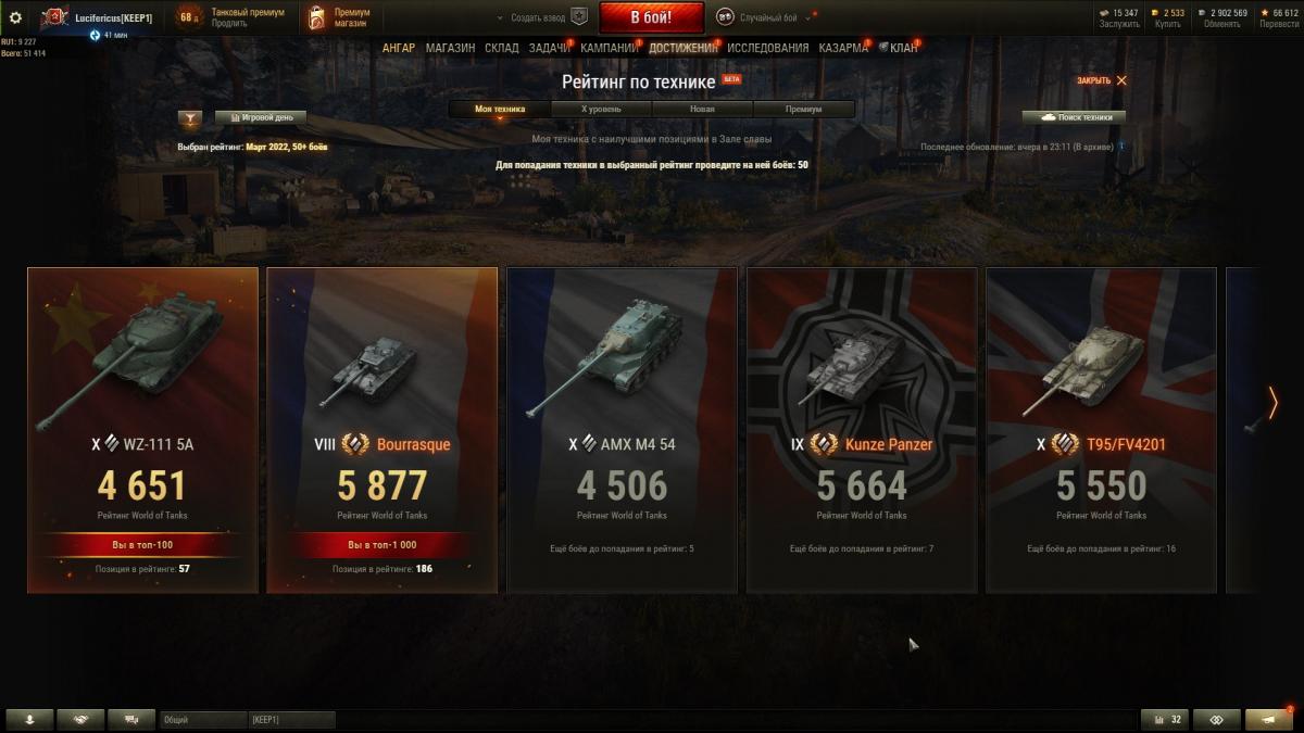 Может быть я не там смотрю, но где, например, в рейтинге Vz55, на котором я сыграл кучу боёв в последнее время? он даже через поиск не находится. и почему в разделе "новая техника" находится 60tp?