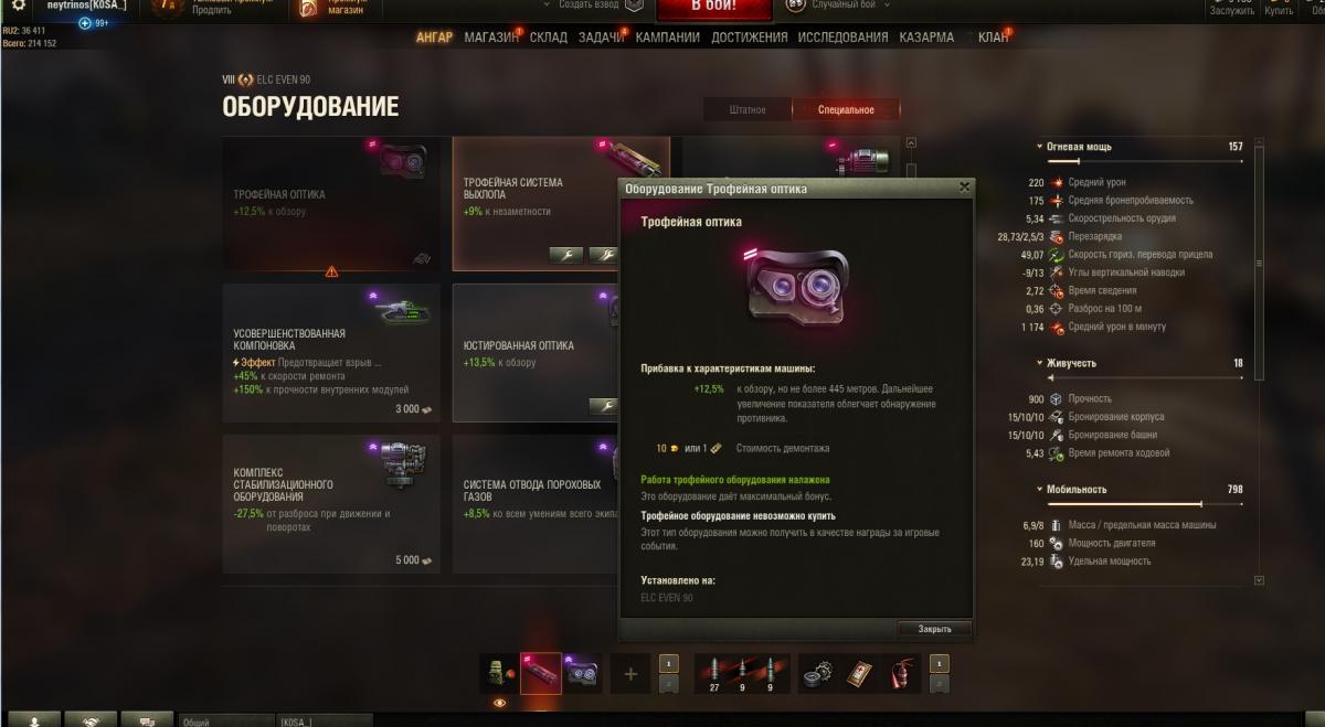 Добрый день, уважаемые форумчане! Встретил такую ошибку - заменил на елке оборудование - оптику с трофейной на боновую, в итоге боновая оптика установлена (скриншот), а статус трофейной все также "Установлено на ELC ...", на склад не выгружена, при попытке поставить на другую технику ее (трофейной) на складе просто нет. Встречал кто-нибудь? Не хочется терять трофейку, ибо денег стоит.