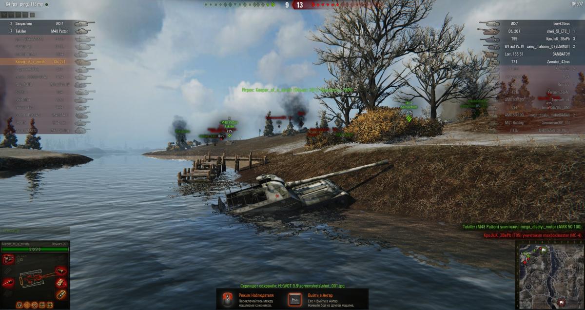 Итак, ситуация: Бой. Играю на многими презираемом типе техники, стою около воды, наша команда весело сливается, на меня едет вражеский ст, я стою на кд. Вражина пытается меня оттаранить в воду, я сдвигаюсь чуть в сторону и, получив обоюдный урон, мы оба уверенно скатываемся с обрыва в пруд, где успешно и отдаем концы от отсутствия воздуха. Все бы ничего, но..... Мне засчитали фраг. То есть я его затопил. А он меня нет. Хотя урон у нас при таране был обоюдный и изначально таранить начинал он. Я конечно не против, но непонятно как то..... Мож кто знает, почему так засчиталось? Реплей прилагаюhttp://wotreplays.ru/site/7453077#monastyr-kokoc199-lorraine_155_mle_50 Сори за неютуб ПЫС: Выяснил, что арта под водой не стреляет.