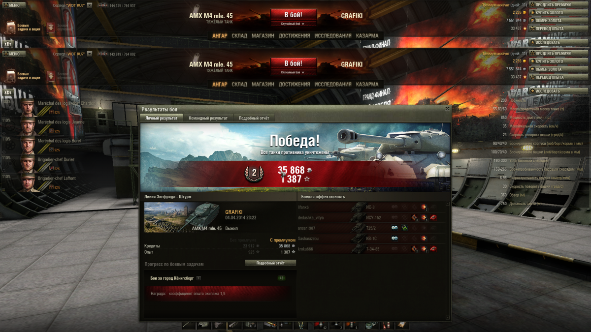 Тема такая - ключевая фраза для разработчиков, тупых троллей/школоту/качающих минусы на репутацию прошу не беспокоить. Бой закончили со счётом 14:8 захватом базы с нашей стороны, все 100% захвата набиты мною. Но! После боя, как обычно, вылетел с шестерёнкой под надписью "Синхронизация оборудования и снаряжения..." и т.к. она крутится минуты 2.5-3 и вылетает "Связь с сервером потеряна", обычно (и сейчас в том числе) вырубаю клиент сочетанием Alt+F4. Довольный медалькой "Захватчика", с радостью влетаю в игру и... Парадокс! см. скриншоты В статистике по танку (скрин 2) медаль не прописалась, а в достижениях экипажа (скрин 1) медаль есть! P.S. дополнение: кол-во боёв у экипажа превышает кол-во боёв на танке, т.к. экипаж пересаживал с AMX12t, НО на других танках его не было. на всякий случай отскринил статистику и на 12t (скрин 3). Вывод: Как так получается? P.P.S. игру перезагружал 3 раза P.P.P.S. особо умных, не прочитавших предложение 1 и орущих, мол "очередной нытик без медальки", прошу перечитать предложение 1 С уважением ко всем хорошим, bygaga_gyg