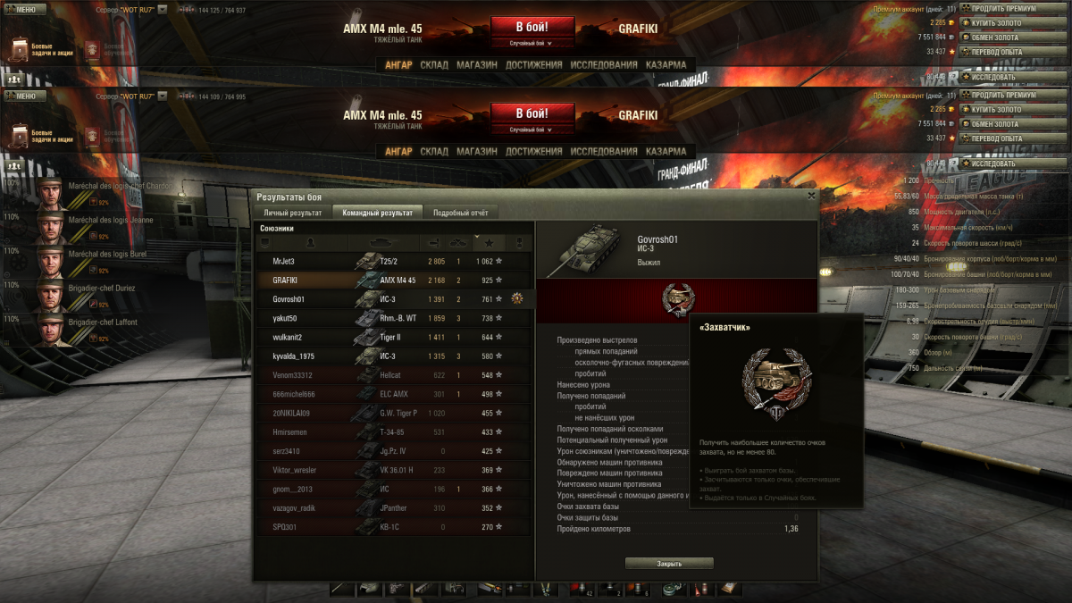 Доброго! Не подскажите, почему не начислена медаль "Захватчик" в бою с победой захватом базы на 100%? Остальные результаты(урон и т.п.) раковые,не спорю,так получилось) . 2 скриншота прилагаю. За адекватный ответ спасибо!