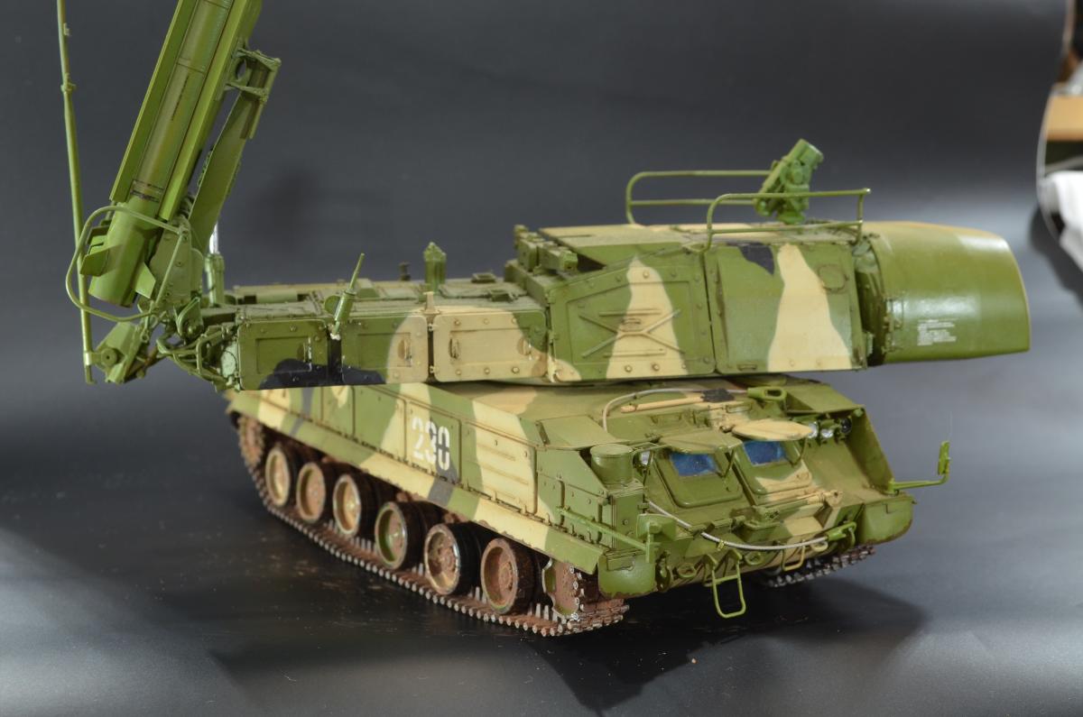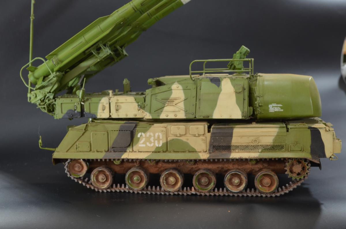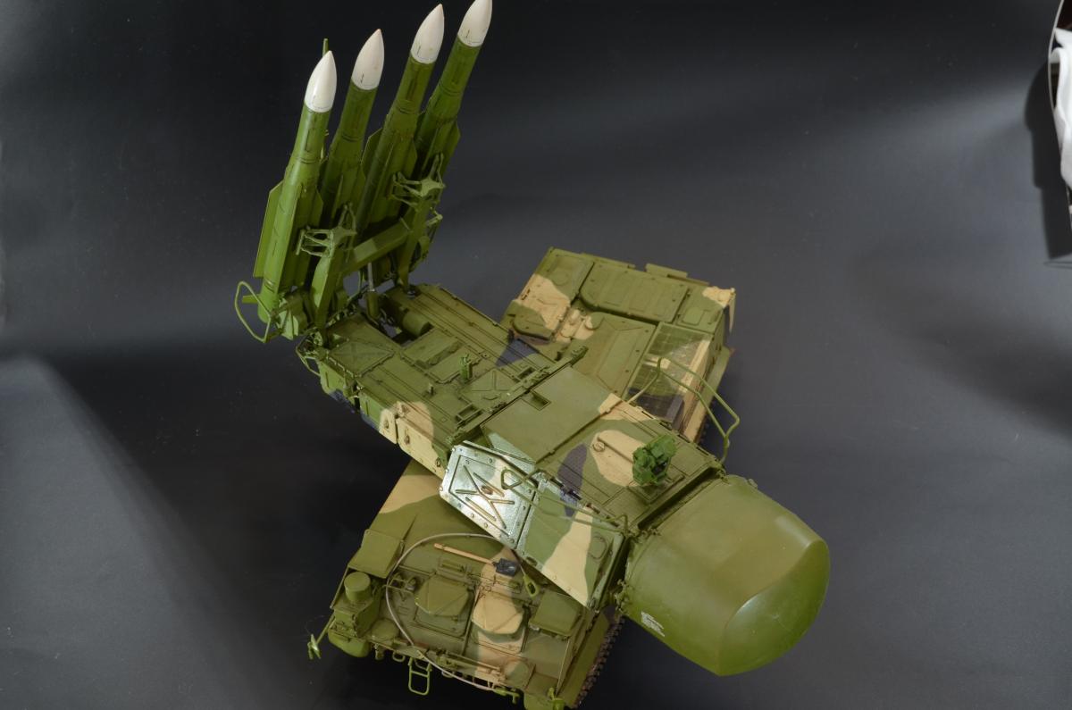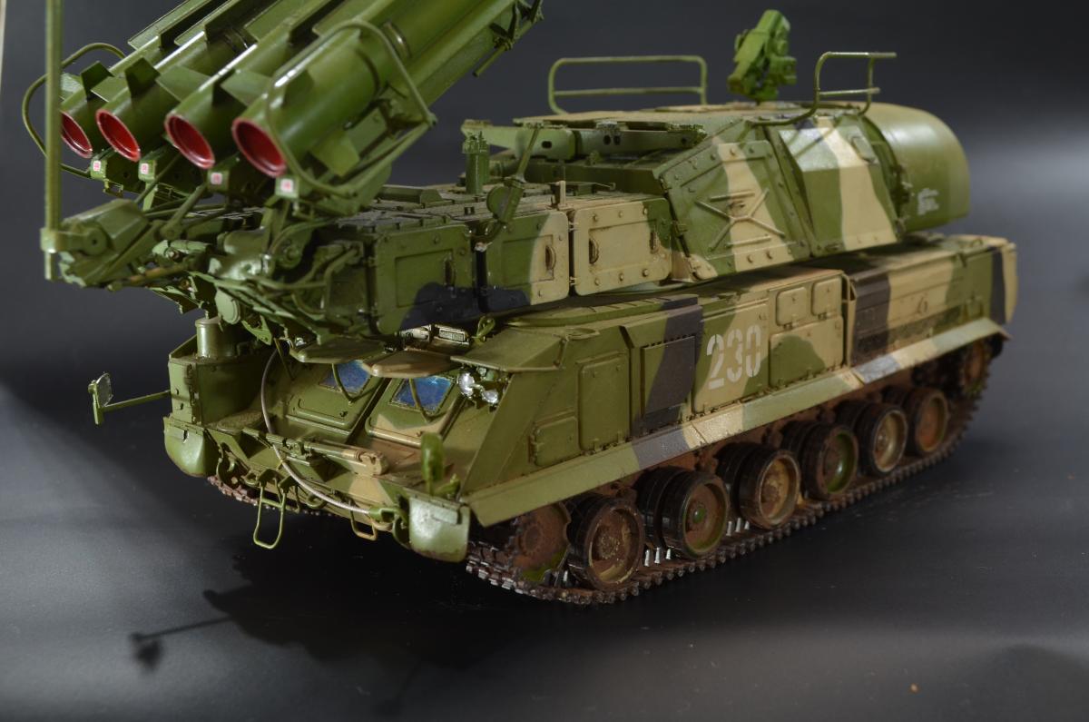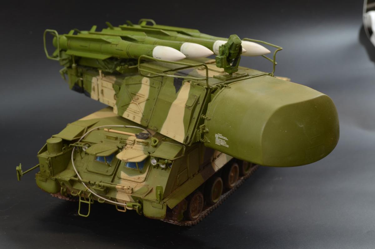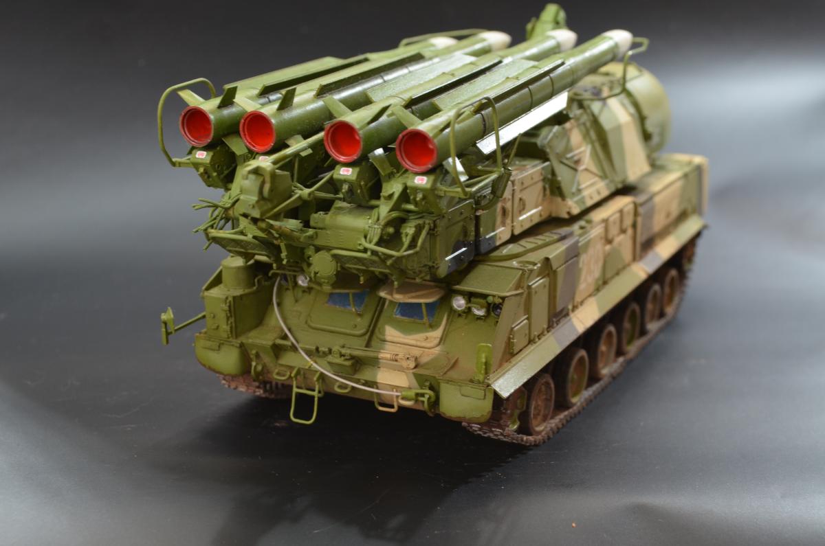 «Бук» (индекс ГРАУ — 9К37, по кодификации МО США и НАТО — SA-11 Gadfly, англ. овод) и его модификации — самоходный зенитный ракетный комплекс (ЗРК), предназначенный для борьбы с маневрирующими аэродинамическими целями на малых и средних высотах (от 30 метров до 14—18 километров) в условиях интенсивного радиопротиводействия. 13 января 1972 года по правительственному постановлению СССР были начаты работы над новым ЗРК 9К37 (или «Бук» на замену комплексу 2К12 (или «Куб». Головным разработчиком комплекса был назначен Научно-исследовательский институт приборостроения имени В. В. Тихомирова под руководством главного конструктора А. А. Растова. Принять на вооружение ВС Союза ССР комплекс планировалось в 1975 году, для ускорения работ принятие на вооружение было решено разделить на два этапа. Первый этап предусматривал введение в состав комплекса 2К12 «Куб-М3» самоходной огневой установки 9А38 с ракетами 9М38 в каждую батарею. В таком виде в 1978 году на вооружение был принят ЗРК 2К12М4 «Куб-М4». Второй этап предполагал полное принятие всего комплекса в составе станции обнаружения 9С18, командного пункта 9С470, самоходной огневой установки 9А310, пуско-заряжающей установки 9А39 и ЗУР 9М38. Совместные испытания комплекса были начаты на полигоне Эмба в ноябре 1977 года и продолжались до марта 1979 года, после чего комплекс в полном составе был принят на вооружение. Окраска краской Пацифик, из дополнений травление Микродизайн, трос