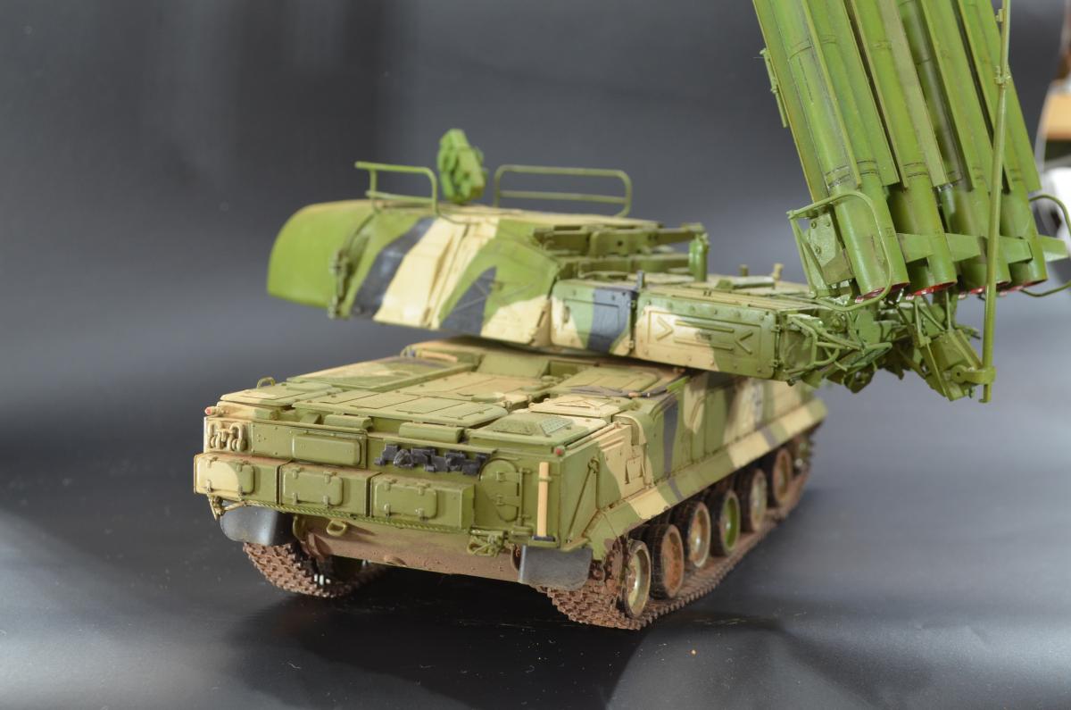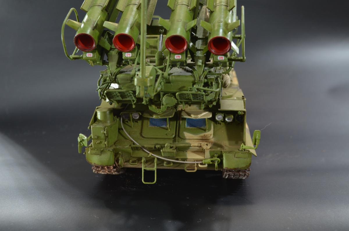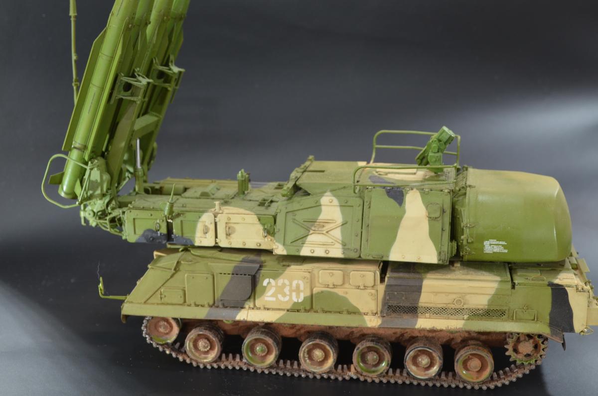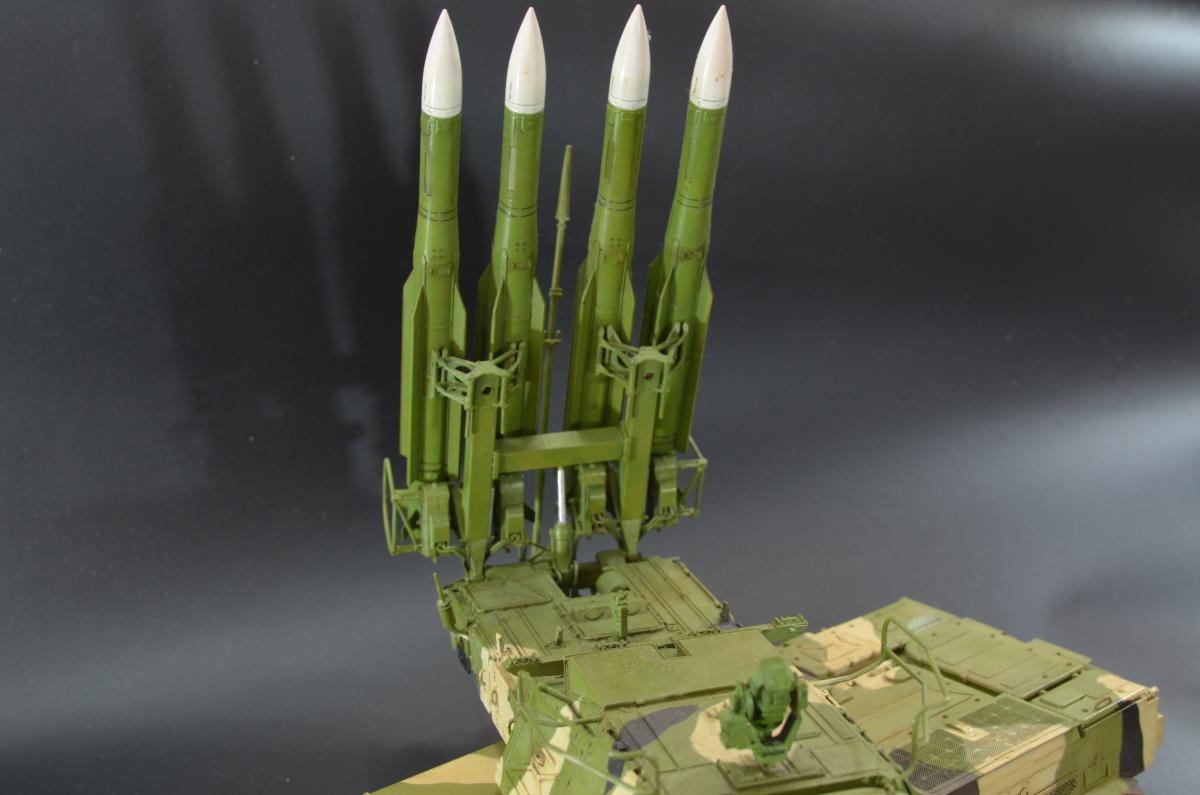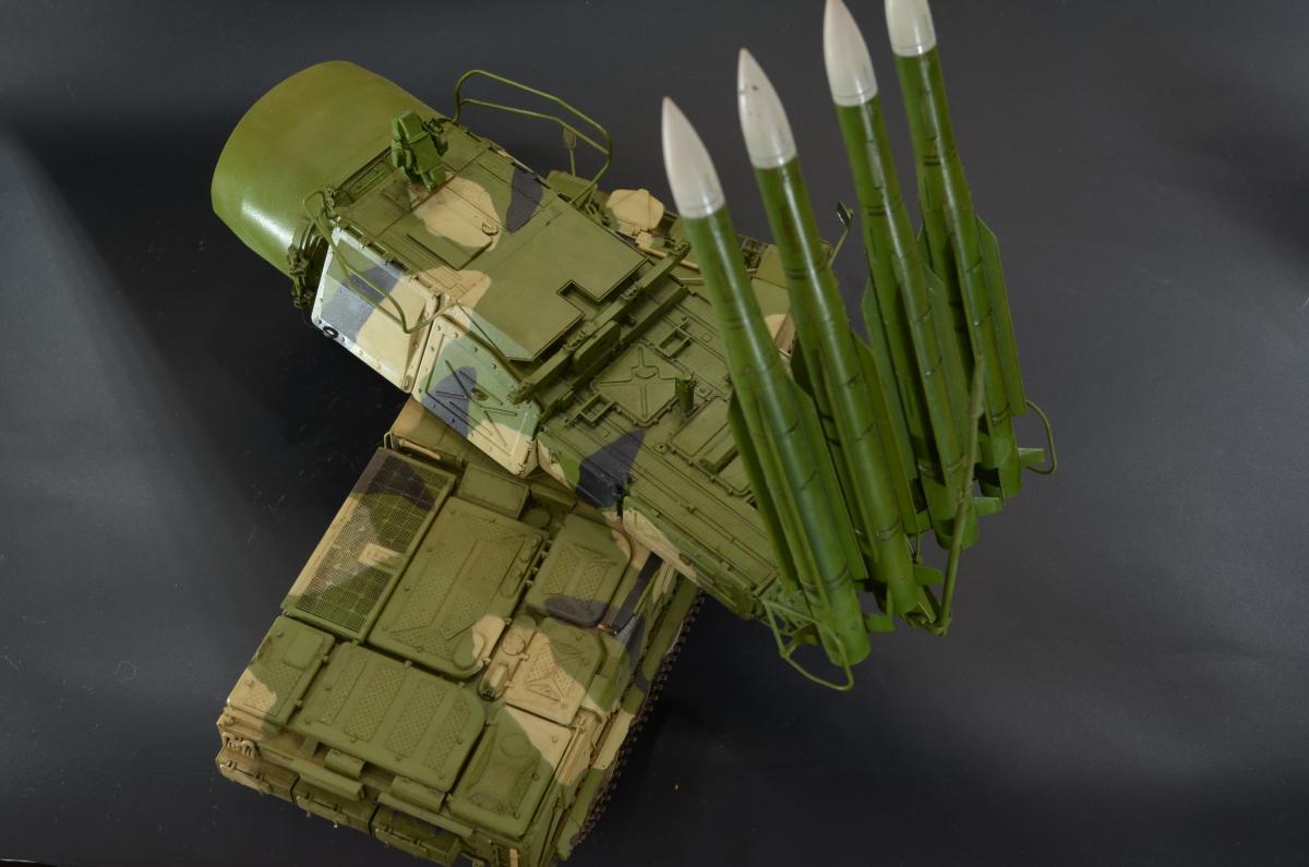 «Бук» (индекс ГРАУ — 9К37, по кодификации МО США и НАТО — SA-11 Gadfly, англ. овод) и его модификации — самоходный зенитный ракетный комплекс (ЗРК), предназначенный для борьбы с маневрирующими аэродинамическими целями на малых и средних высотах (от 30 метров до 14—18 километров) в условиях интенсивного радиопротиводействия. 13 января 1972 года по правительственному постановлению СССР были начаты работы над новым ЗРК 9К37 (или «Бук» на замену комплексу 2К12 (или «Куб». Головным разработчиком комплекса был назначен Научно-исследовательский институт приборостроения имени В. В. Тихомирова под руководством главного конструктора А. А. Растова. Принять на вооружение ВС Союза ССР комплекс планировалось в 1975 году, для ускорения работ принятие на вооружение было решено разделить на два этапа. Первый этап предусматривал введение в состав комплекса 2К12 «Куб-М3» самоходной огневой установки 9А38 с ракетами 9М38 в каждую батарею. В таком виде в 1978 году на вооружение был принят ЗРК 2К12М4 «Куб-М4». Второй этап предполагал полное принятие всего комплекса в составе станции обнаружения 9С18, командного пункта 9С470, самоходной огневой установки 9А310, пуско-заряжающей установки 9А39 и ЗУР 9М38. Совместные испытания комплекса были начаты на полигоне Эмба в ноябре 1977 года и продолжались до марта 1979 года, после чего комплекс в полном составе был принят на вооружение. Окраска краской Пацифик, из дополнений травление Микродизайн, трос