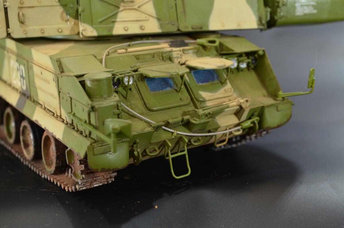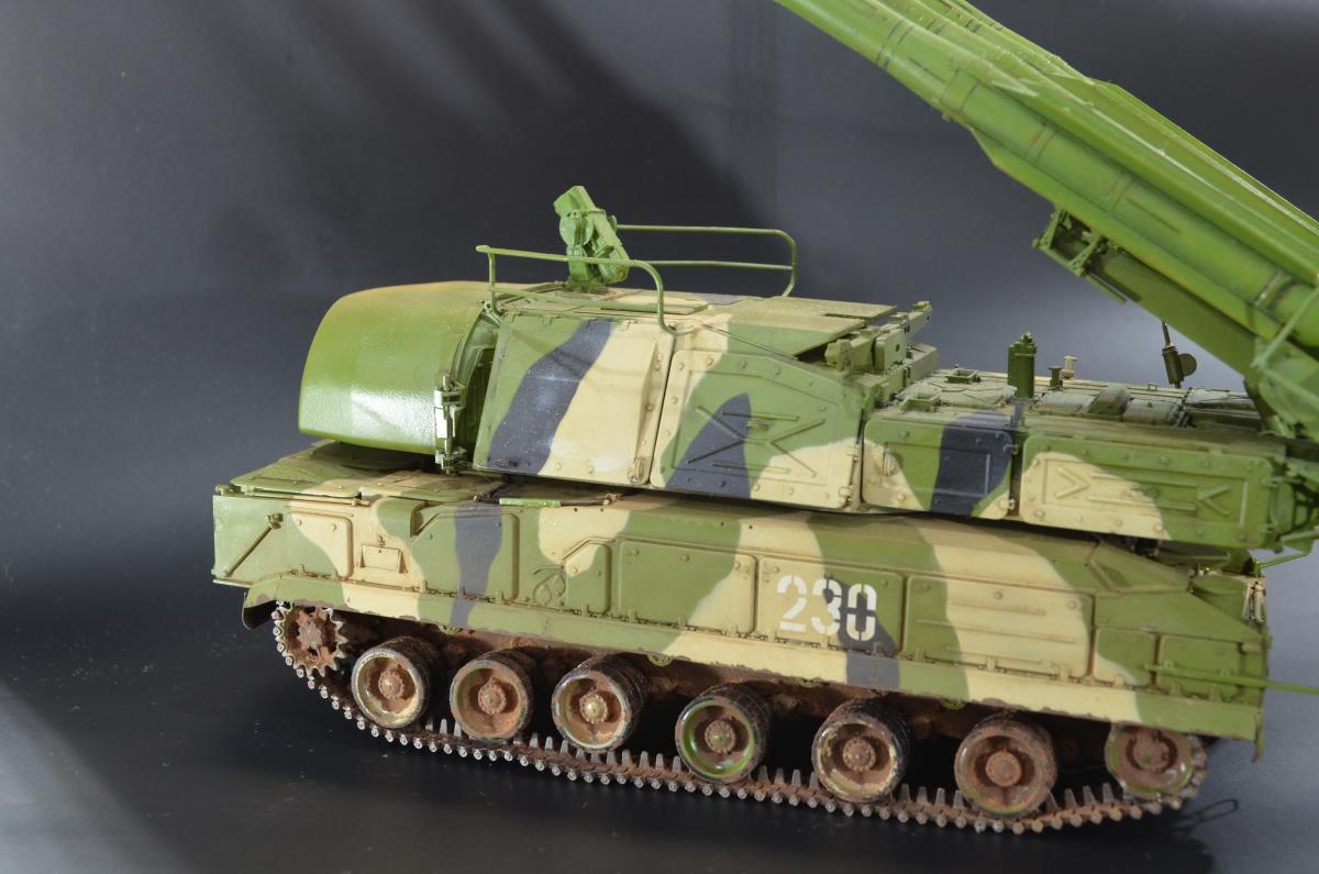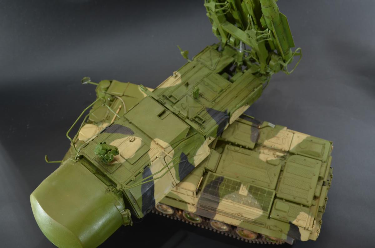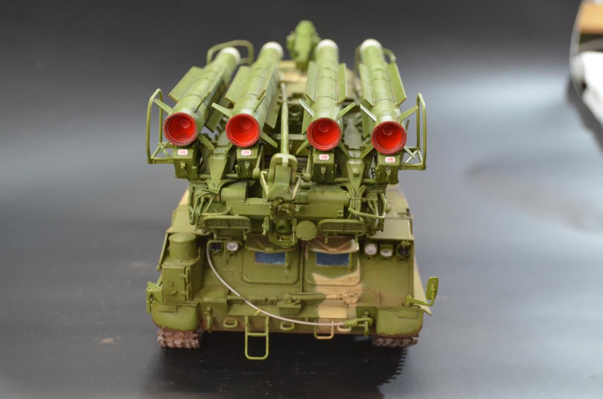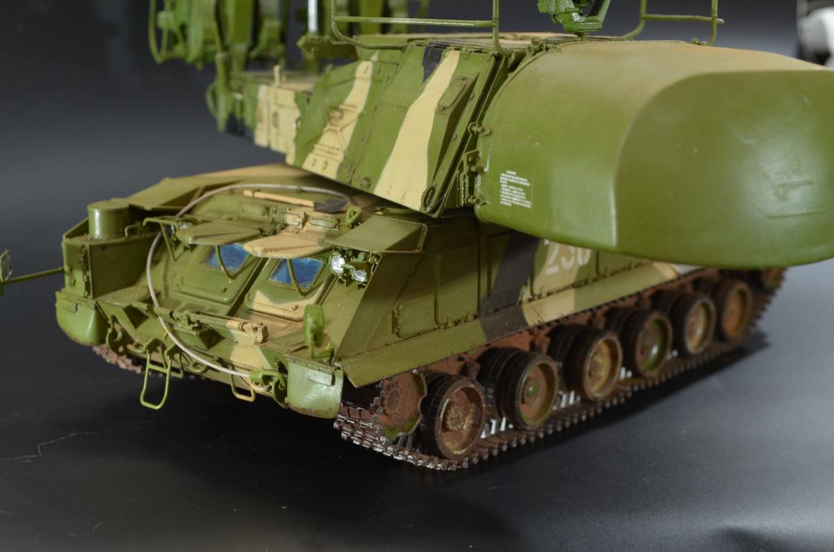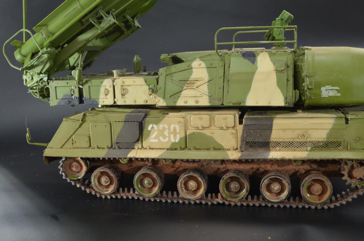«Бук» (индекс ГРАУ — 9К37, по кодификации МО США и НАТО — SA-11 Gadfly, англ. овод) и его модификации — самоходный зенитный ракетный комплекс (ЗРК), предназначенный для борьбы с маневрирующими аэродинамическими целями на малых и средних высотах (от 30 метров до 14—18 километров) в условиях интенсивного радиопротиводействия. 13 января 1972 года по правительственному постановлению СССР были начаты работы над новым ЗРК 9К37 (или «Бук» на замену комплексу 2К12 (или «Куб». Головным разработчиком комплекса был назначен Научно-исследовательский институт приборостроения имени В. В. Тихомирова под руководством главного конструктора А. А. Растова. Принять на вооружение ВС Союза ССР комплекс планировалось в 1975 году, для ускорения работ принятие на вооружение было решено разделить на два этапа. Первый этап предусматривал введение в состав комплекса 2К12 «Куб-М3» самоходной огневой установки 9А38 с ракетами 9М38 в каждую батарею. В таком виде в 1978 году на вооружение был принят ЗРК 2К12М4 «Куб-М4». Второй этап предполагал полное принятие всего комплекса в составе станции обнаружения 9С18, командного пункта 9С470, самоходной огневой установки 9А310, пуско-заряжающей установки 9А39 и ЗУР 9М38. Совместные испытания комплекса были начаты на полигоне Эмба в ноябре 1977 года и продолжались до марта 1979 года, после чего комплекс в полном составе был принят на вооружение. Окраска краской Пацифик, из дополнений травление Микродизайн, трос