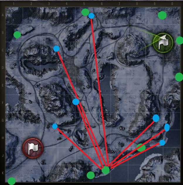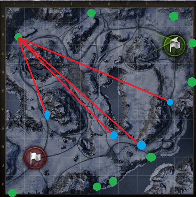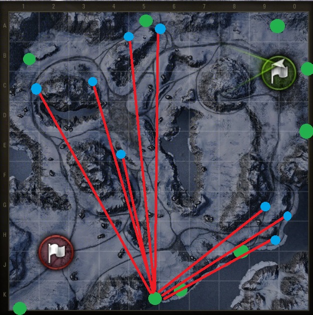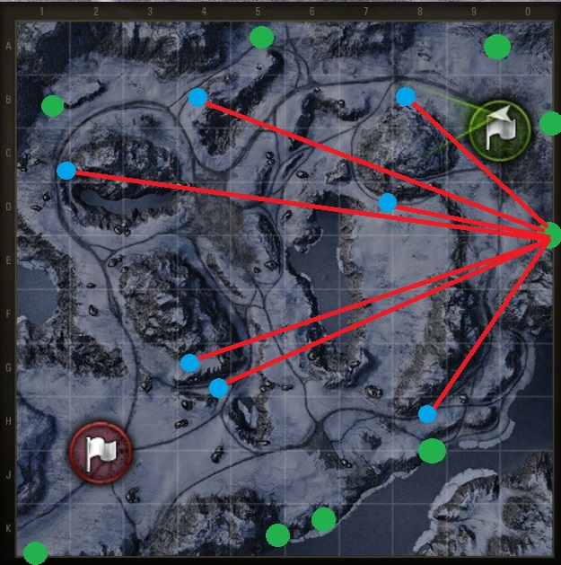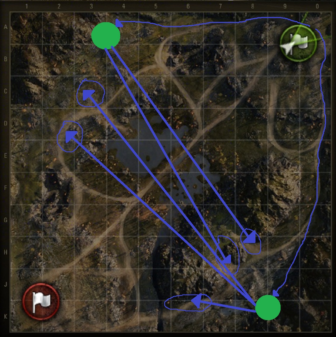 Всем привет, танкисты! Мой ютуб-канал, подписывайтесь: http://www.youtube.com/c/aBaPu9lMo3ra Давненько я хотел написать большую статью про такой класс техники в игре как АРТИЛЛЕРИЯ! Рассказать о тактике ведения боя, о выборе целей, о прицеливании, разобрать карты, показать точки, с которых лучше вести артиллерийский огонь в тот или иной квадрат карты, и многое другое! Ну вот, собственно, я дозрел для написания подобного материала. А посему, запасайтесь огнетушителями артохейтеры, радуйтесь артоводы, и приготовьте попкорн все остальные, ведь мы приступаем к прочтению, просматриванию и усваиванию нереально огромного количества материала, подготовленного специально для вас профильным артоводом, то бишь мной Обзор игры на САУ хочется начать с небольшого вступления, посвящённого вечному спору, стоит ли играть на арте, и вообще, нужна ли артиллерия в игре как класс! Ниже будет высказано МОЁ ЛИЧНОЕ МНЕНИЕ по данным вопросам и спорам, оно может отличаться от вашего, сколько людей – столько мнений Я считаю, что артиллерия как класс техники необходима в игре, иначе баланс игры будет нарушен. Многие знают «круговорот техники в игре»: ПТ гоняет ТТ, ТТ гоняет СТ, СТ гоняет ЛТ, ЛТ гоняет САУ, САУ гоняет ПТ. Убираем любой из классов техники и получаем нарушение баланса. Единственная поправка, которую хочется внести в действующий баланс в игре, так это уменьшение количества арты в боях, а именно, ограничить количество арты в рандомных боях до двух штук. Ограничить можно и до одной арты, будет вообще отлично, но тогда плакала взводная игра на двух артах! Поэтому считаю целесообразным остановиться на двух артах в бою. Теперь по поводу вечного недовольства игроков, которые в прямом смысле слова ноют и некрасиво высказываются в адрес тех, кто любит кататься на артиллерии, говорят про несложный геймплей, одна кнопка и т.п. Ребята, давайте уясним главное: это ИГРА, каждый играет на том, на чём ему нравится, на чём он больше расслабляется и т.п. Или, может, вы предлагаете другим игрокам играть на той технике, которая нравится больше именно вам?)) Если геймлей на арте несложный, всё легко и просто, то сядьте на неё и покажите, на что способны, а мы посмотрим. Часто вижу игроков, которые сетуют на несложный геймплей, на одну кнопку, а сами даже 1800 среднего дамага на десятой арте держать не могут. Давайте от вступления перейдём непосредственно к самой артиллерии, к тонкостям игры на ней, к разбору карт, к тактике ведения боя, к ваншотам, к тому, что мы очень любим, сидя на арте в кустиках! Я не первый раз пишу в своей жизни подобные статьи, поэтому привык к определённому стилю изложения информации, люблю рисовать всякие картинки, подтверждать слова фактами, включать логику при разборе игровых ситуаций и т.п. Поэтому с вашего позволения и с благословления всемогущего ВБР я приступаю к рассмотрению первого раздела нашей статьи под названием «Живи до конца!» Живи до конца!Что же мне хочется рассказать вам, друзья-артиллеристы, в данном разделе моей статьи… А хочется рассказать вам очень многое, объяснить вам главную суть данного раздела, чтобы вы поняли, что артиллерия – это такой класс техники, который должен жить и дамажить, жить настолько долго, насколько позволяет это игровая ситуация. Ведь суть игры на арте сводится не просто к тому, чтобы стоять в кустике и жать одну кнопку до тех по