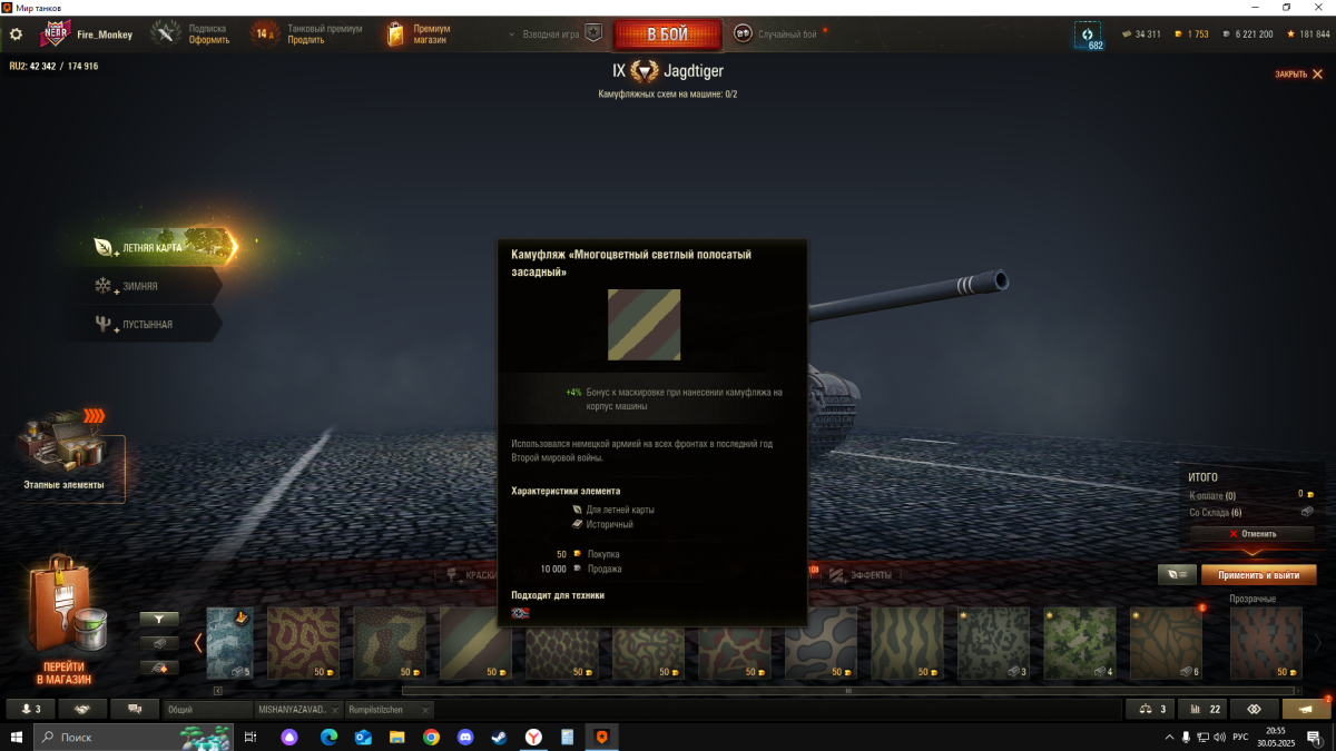 1. За выполнение ежедневных задач получил (вроде как) камуфляж "золото". 2. Про него мне известно, что он неисторичный, и что достигнут IV уровень чего-то, и что это особая камуфляжная схема. Вопрос: где его можно посмотреть, как и на что его можно натянуть? Нигде не могу найти, кроме как в табличке ежедневных наград, но там только то, что написал в п. 2.