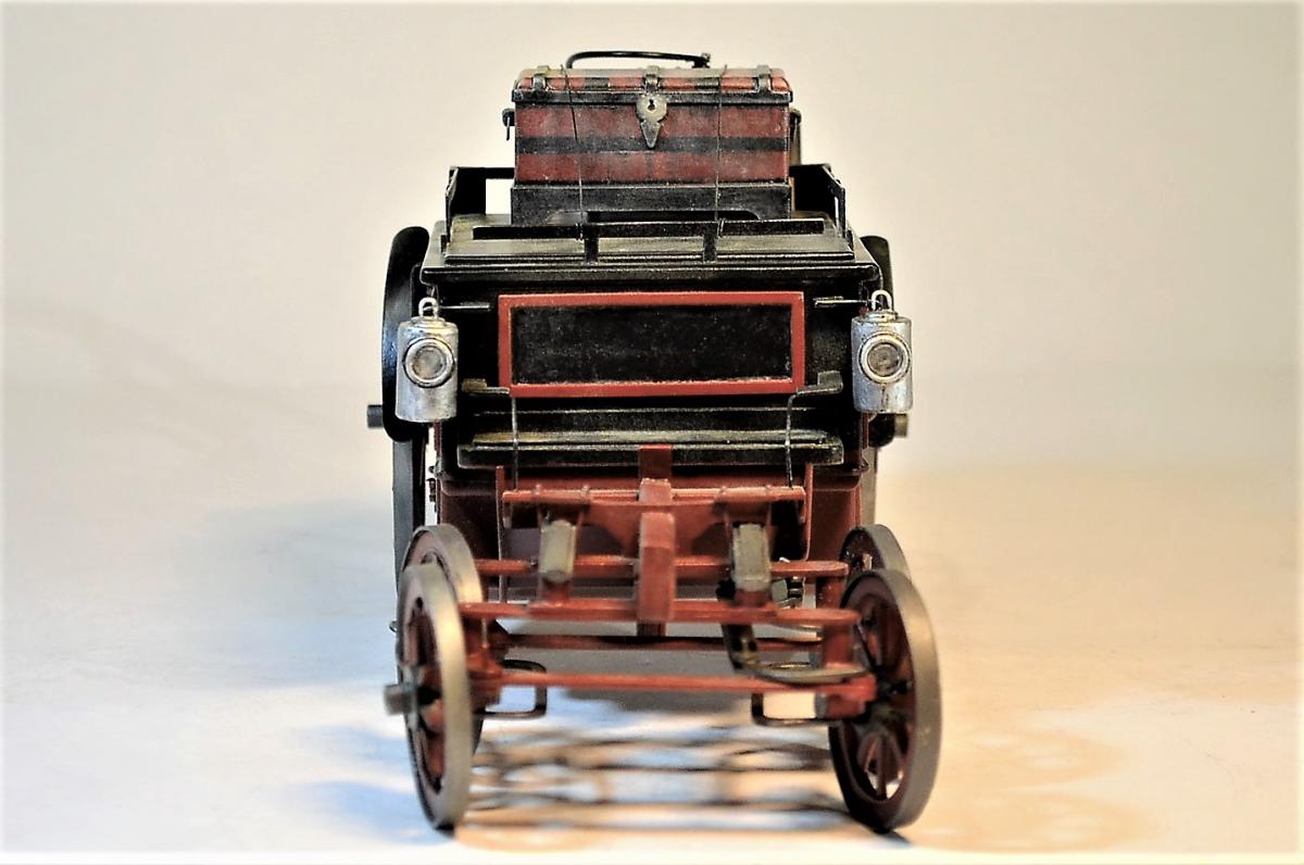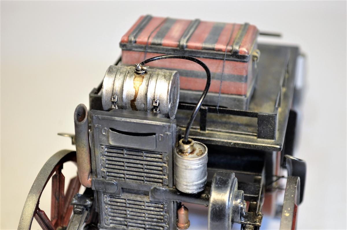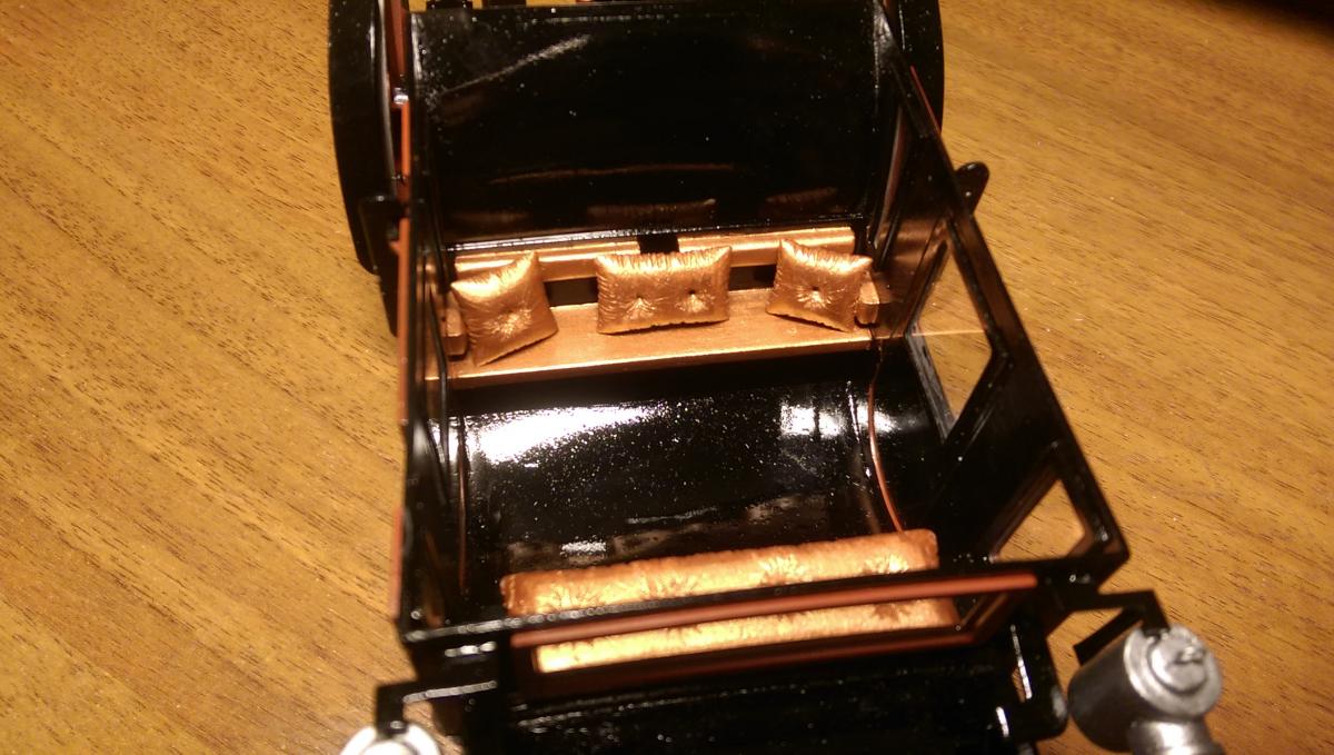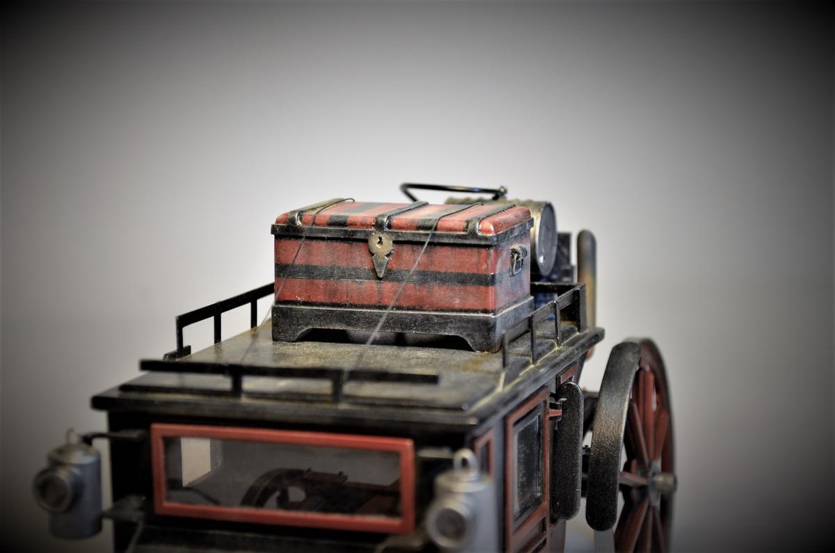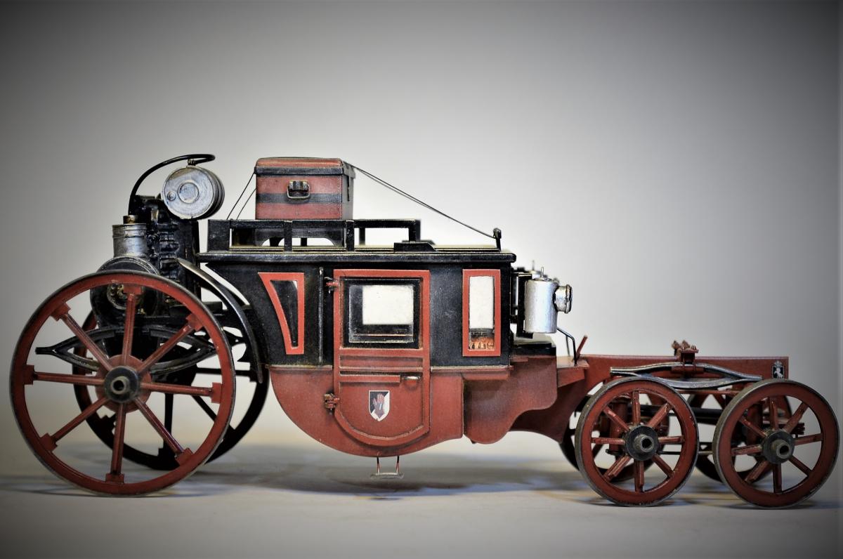 Здравствуйте, ребят! На данный момент, считаю, проект по карете оконченным. Больше мне в него привнести нечего (ну только если шторки когда-нибудь навешу на окна). Кратенько по стройке. Проект является полнейшей импровизацией, от идеи до наброска чертежей прошло где-то 2-3 дня. Основная идея заключалась в создании аппарата, внешне напоминающего карету, но по сути являющегося машиной с двигателем внутреннего сгорания. Также была установка создать у данного аппарата механизм поворота колес по-автомобильному, а не осью, как у повозок, карет и телег. Сборка и доведение до конечного результата заняли примерно1.5 месяца. Самопильной работу можно назвать на 95% (в качестве изготовления двигателя использовались части от сторонней заводской модели + баки), все остальное, в том числе и колеса, вырезались и доводились вручную. Модель собиралась из пластика (основной - Тамия, прозрачный - Аврора). Краски, лаки - Тамия, пигменты - Тамия и ZIP maket , также попробовал новый аэрозольный матовый лак Painter's Touch 2X (matte, clear), который показал себя с лучшей, на мое счастье, стороны (вдвое дешевле Тамии, вдвое быстрее сохнет, ложится однородно, без брызг, практически не пахнет - рекомендую). Более подробно по сборке здесь. За сим, разрешите откланяться. Надеюсь, проект вам понравится. Всем удачи.