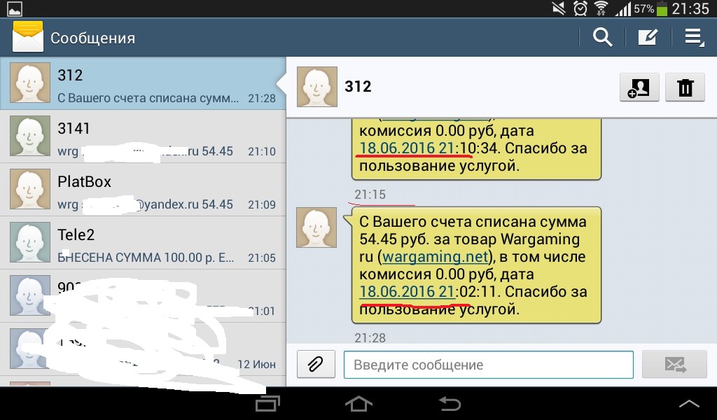 вообще закинул себе денег на теле2 и решил оплатить прем акк на сутки зашел на сайт.у меня там уже номер введен все как положено ( иногда подключаю прем акк)нажал оплатить че то движения нету и нету 2 боя сыграл и и нету прем акк. ладно нажал получить шаблонhttp://cdn-frm-eu.wargaming.net/wot/ru/uploads/monthly_06_2016/post-22538434-0-65011700-1466276009_thumb.pngпришел шаблонhttp://cdn-frm-eu.wargaming.net/wot/ru/uploads/monthly_06_2016/post-22538434-0-13054600-1466276256_thumb.jpg я беру копирую текст и отправляюhttp://cdn-frm-eu.wargaming.net/wot/ru/uploads/monthly_06_2016/post-22538434-0-08666500-1466276341_thumb.jpg приходит запрос я его подтверждаю .и жду мне приходит http://cdn-frm-eu.wargaming.net/wot/ru/uploads/monthly_06_2016/post-22538434-0-82317000-1466276438_thumb.jpg.первое смс это прем акк пришел через минимум 18 мин а второе пришло 248 голды вместо должного прем акка. и теперь не хватает 2 голды и теперь заново надо донатить .хотя раньше всегда все было норма как бы я не платилhttp://cdn-frm-eu.wargaming.net/wot/ru/uploads/monthly_06_2016/post-22538434-0-46719600-1466276618_thumb.jpg щас у меня в ангаре такhttp://cdn-frm-eu.wargaming.net/wot/ru/uploads/monthly_06_2016/post-22538434-0-76385400-1466276837_thumb.jpg.все оригиналы фото могу прислать .только обидно что в такой типо "игре " еще и обманывают