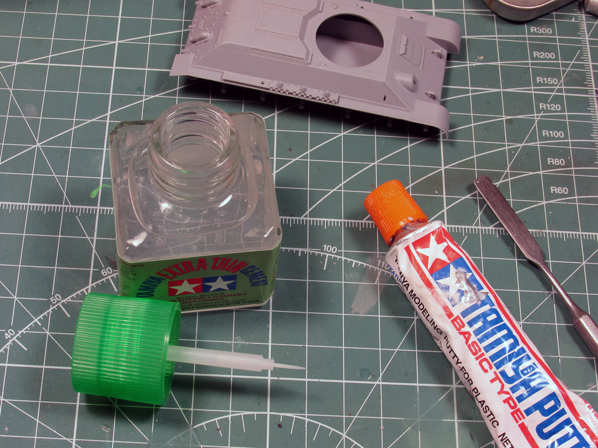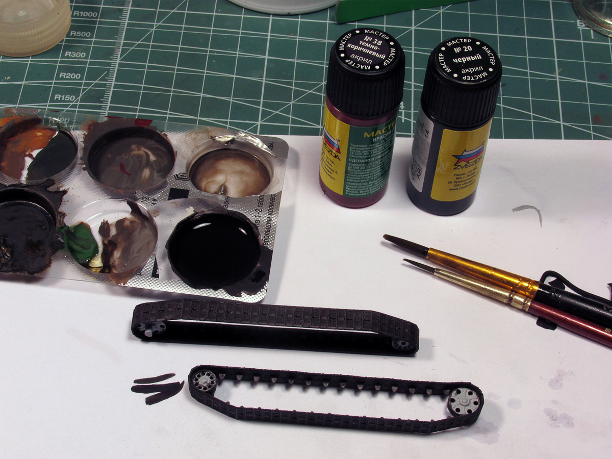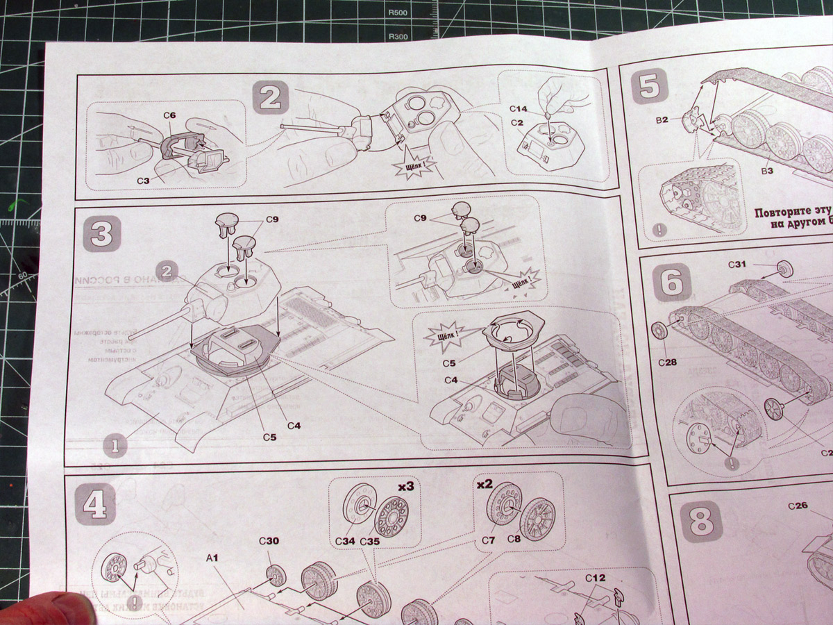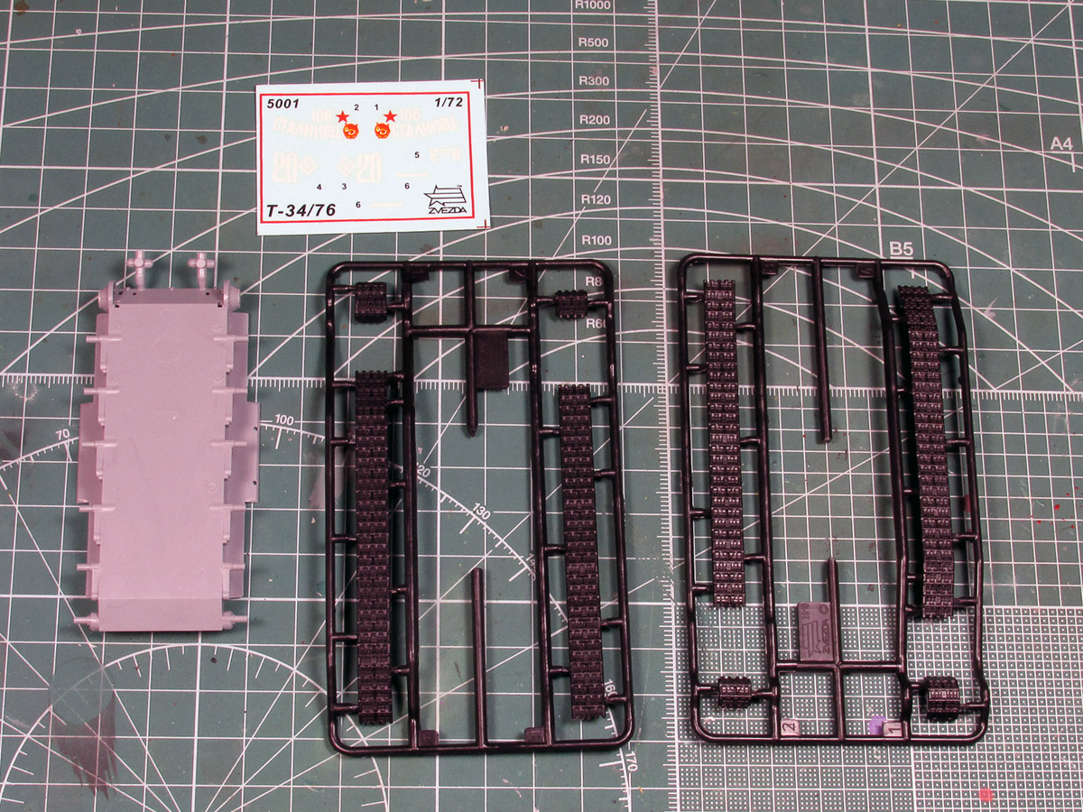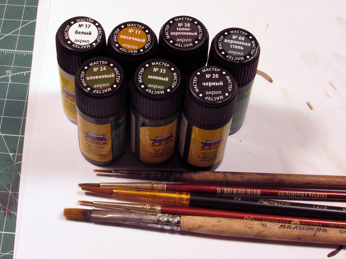 Всем привет! Мы посвящаем этот материал в первую очередь новичкам моделизма, тем, кто только начинает свой путь в этом увлекательном хобби. Вам не понадобятся дорогостоящие материалы и оборудование. Мы покрасим модель и нанесём все следы эксплуатации без помощи аэрографа, только кистями! Процесс создания модели описан достаточно подробно, наберитесь терпения и прочитайте всё внимательно. 1 Набор от «Звезды» прекрасно подходит новичкам, но вместе с тем имеет достойную копийность. Можно сказать, что вся серия «Звезды» «Сборка без клея» сделана достаточно хорошо и позволяет собрать интересную коллекцию известных машин в масштабе 1/72 2 Фото на коробке отображают готовый вид и деталировку модели без окраски. При желании можно ещё добавить мелочей для улучшения историчности, но у нас сегодня другая задача 3 Не поленитесь и внимательно изучите инструкцию по сборке перед началом работ. Это позволит избежать ошибок, вы сможете представить конструкцию модели и последовательность этапов сборки 4 Инструменты, которые нам понадобятся при работе с моделью. Все максимально просто: модельный нож с хорошим острым лезвием, кусачки, один-два надфиля, несколько кусочков наждачной бумаги разной зернистости 5 Клей для полистирола лучше купить хороший, расход его небольшой, и хватит надолго. Мы не настаиваем на конкретном производителе. Купите тот, который будет доступен. Самый лучший результат даст тот, в названии которого содержатся слова «EXTRA THIN» или «супертекучий», «затекающий». Шпаклёвка однокомпонентная, предназначенная для моделизма. Производитель не столь важен, но лучше выбирать «именитые» и проверенные бренды. Для нанесения шпаклевки очень удобно использовать стоматологический шпатель, подойдет и небольшая плоская отвертка. 6 Внимательно изучаем содержимое коробки, видим, что литьё довольно качественное. В наборе присутствует небольшая декаль с опознавательным знаками и надписями 7 Вариант сборки танка один и позволяет собрать модель Т-34-76 образца 1943 года, причём облик и деталировка машины переданы довольно достоверно 8 При отделении деталей от литниковых рамок старайтесь откусывать их с небольшим запасом. То есть лучше зачистить следы от литников потом, срезав лишний пластик, чем шпаклевать следы 9 Хоть производитель и говорит о том, что модель можно собрать без клея, но для того, чтобы получилась не просто игрушка, а модель-копия, клей понадобится. Детали корпуса и башни лучше собрать с клеем. Надо будет немного и шпаклевать, обратите внимание на стыки с обратной стороны гусеничных полок, переднюю и заднюю часть корпуса и стык на башне. Здесь может понадобится шпаклёвка 10 Соединив корпус, мы берём каплю клея на кончик кисточки (она обычно идёт вместе с баночкой текучего клея, но можно использовать ненужную тонкую круглую синтетическую кисть № 0–1 или обычную швейную иглу) и наносим на стыки. За счёт капиллярного эффекта клей растекается по щелям, заполняет их, осталось немного сжать детали и подождать одну-две минуты. Полное высыхание клея занимает не менее суток, спешка тут не нужна 11 При отделении и зачистке катков нужна особая осторожность и аккуратность, не отрежьте лишний пластик и хорошо зачистите места, где детали крепились к литникам 12 Для последующей окраски и тонировки катки удобно насадить на зубочистки 13 Начинаем 