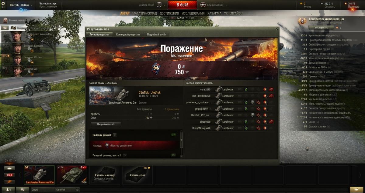Доброго времени суток.. В режиме Начало эпохи - "Конвой", когда команда конвоя доведет танк-бот Мк.1 до базы противника без единого повреждения и база будет захвачена, при этом понесут урон игроки обеих команд, не начисляются ни опыт, ни серебро команде победителю, т.е. команде конвоя. Исправьте пожалуйста. Команда конвоя выполнила свою задачу на отлично и заслуживает награждение. PS Не нашел нужный раздел для данной просьбы. Если есть такой, ткните носом пожалуйста - пересоздам тему. PPS Ссылка на реплей: http://wotreplays.ru/site/8816249#nachalo_epohi-dulbka-lanchester_armoured_car