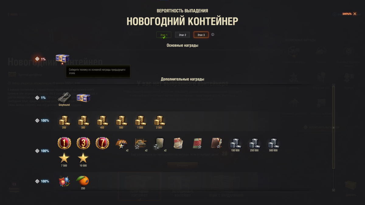 добрый день, проблема с этапами нг контейнеров. весь второй этап пройден, но не переходит к третьему этапу. соответственно не выпадают почему то легендарные контейнеры и грейхаунд, только мандарины и остальные базовые награды приложил скрины как это выглядит.