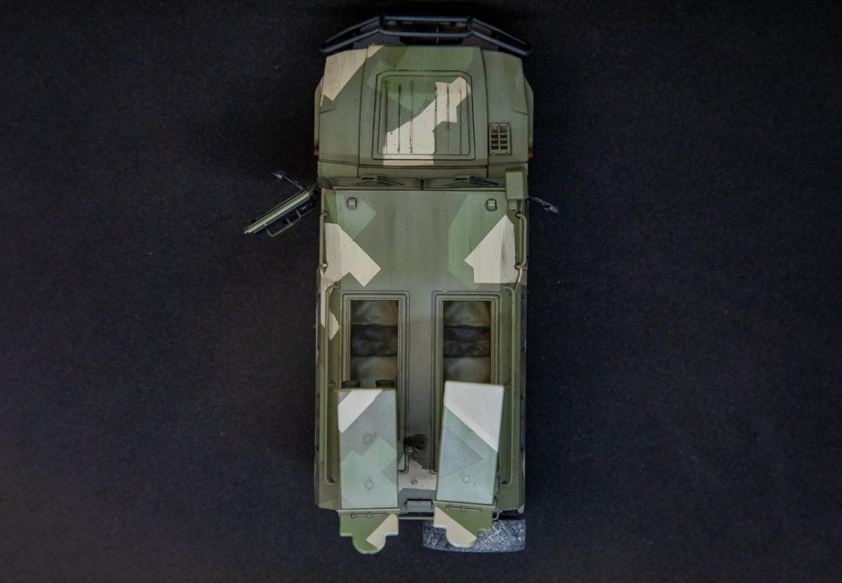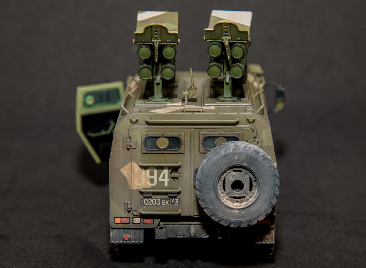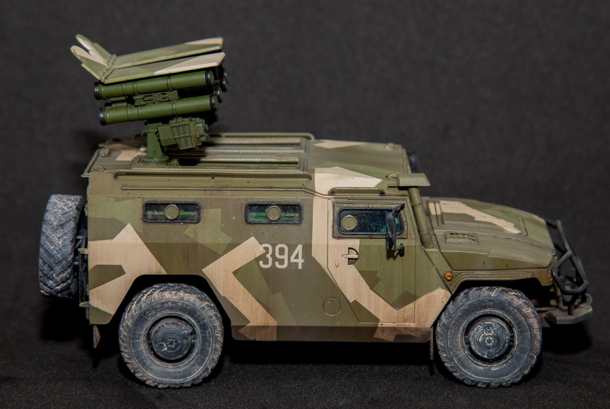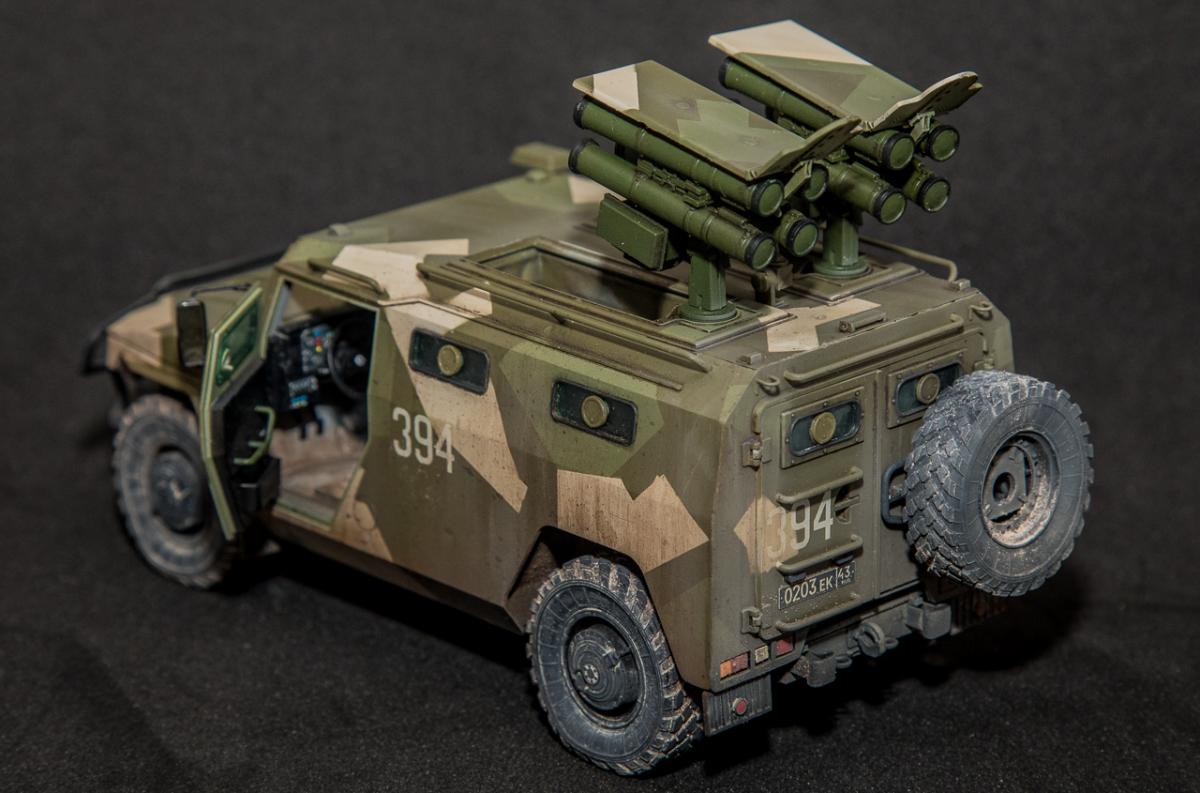 Представляю вниманию свою законченную модель от отечественного производителя "Звезда" - бронеавтомобиль Тигр с ПТРК Корнет. Набор достаточно хорошего качества, с внутренним интерьером (правда его особенно не видно). Сборка достаточно проста, но вот инструкция и расположение деталей на литниках оставляют желать лучшего - при сборке приходилось "скакать" по листу сборки и литникам в поисках нужной детали. Из дополнений использовал 3д декали Квинта студио - интерьер для автомобилей семейства "Тигр". Декали оставили самое положительное впечатление - легко наносятся, отлично оживляют модель в плане визуального восприятия. Так же использовал набор смоляных колес от Арма моделс, что так же сказалось на визуальном восприятии модели. Окрас производился акриловыми красками АMMO Mig - набор для современной российской техники №2. Делать классические ровные пятна, я не захотел и решил немного "похулиганить" - сделал "ломаный" камуфляж. Может и не достоверно, но такое вполне допустимо. Тактические номера - цифры из оставшихся наборов декалей. Везеринг производился пигментами МХП, Zip maket и жидкостями AK Interaktive. Сильно пачкать не стал - небольшое загрязнение обычной строевой машины.Спасибо за внимание. Конструктивная критика приветствуется.